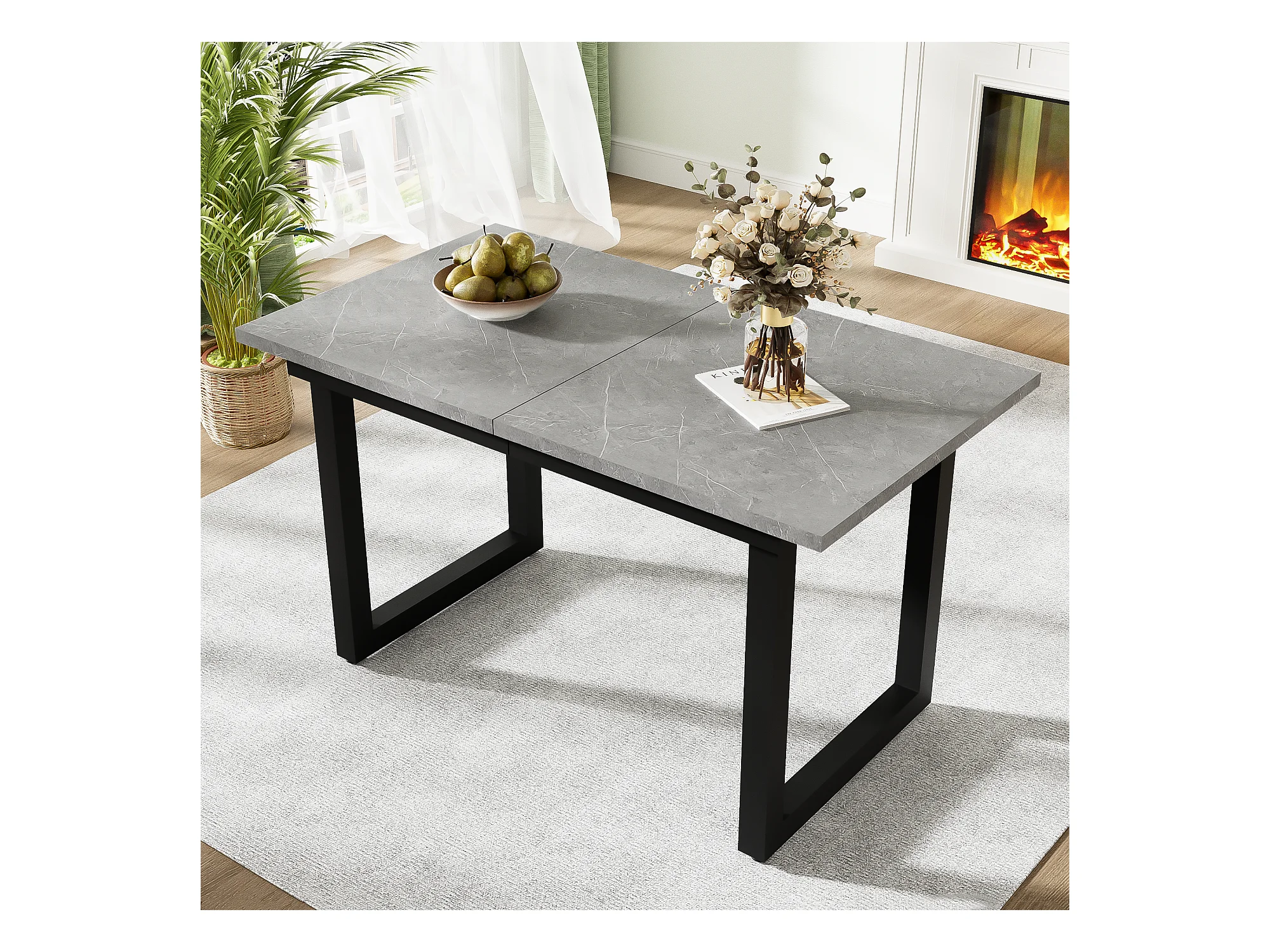 Table à manger extensible 4 à 6 couverts - 140/180 x 80 x 75 cm - MDF et pièds en fer - Effet marbre - Gris
