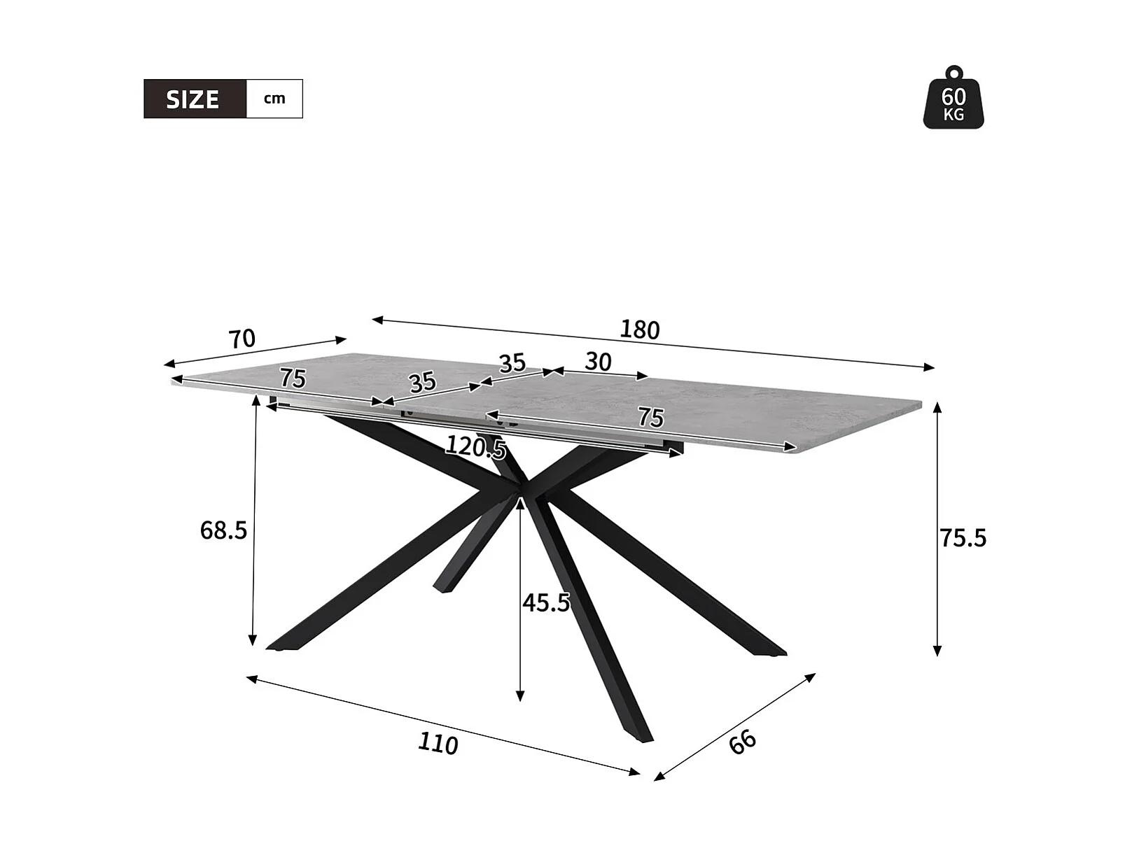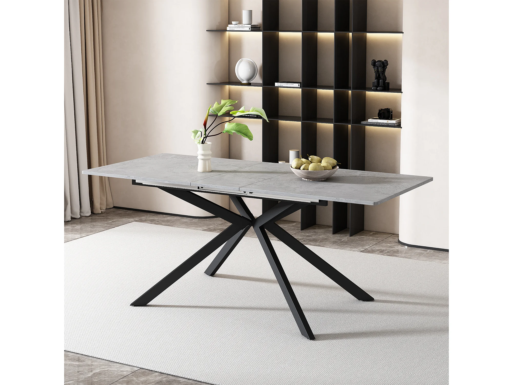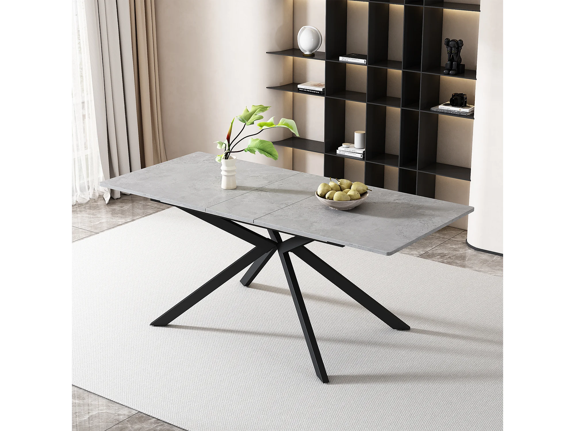 Table à manger extensible 4 à 6 couverts - 150/180 x 70 x 76 cm - motif ciment - MDF - gris + noir