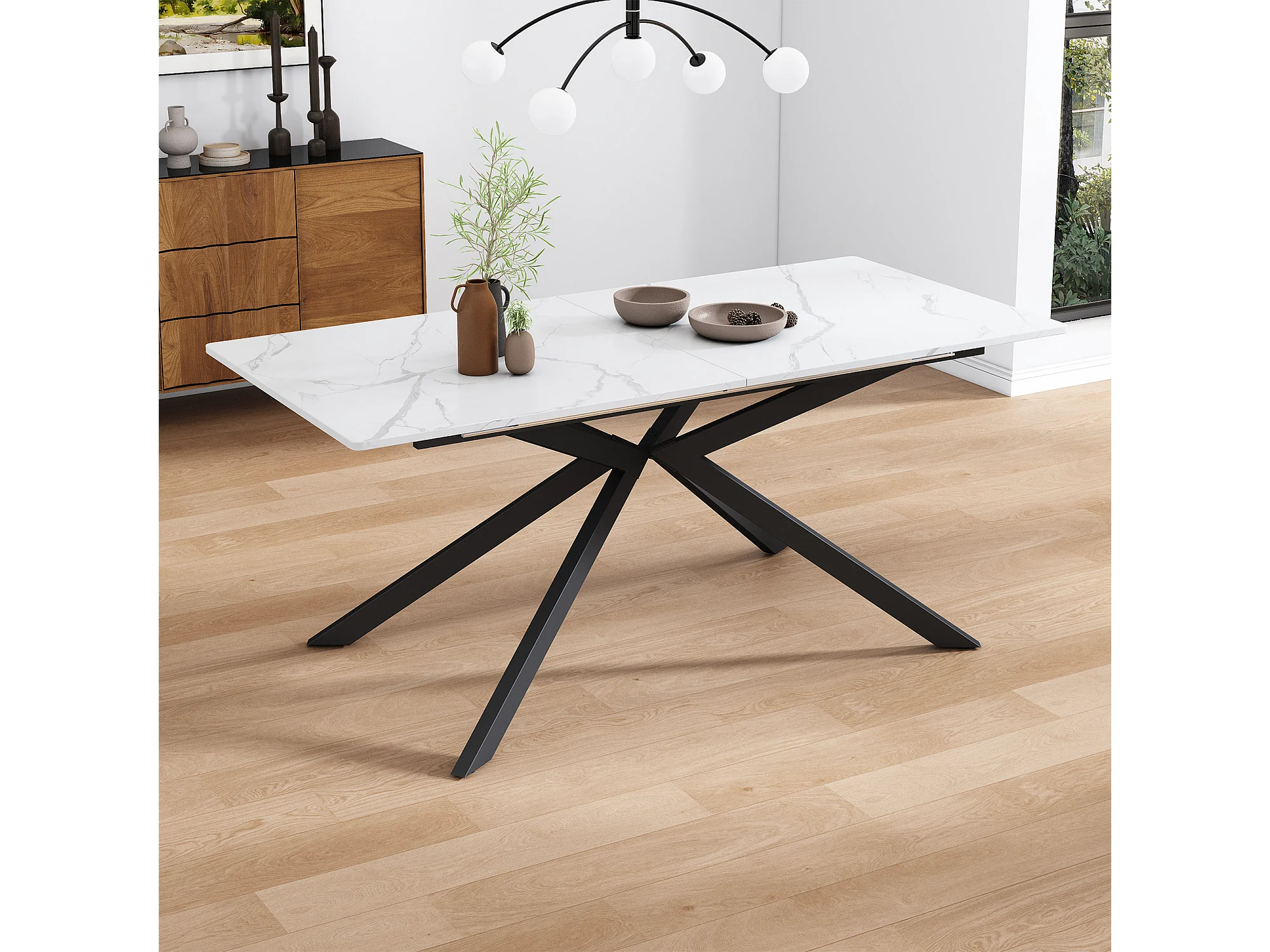 Table à manger extensible 4 à 6 couverts - 150/180 x 70 x 76 cm - motif marbre - MDF - blanc + noir