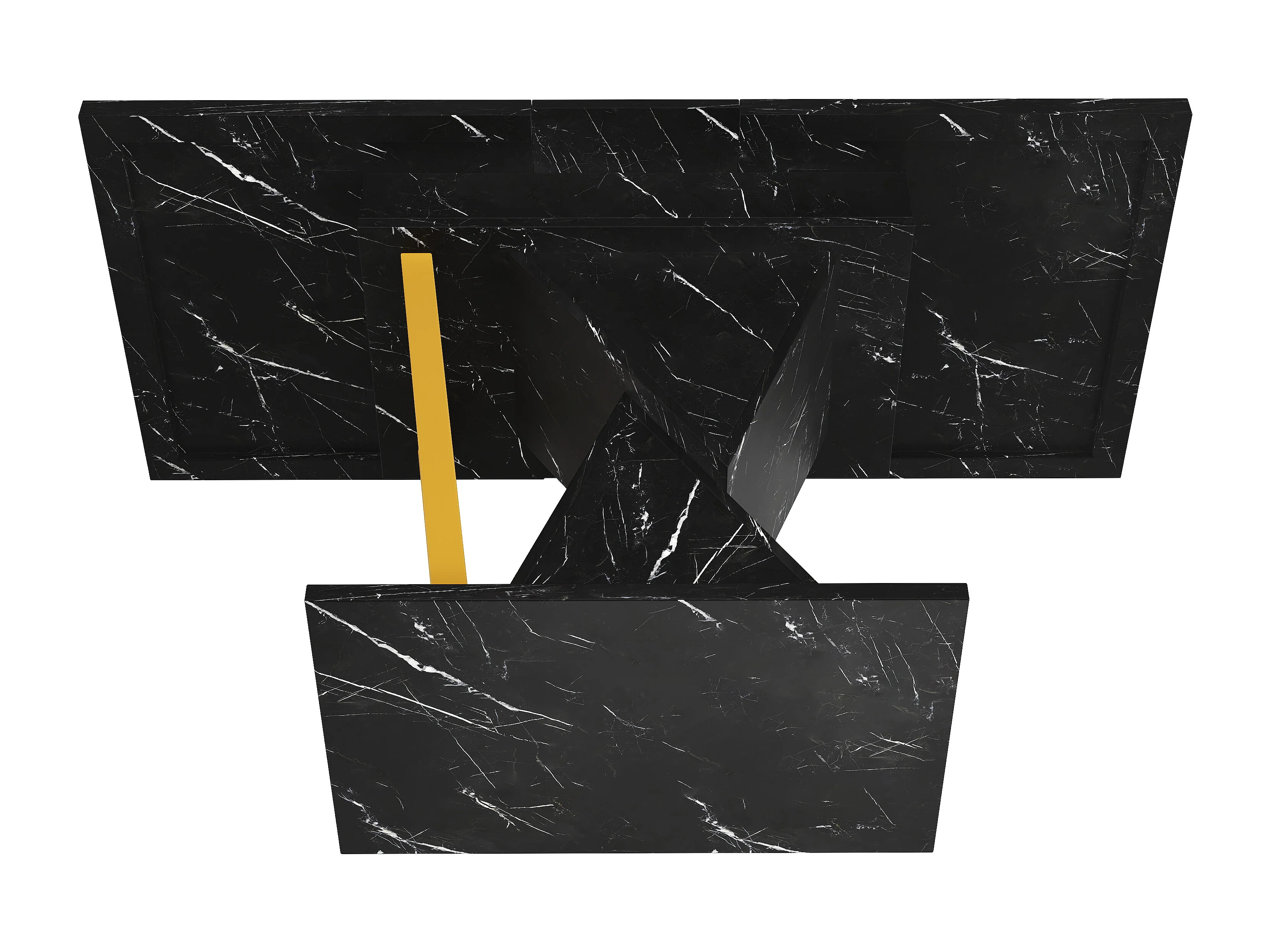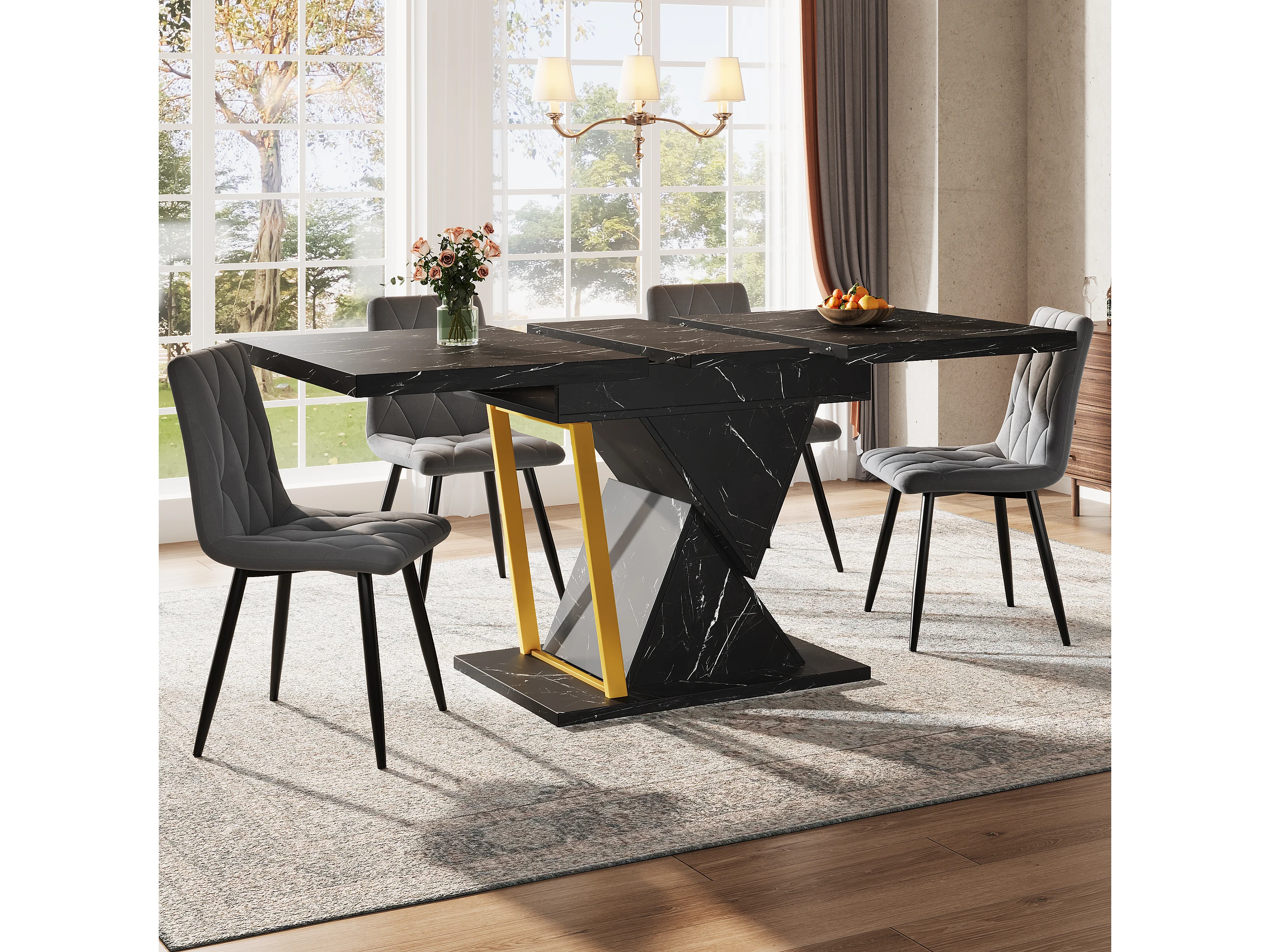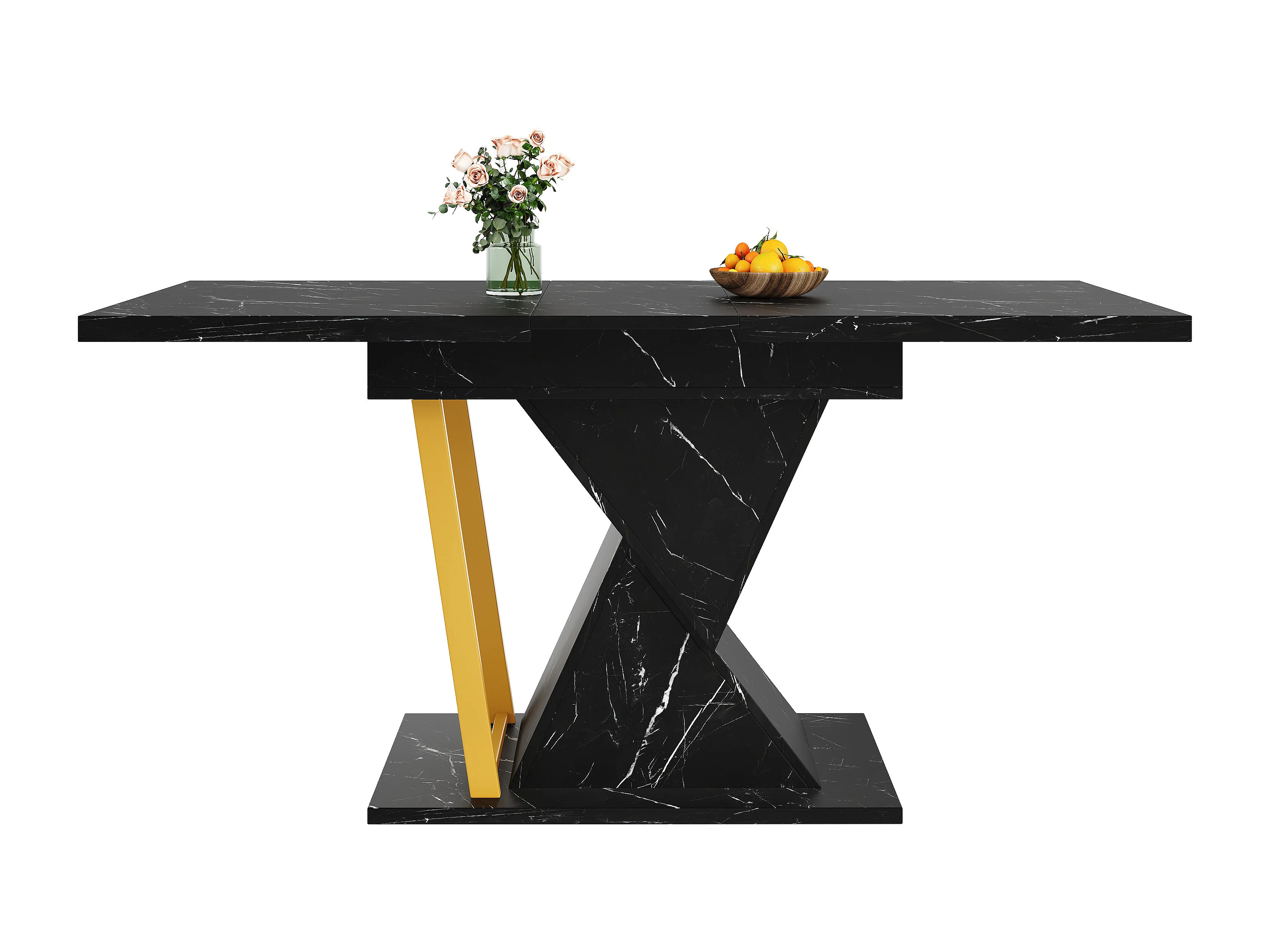 Table à manger extensible 4 à 6 personnes - Plateau effet marbre noire - Bois MDF