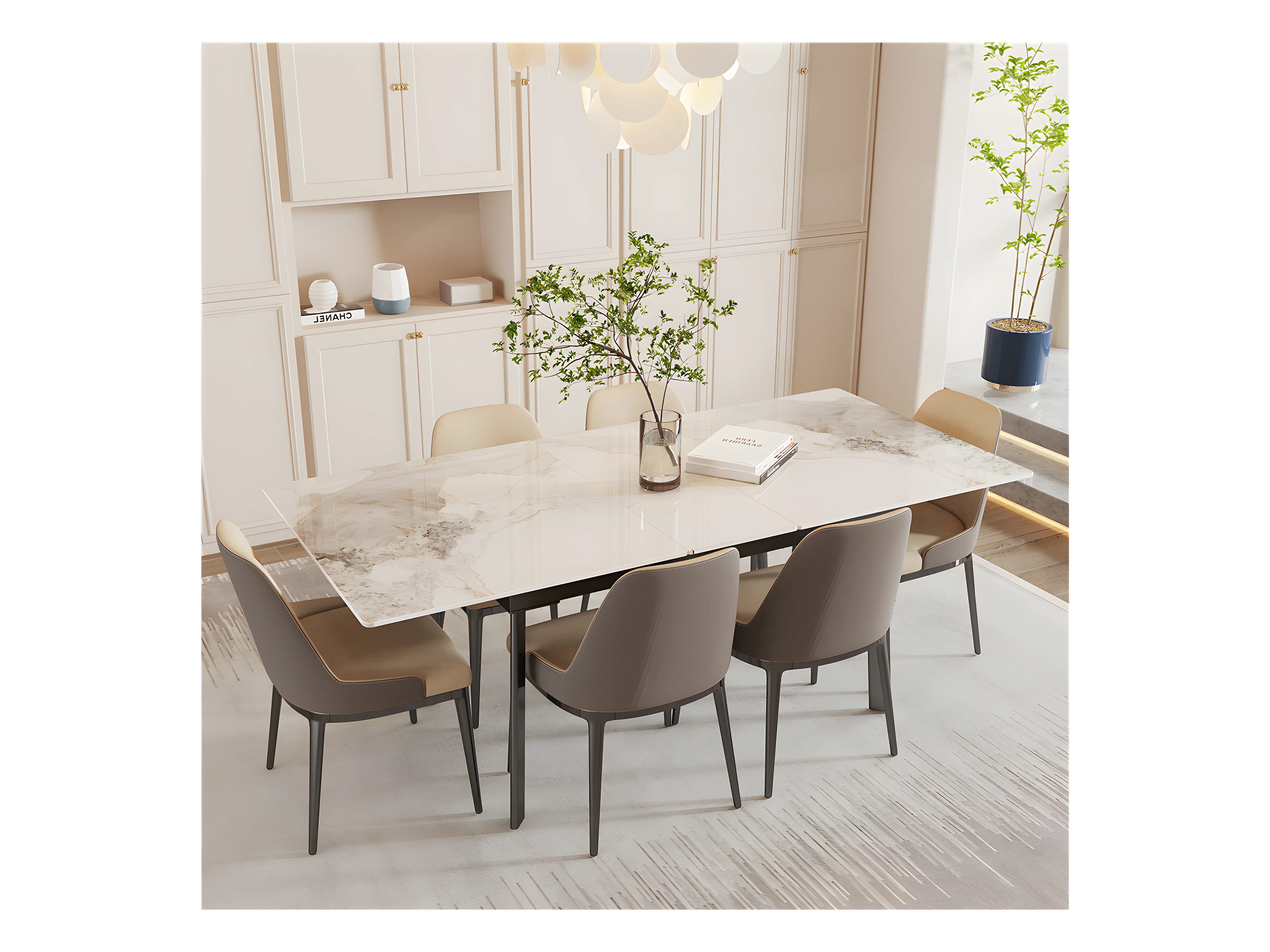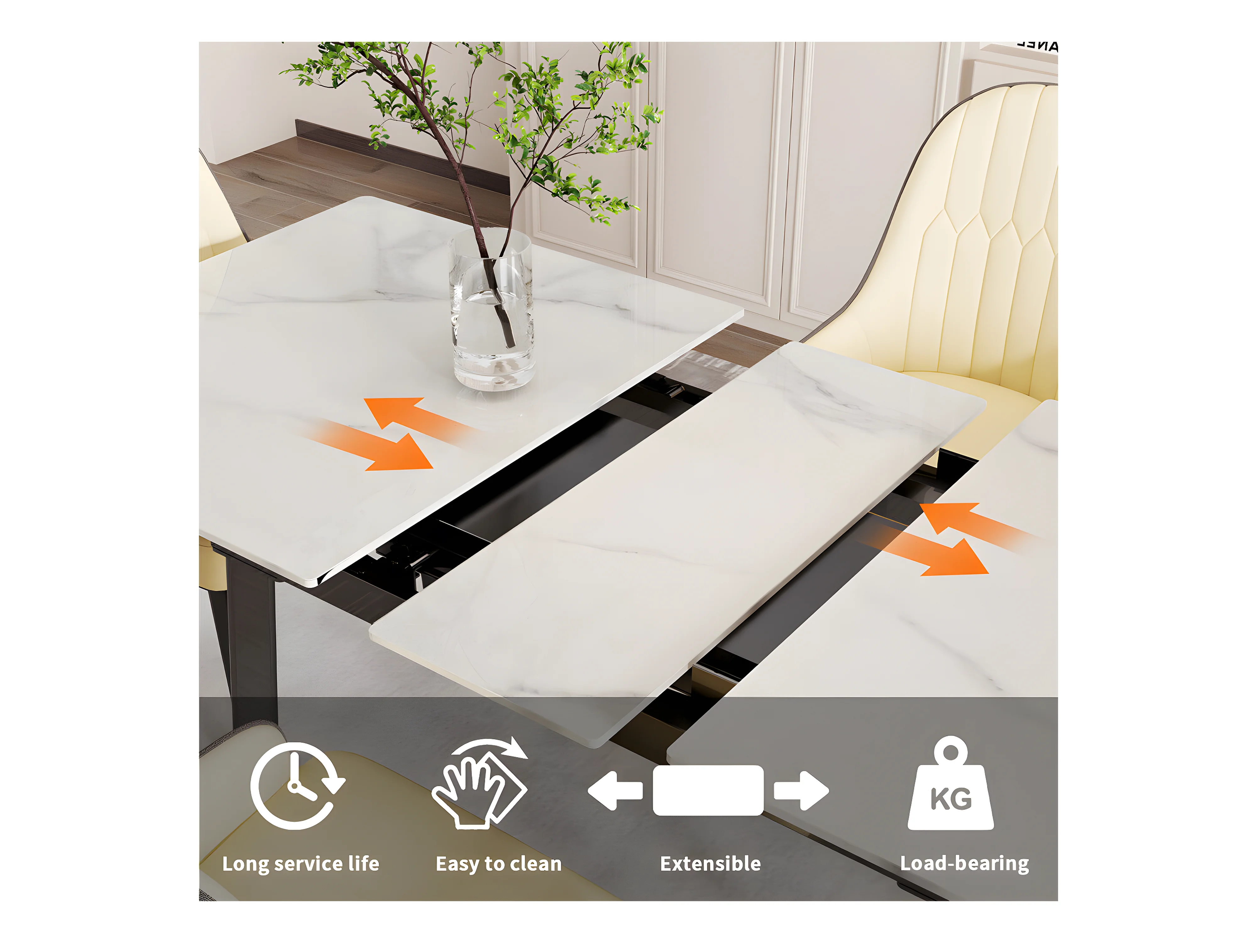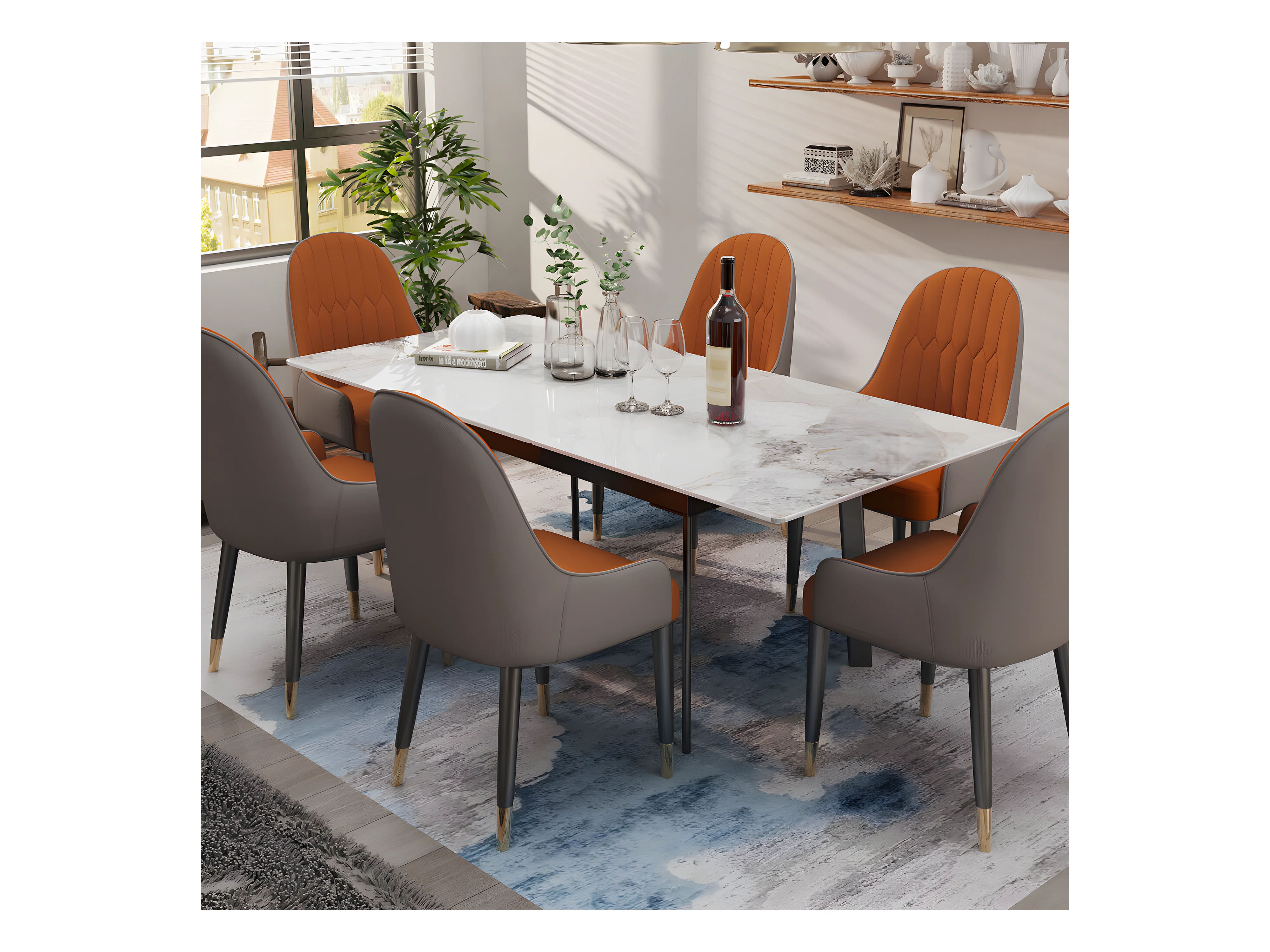 Table à manger extensible 4 à 8 couverts en pierre frittée - Effet Marbre Blanc - 130-160cm
