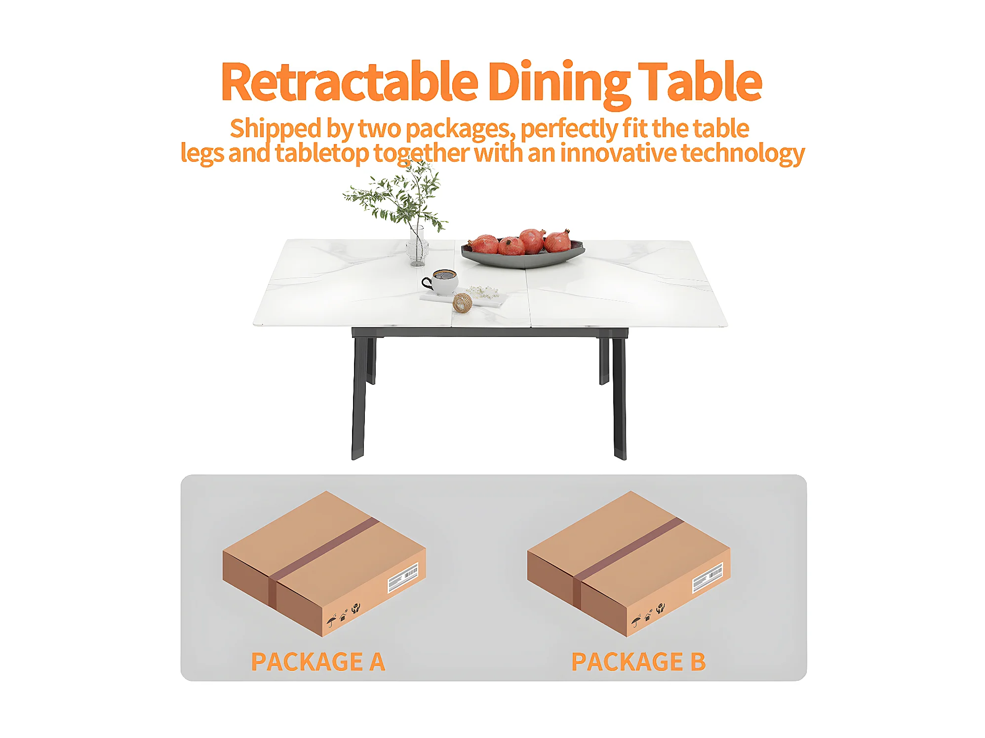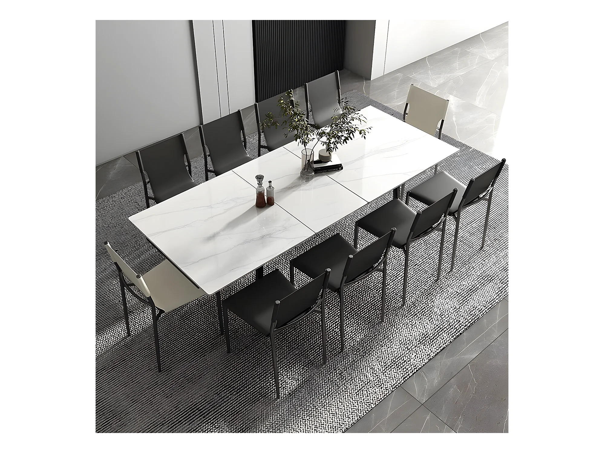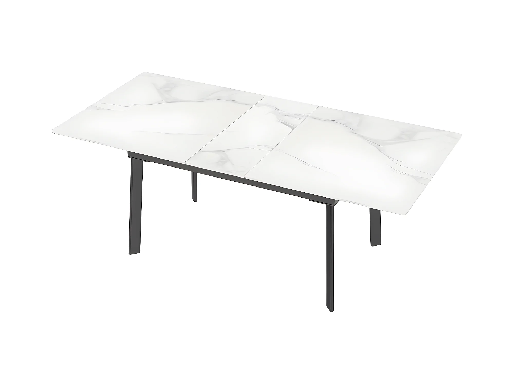 Table à manger extensible 4 à 8 couverts en pierre frittée - Effet Marbre Blanc - 150-180cm