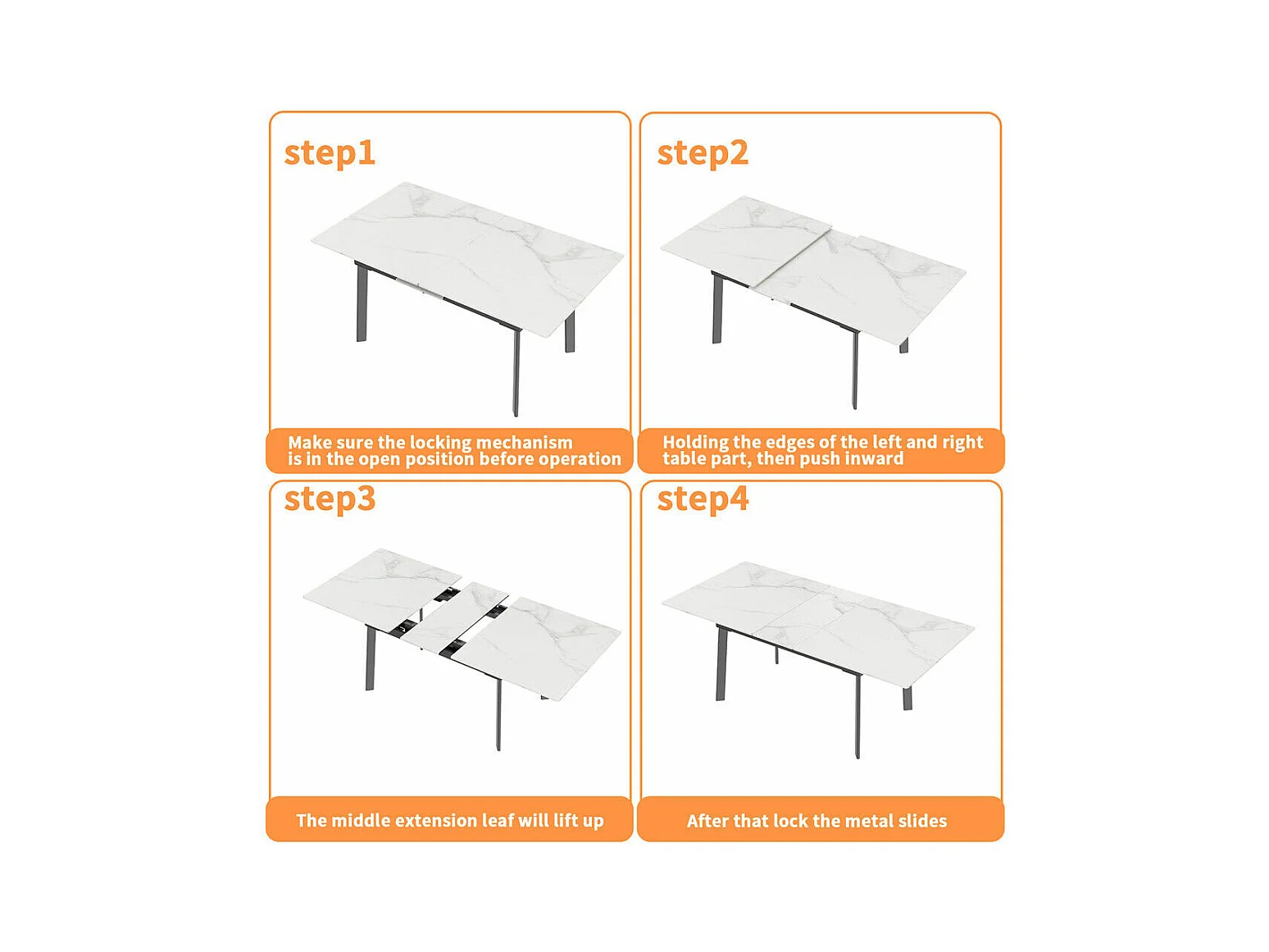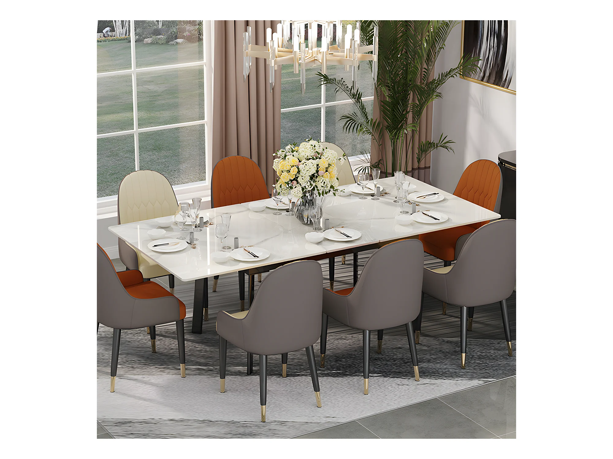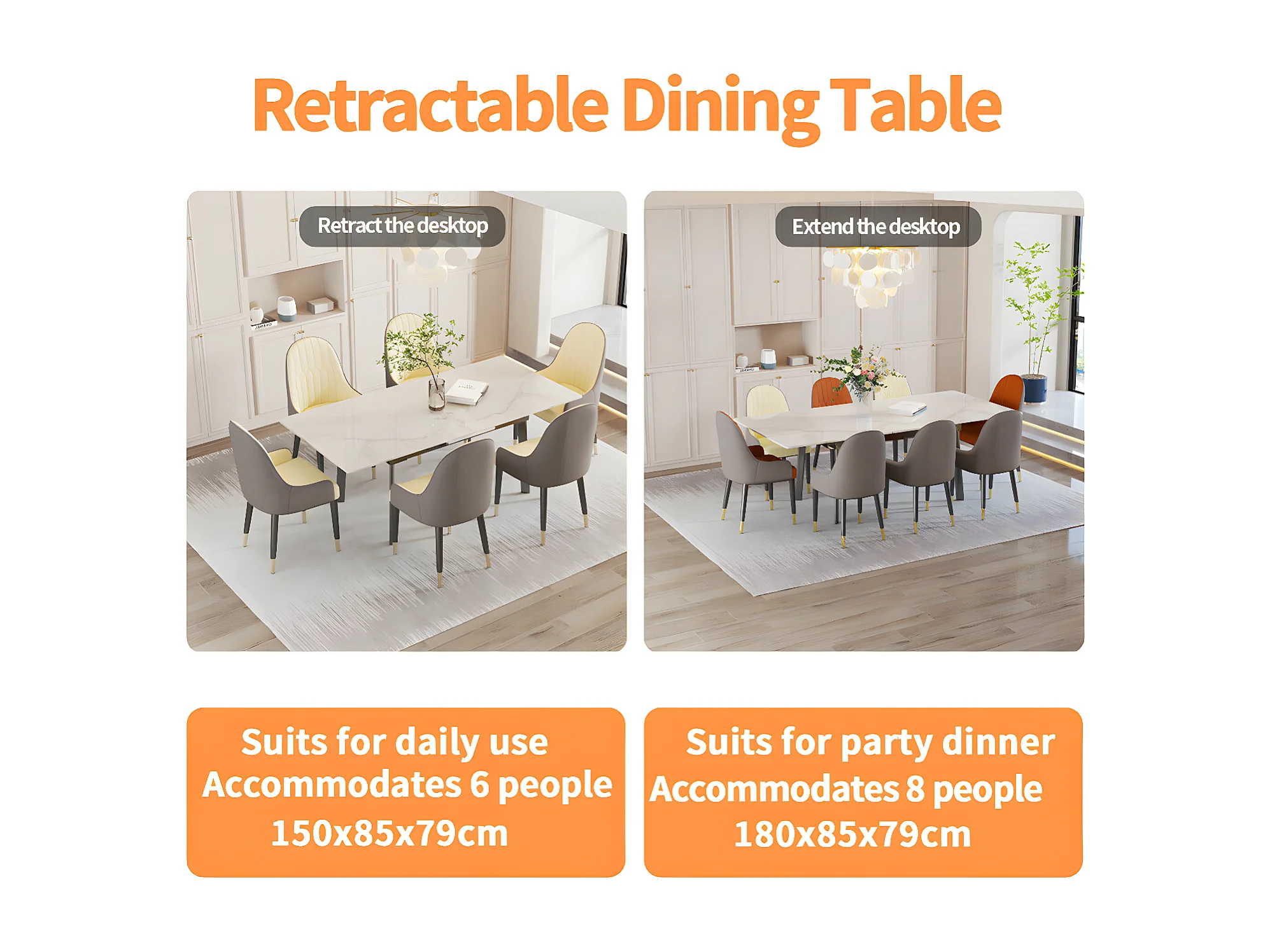 Table à manger extensible 4 à 8 couverts en pierre frittée - Effet Marbre Blanc - 150-180cm