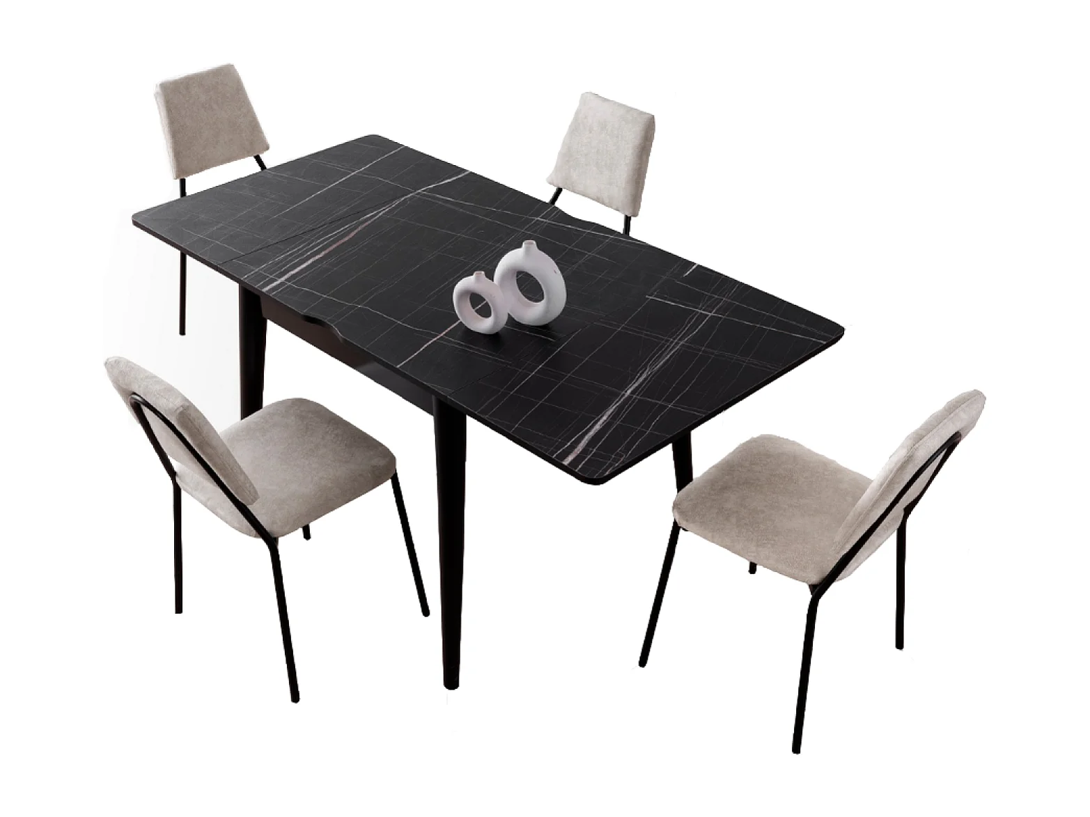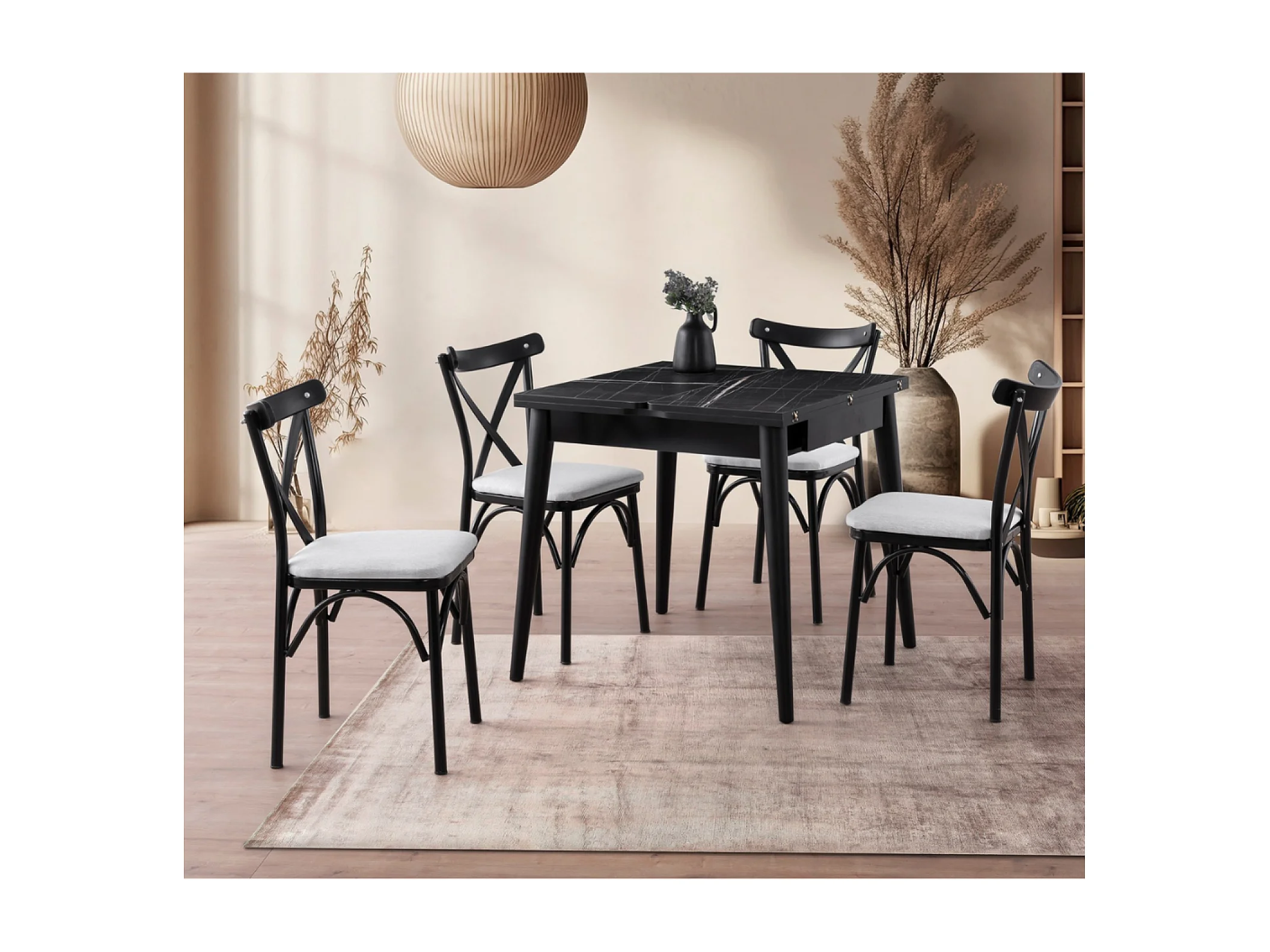 Table à manger extensible 4 personnes marbre noir 80 cm KAVALA