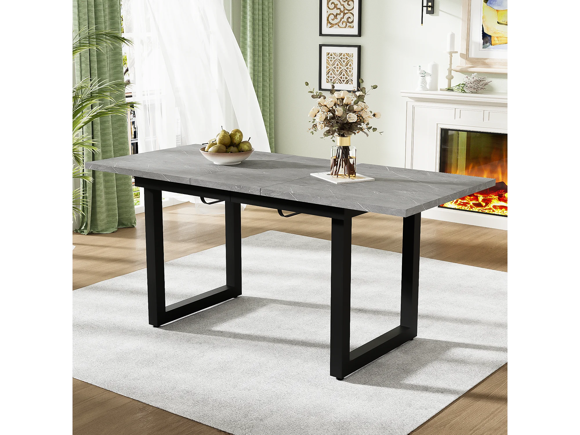 Table à manger extensible 6-8 personnes 180x80cm en MDF avec Pieds en U métallique, placage effet marbre gris