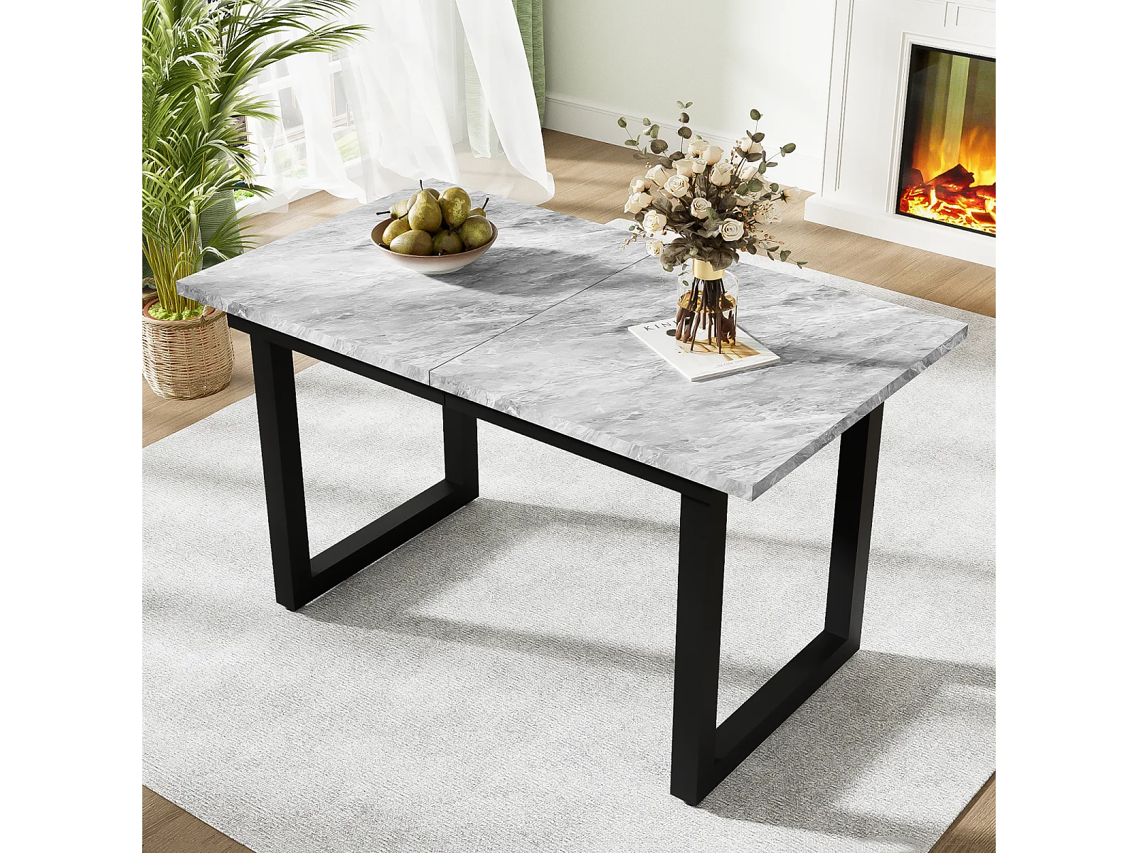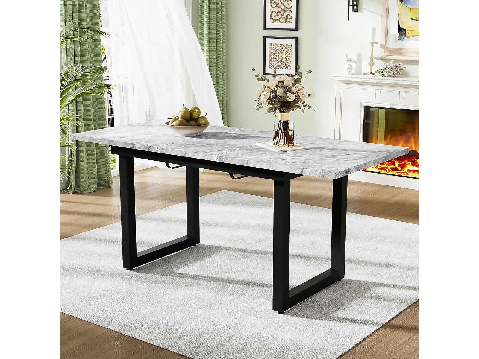 Table à manger extensible 6 à 8 personnes - en style Industriel - Effet béton gris - Panneaux de particules - 140/180x80x75cm