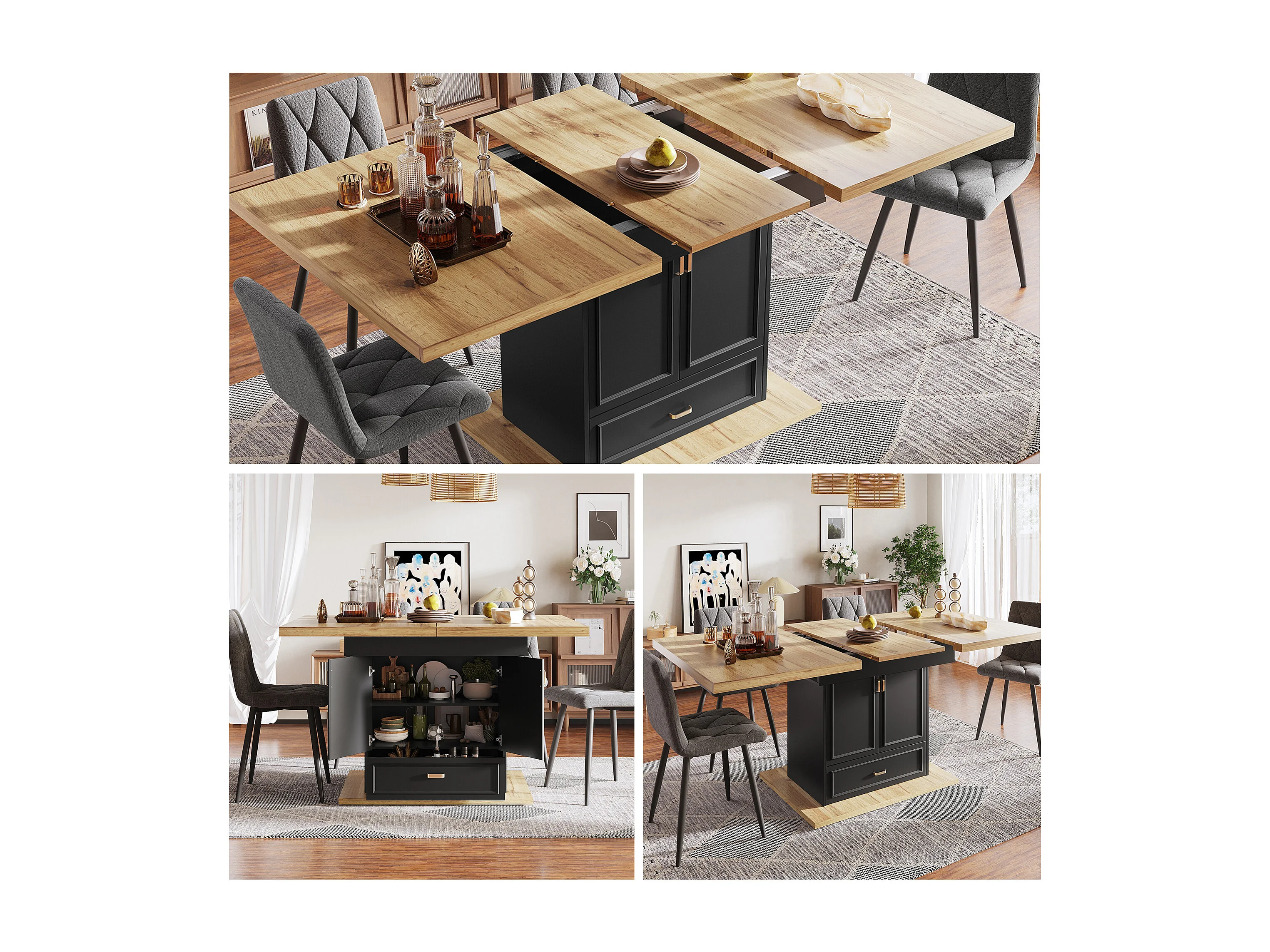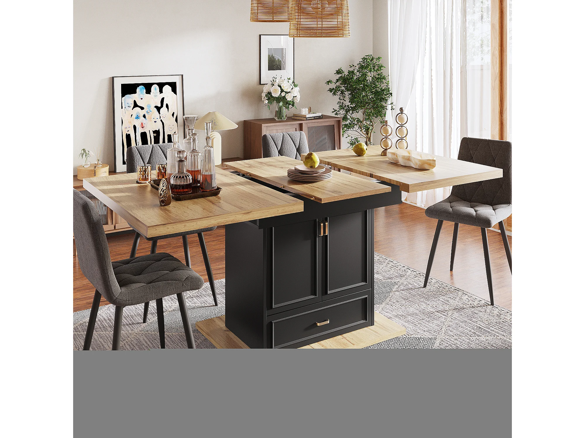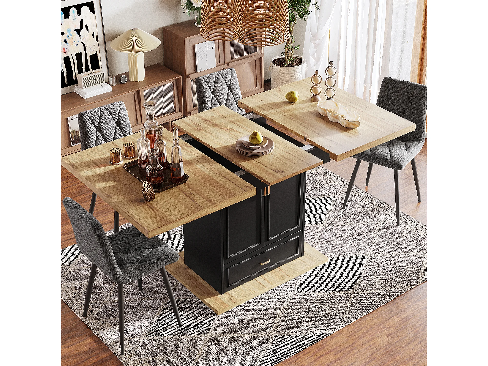 Table à manger extensible 6 places - 110/140 x 80 x 75 cm - avec 2 portes + 1 tiroir - MDF + métal - naturel