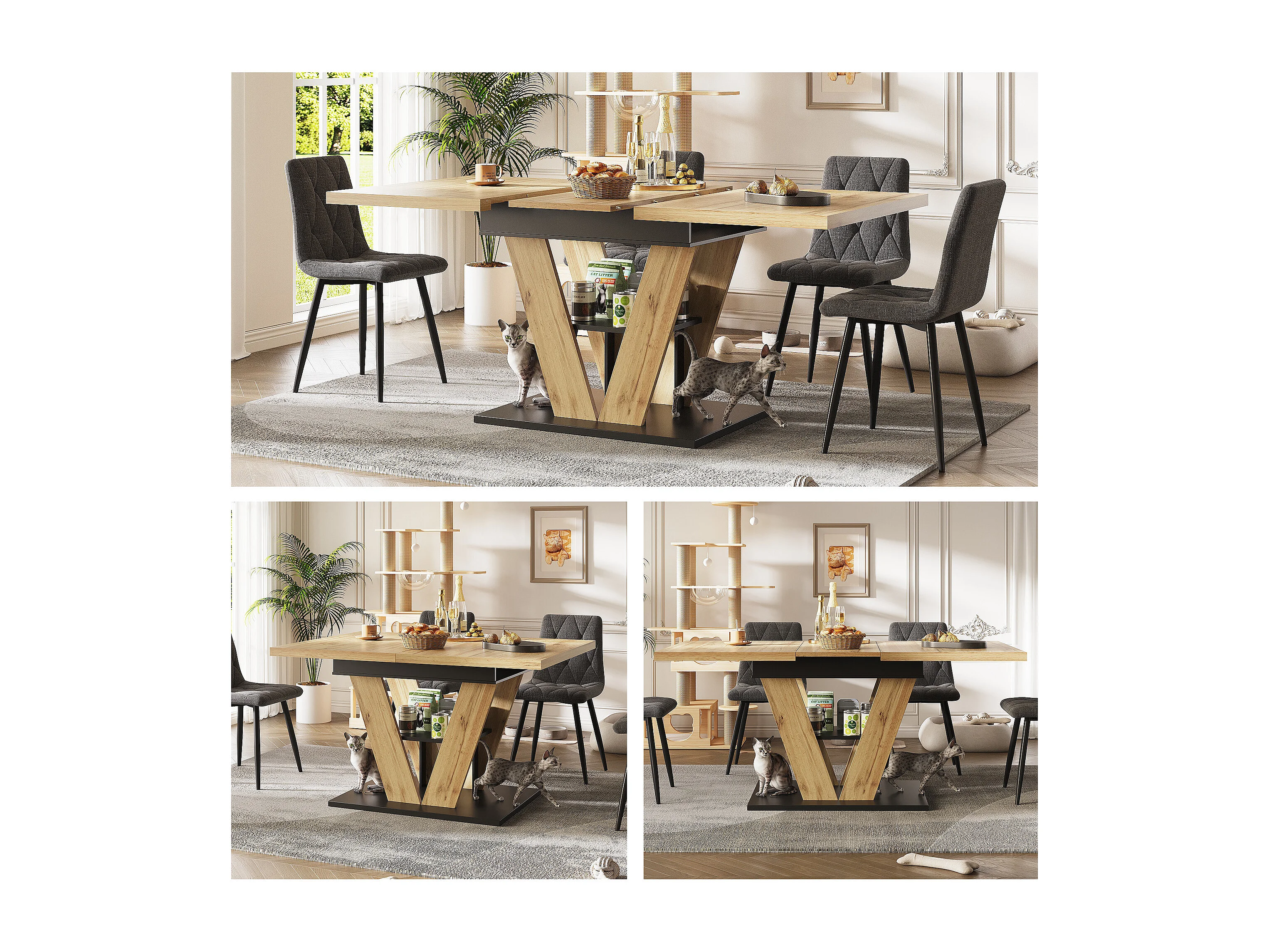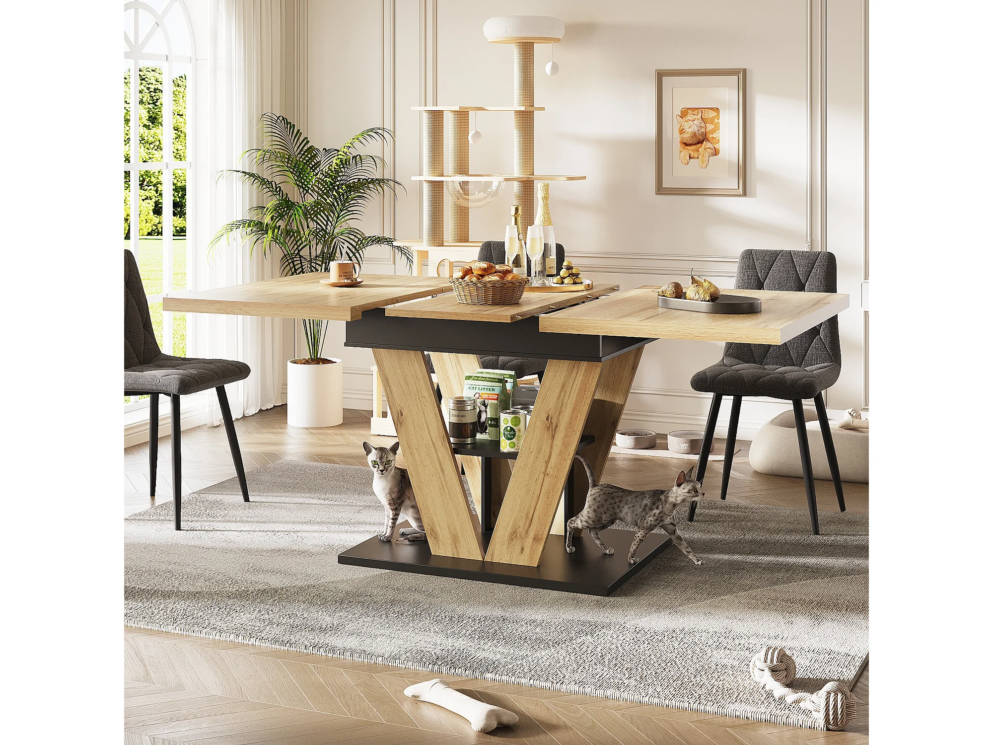 Table à manger extensible 6 places - 110/140 x 80 x 75 cm - pour cuisine et salon - MDF + métal - naturel