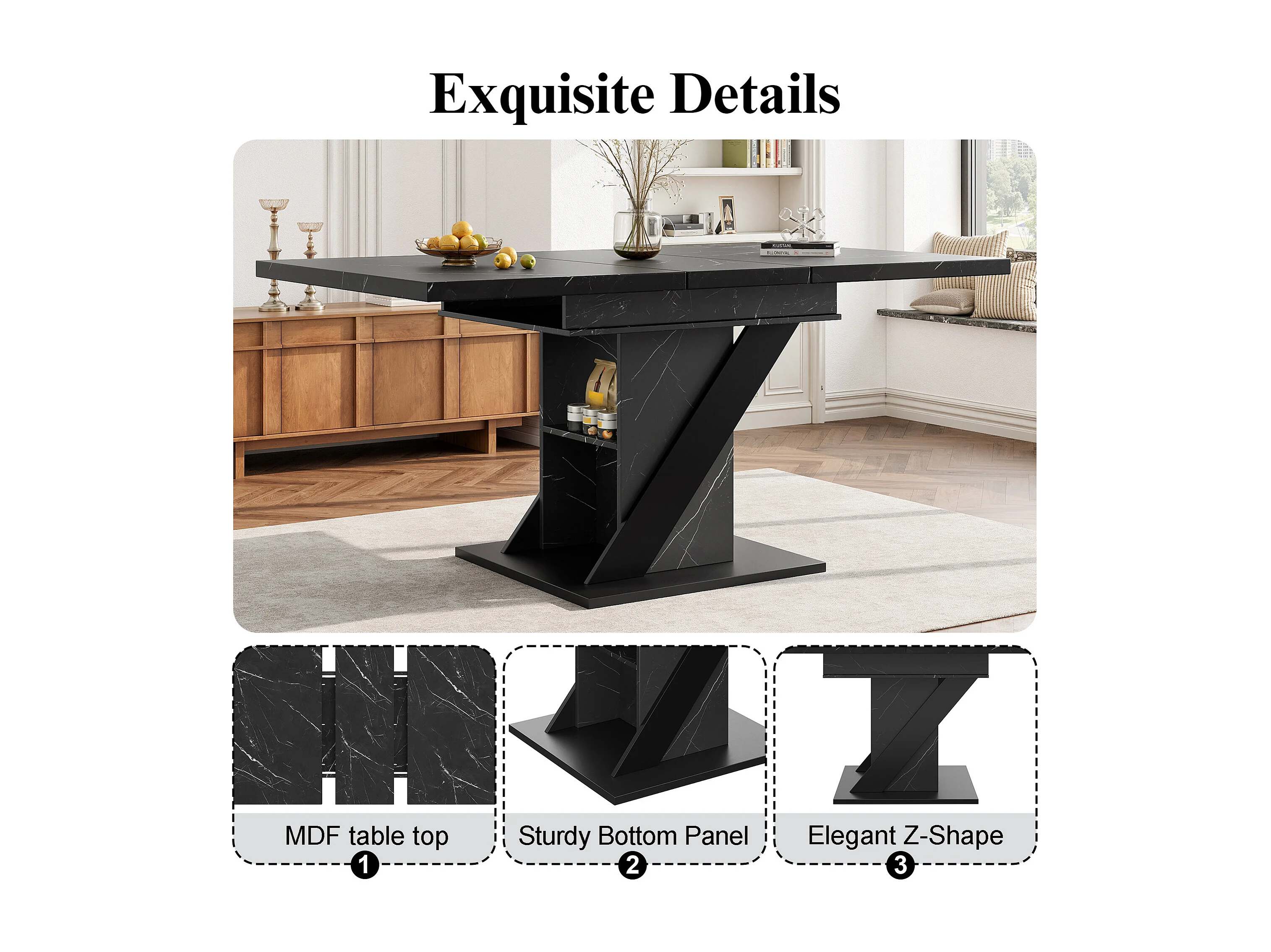 Table à manger extensible 6 places - 110/140 x 80cm x 75 cm - avec porte et étagère - MDF - noir