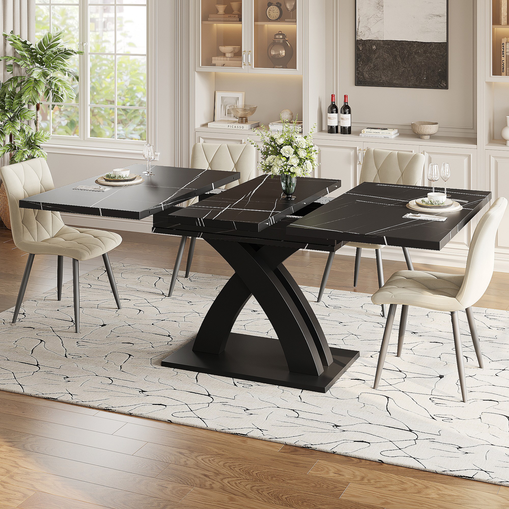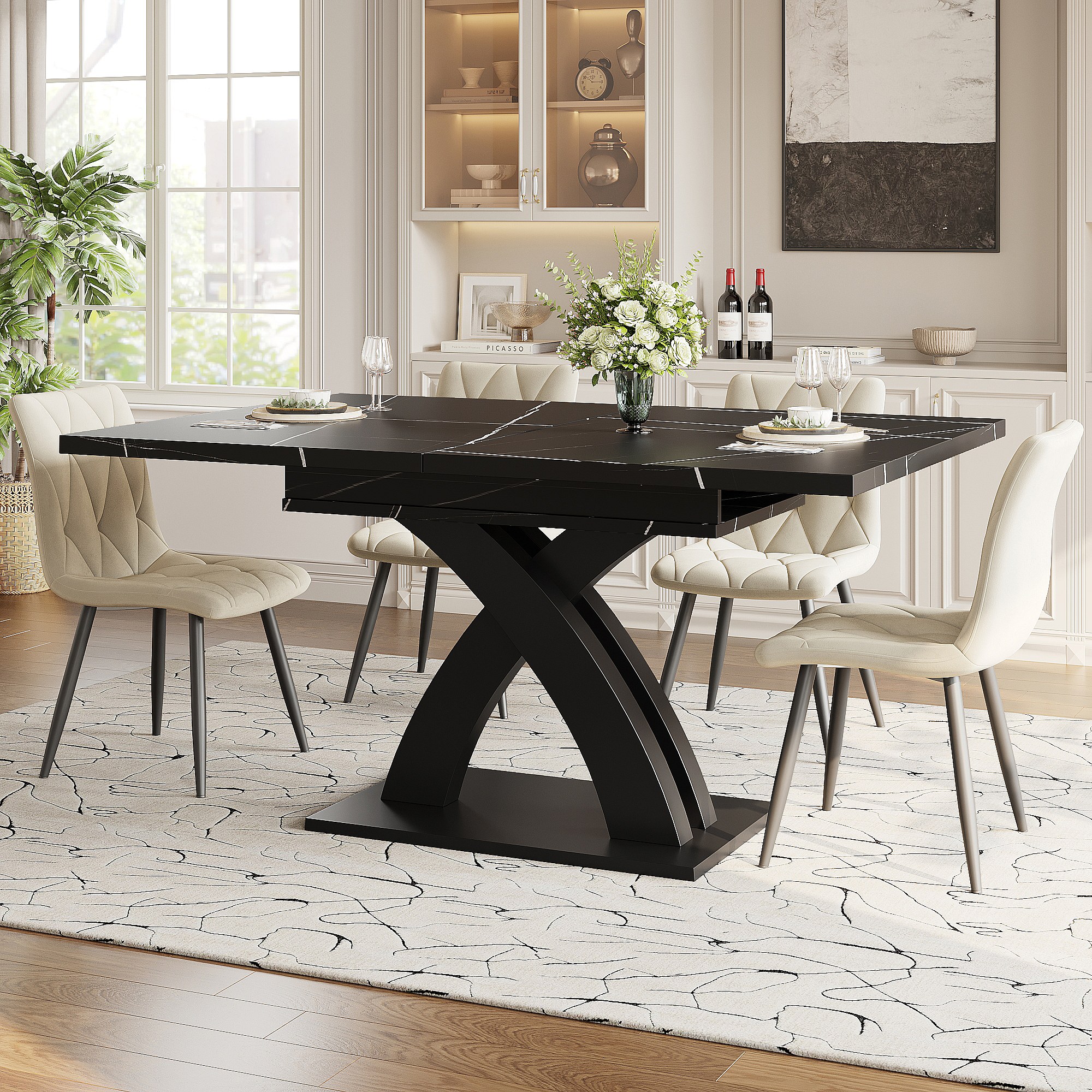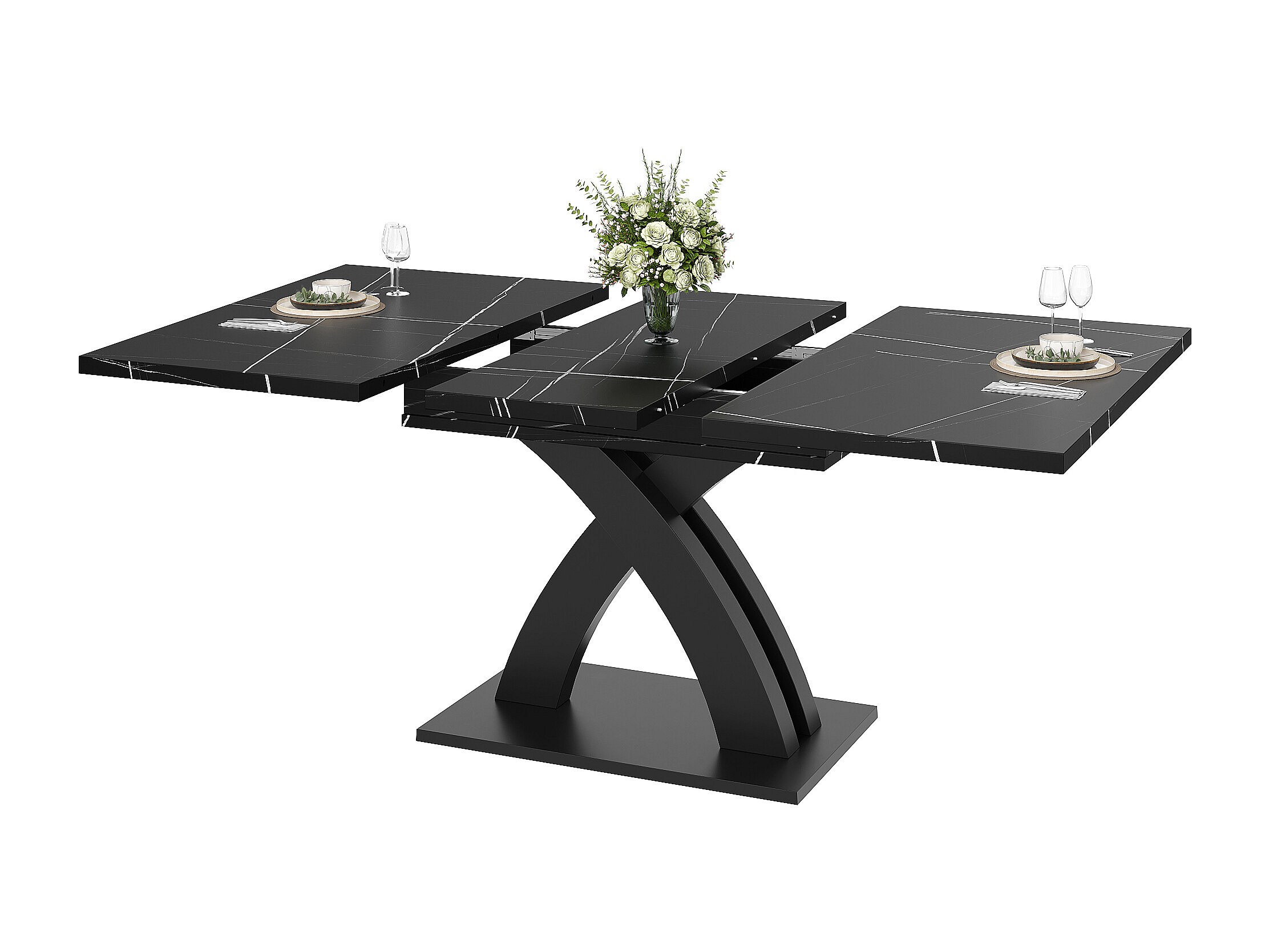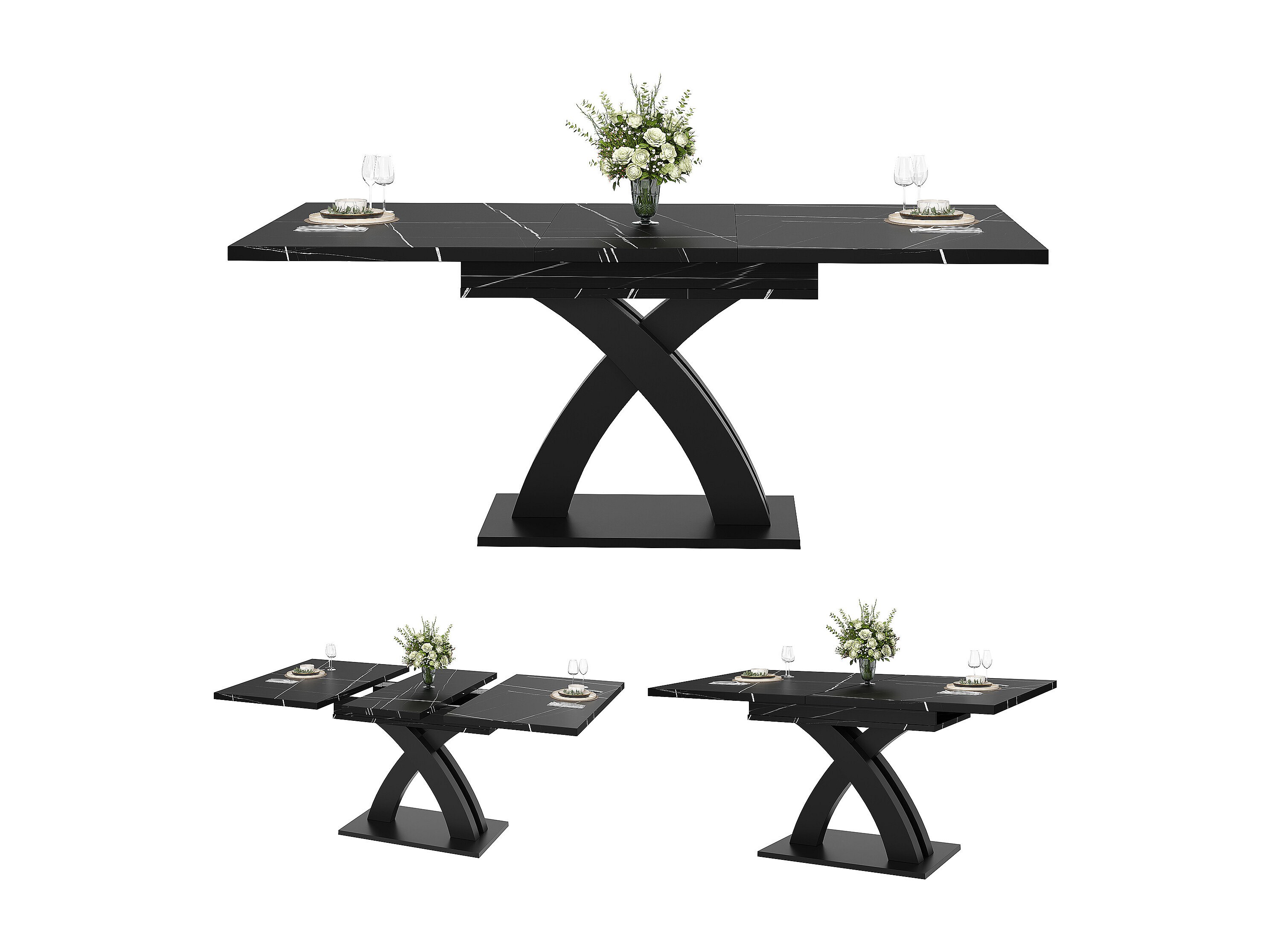 Table à manger extensible 6 places - 120/160 x 80 x 76 cm - pour salles à manger et cuisines - MDF + métal - noir