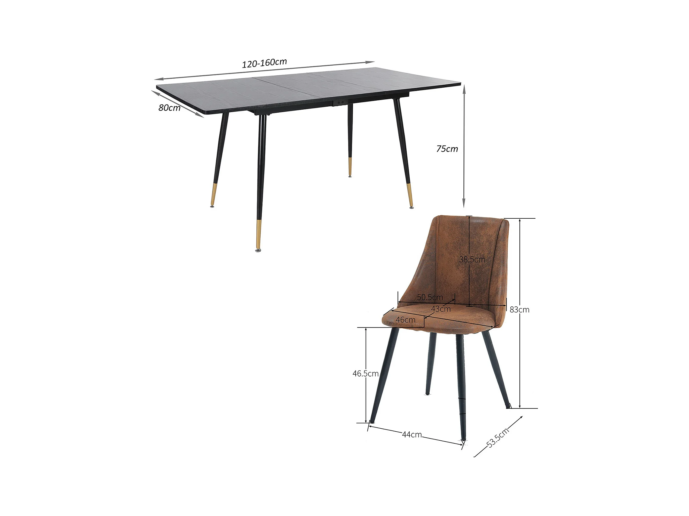Table à manger extensible à allonge avec 4 chaises,Whalen smeg