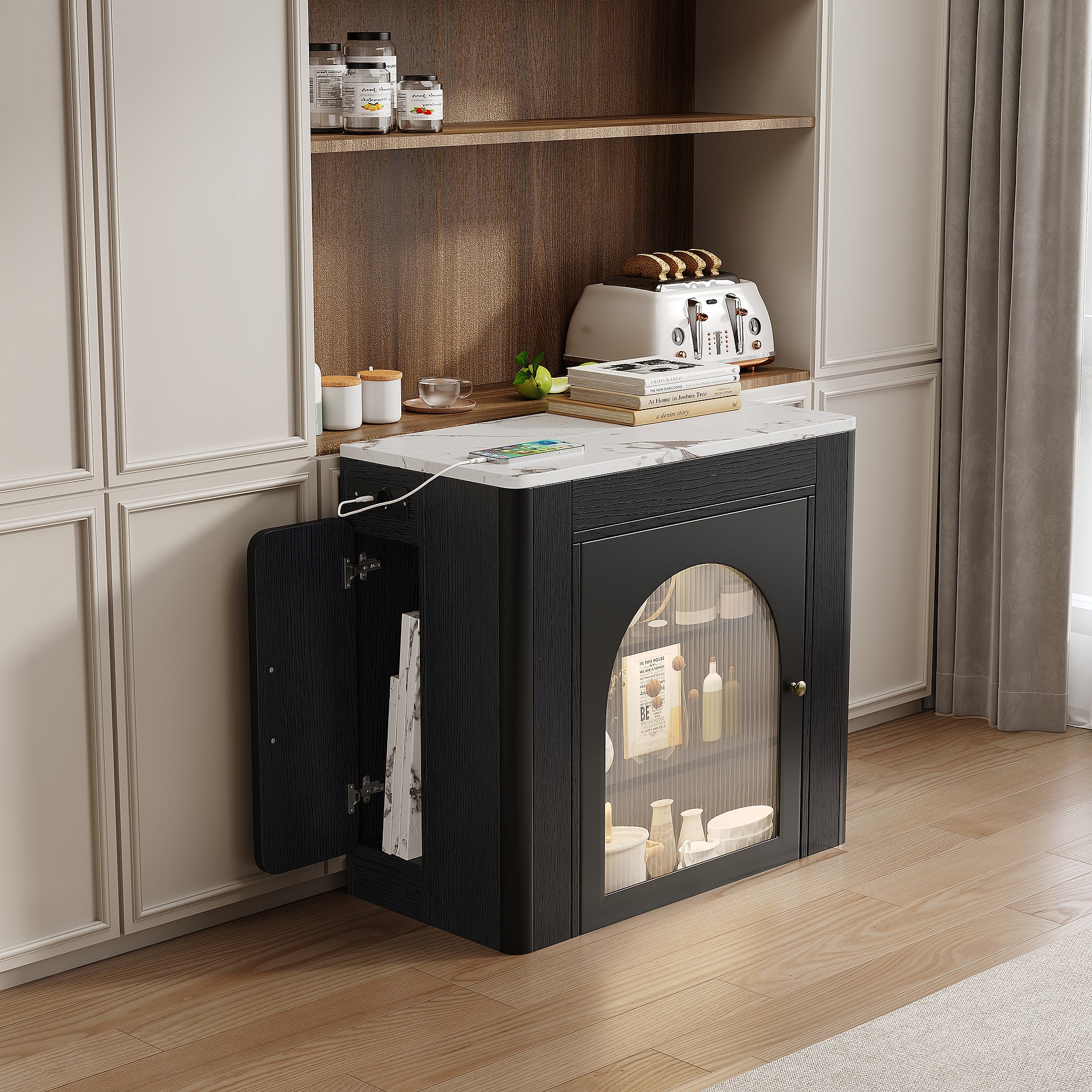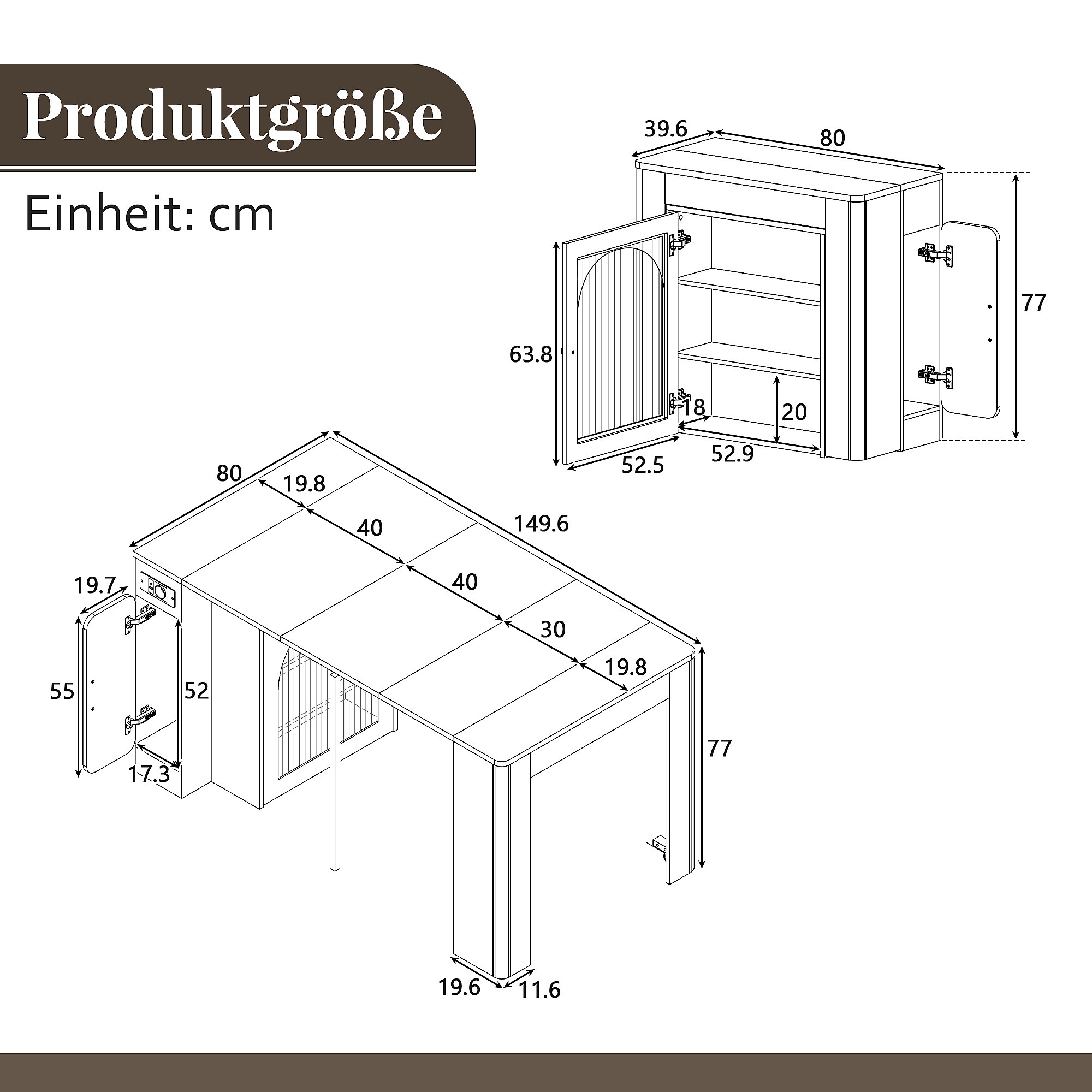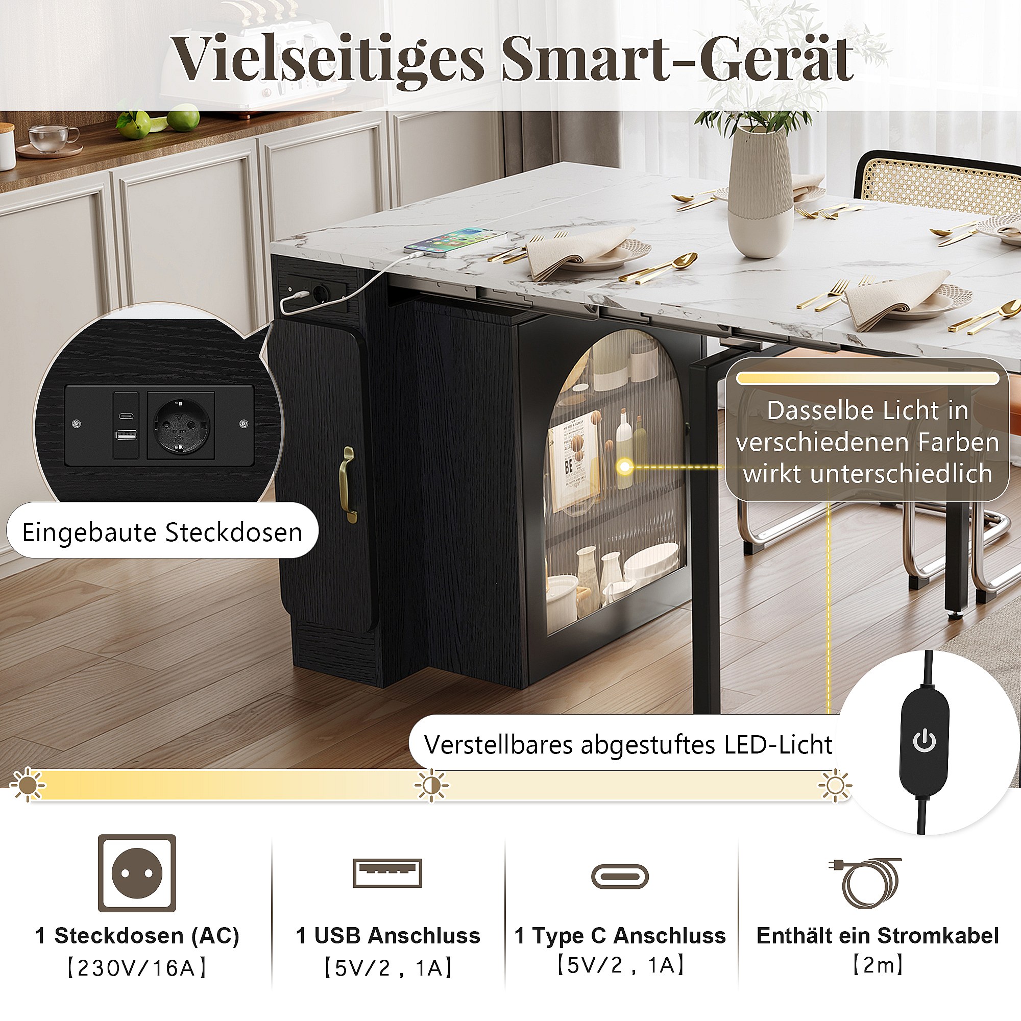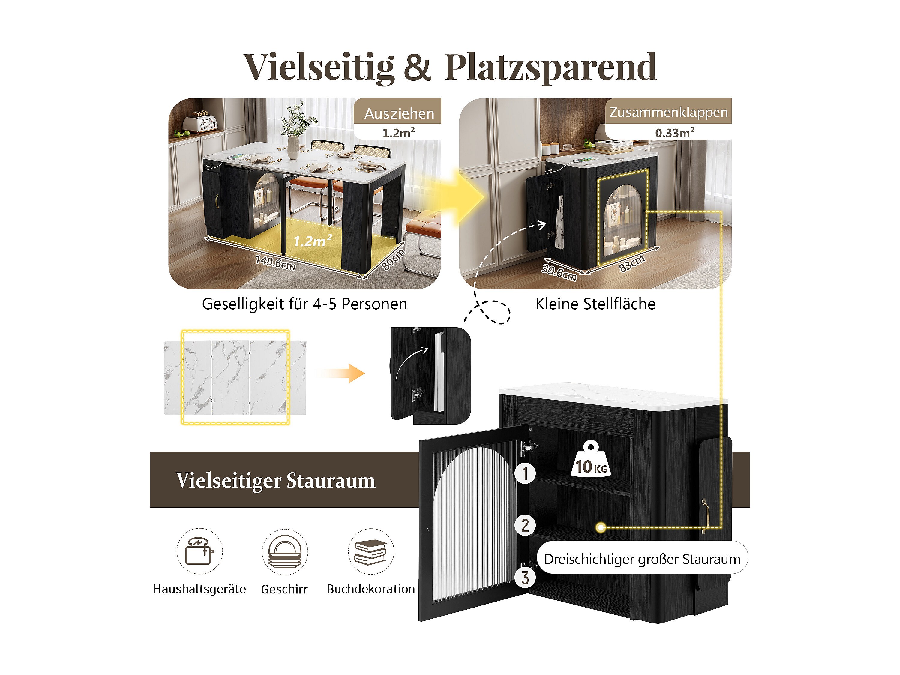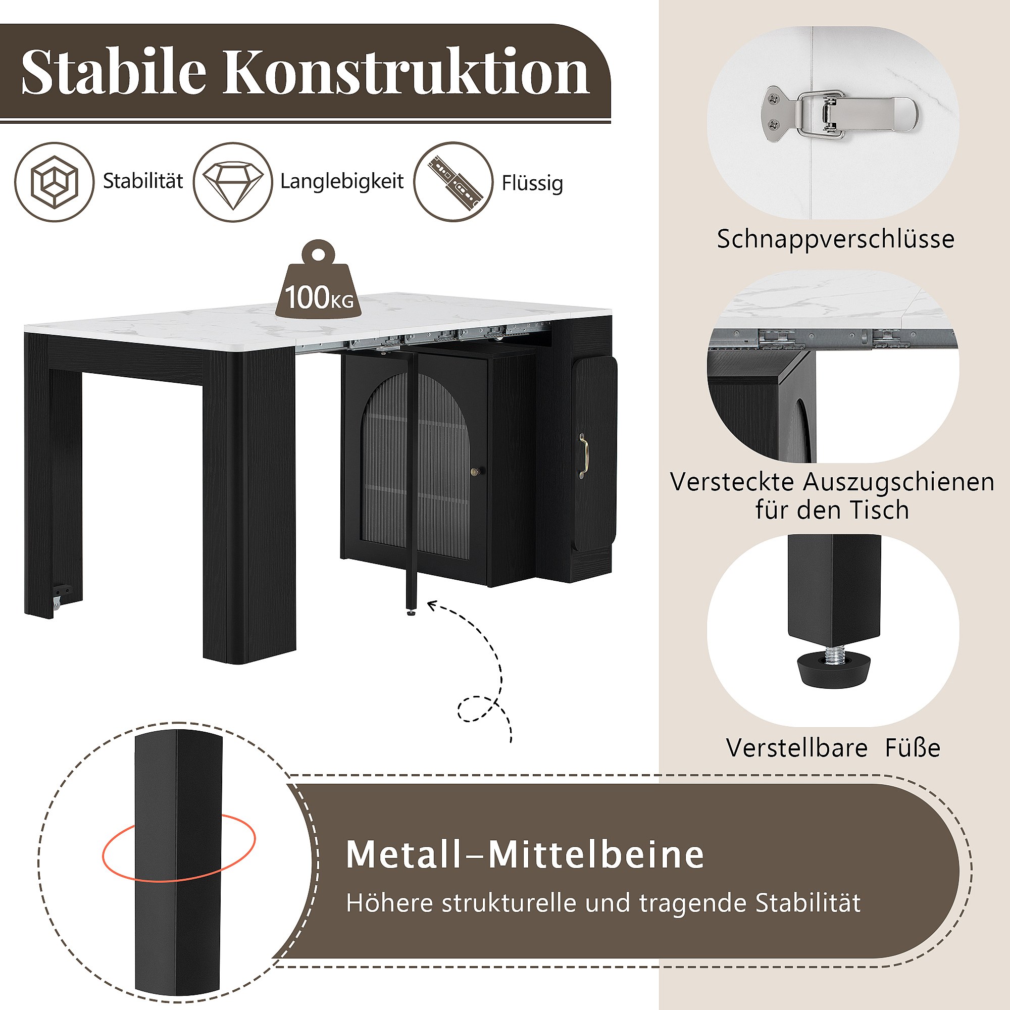 Table à manger extensible avec plateau amovible - 83 x 39.6/79.6/149.6 x 77 cm - avec rangement - MDF + verre - noir + blanc