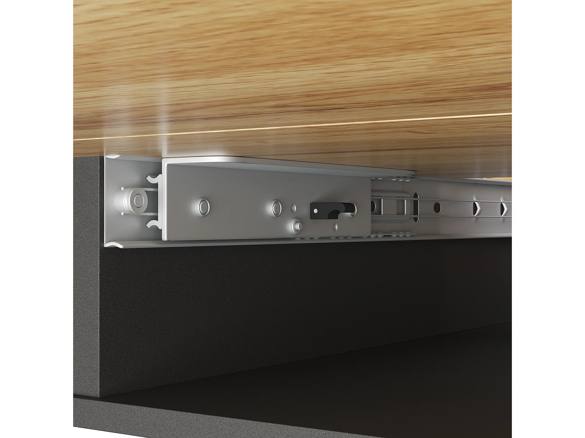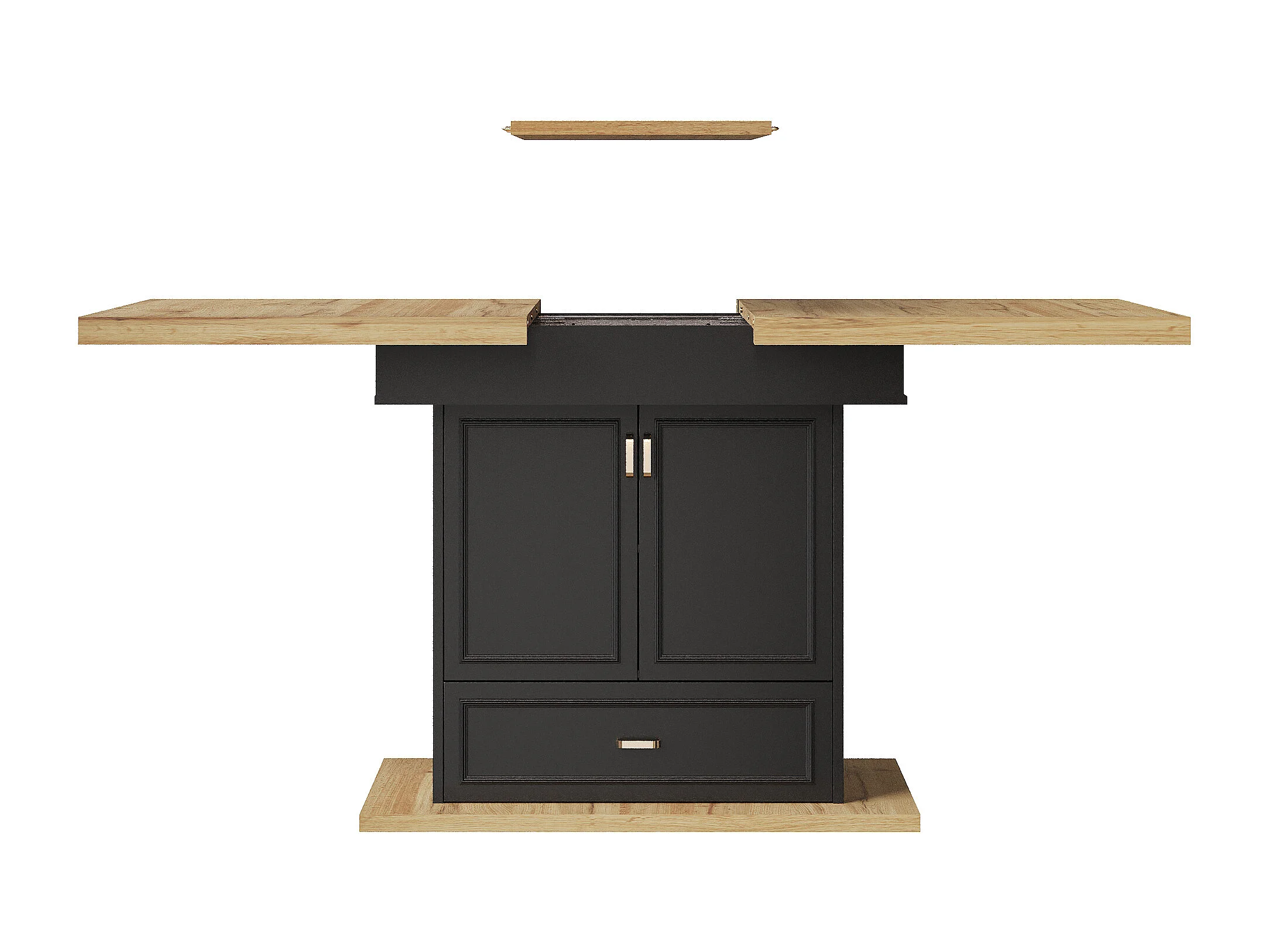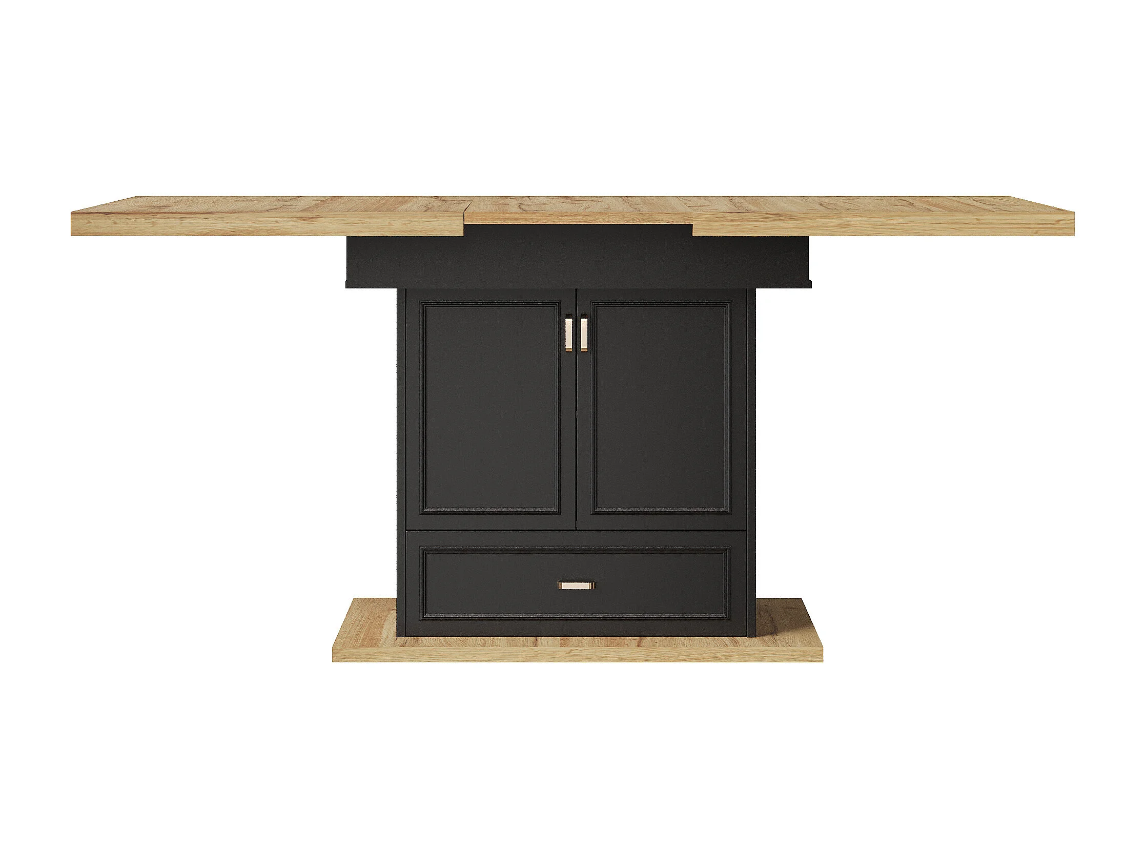 Table à manger extensible avec tiroir et 2 portes - Plateau woodgrain - Noir