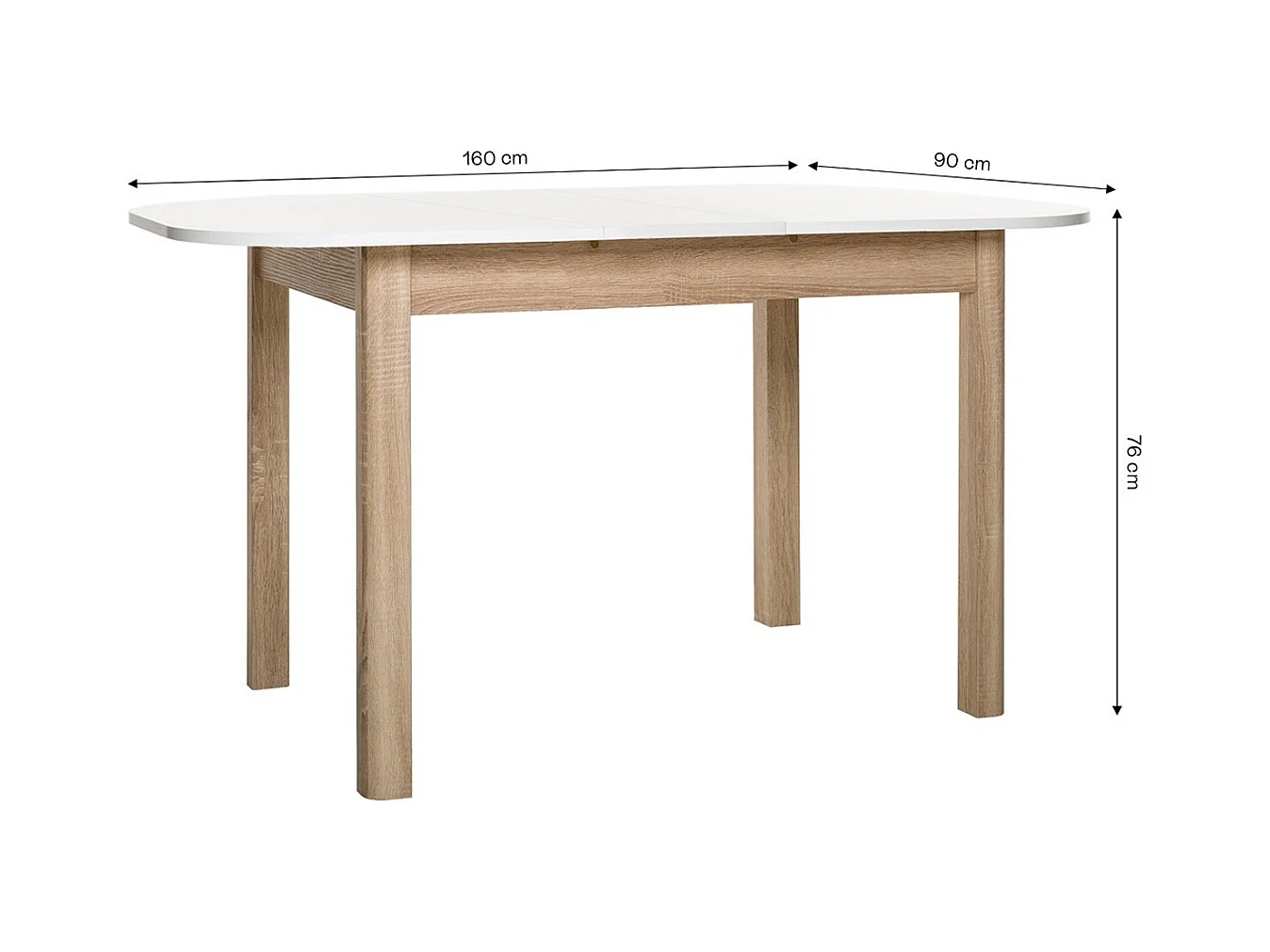 Table à manger extensible blanc/effet chêne 4/6 personnes 120/160 cm - Tori