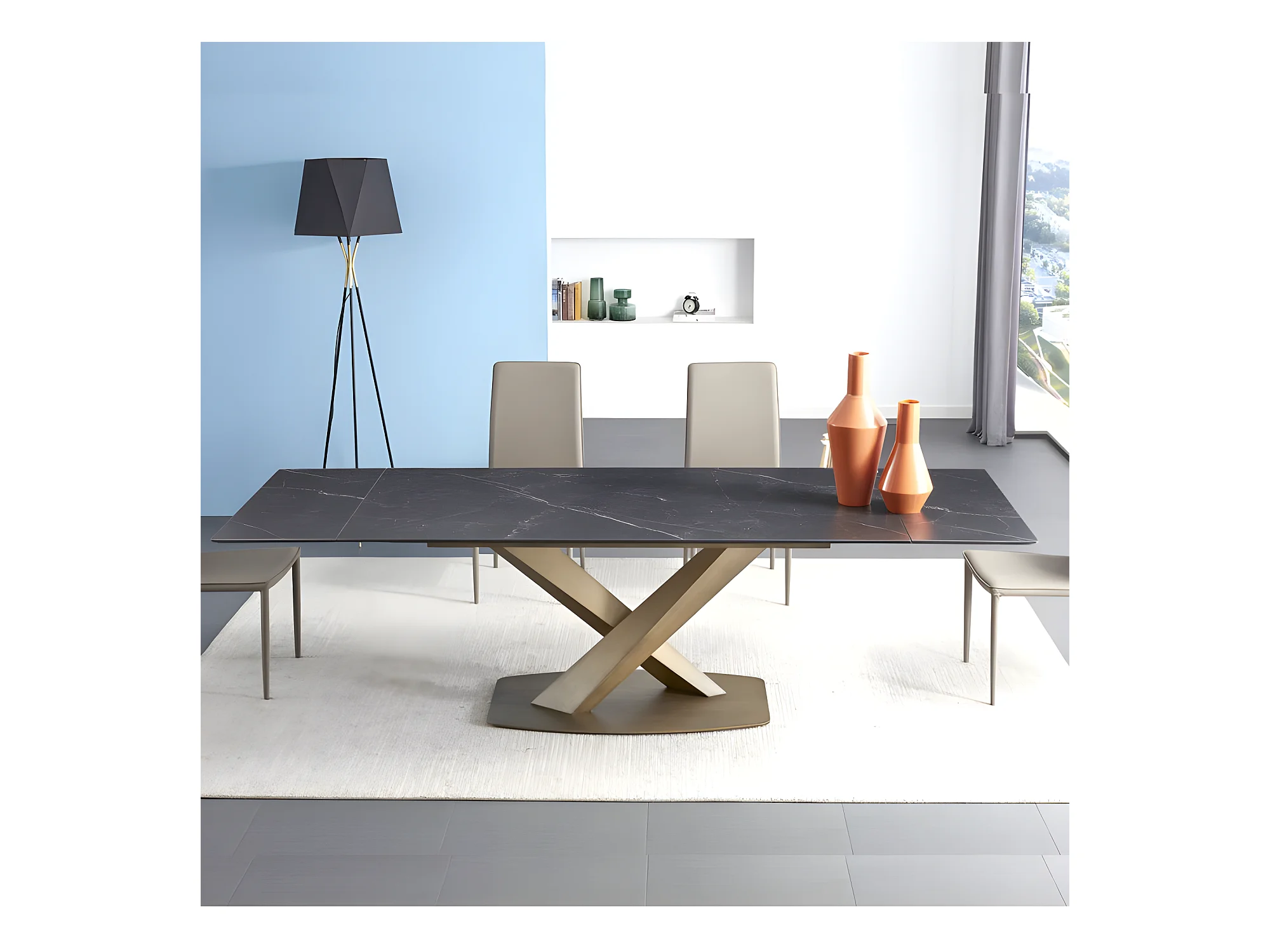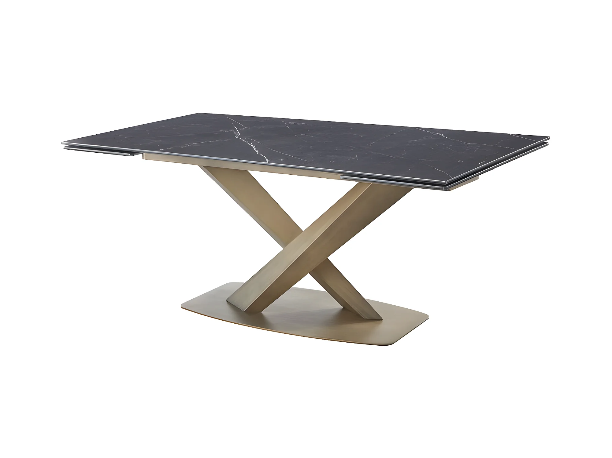 Table À Manger Extensible Céramique Aspect Marbre Carla - Couleurs - Céramique Marbre Noir Pied Or,