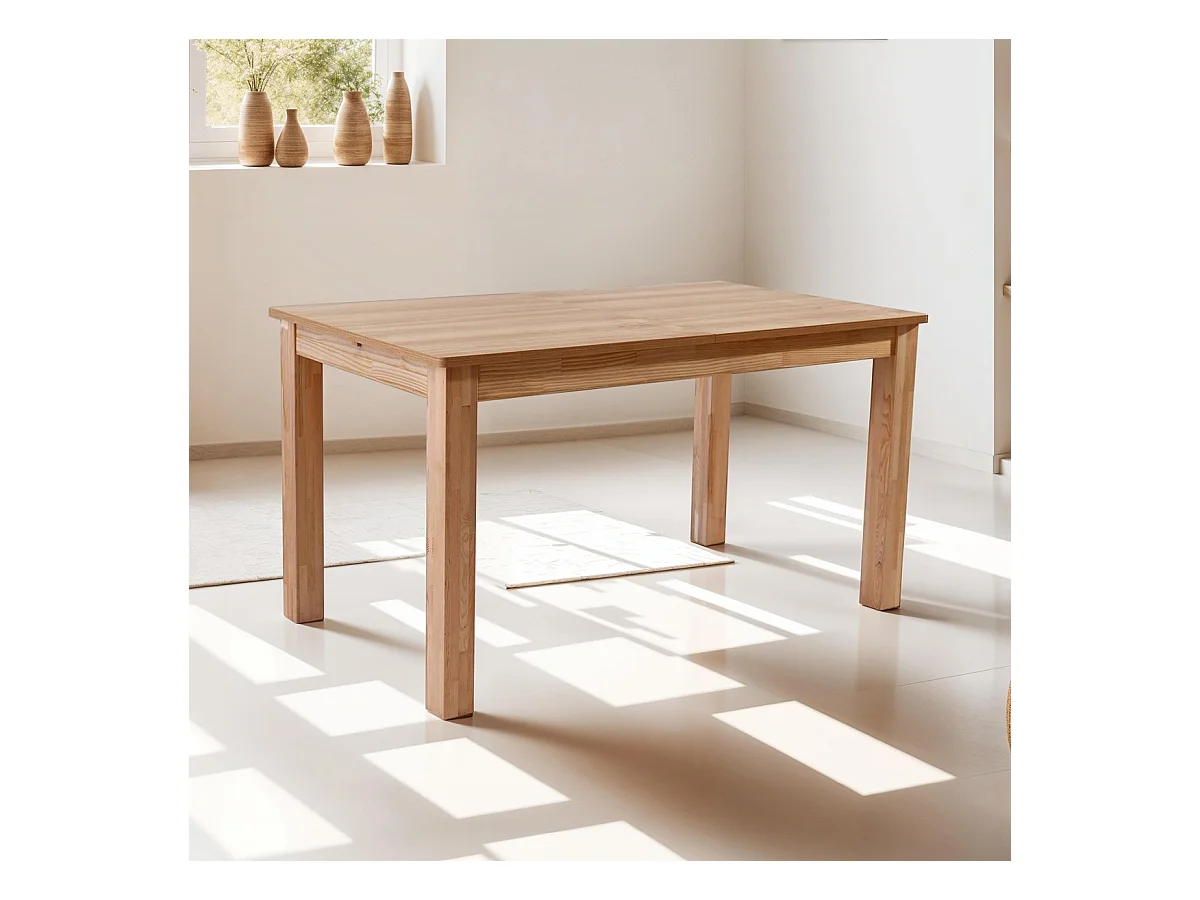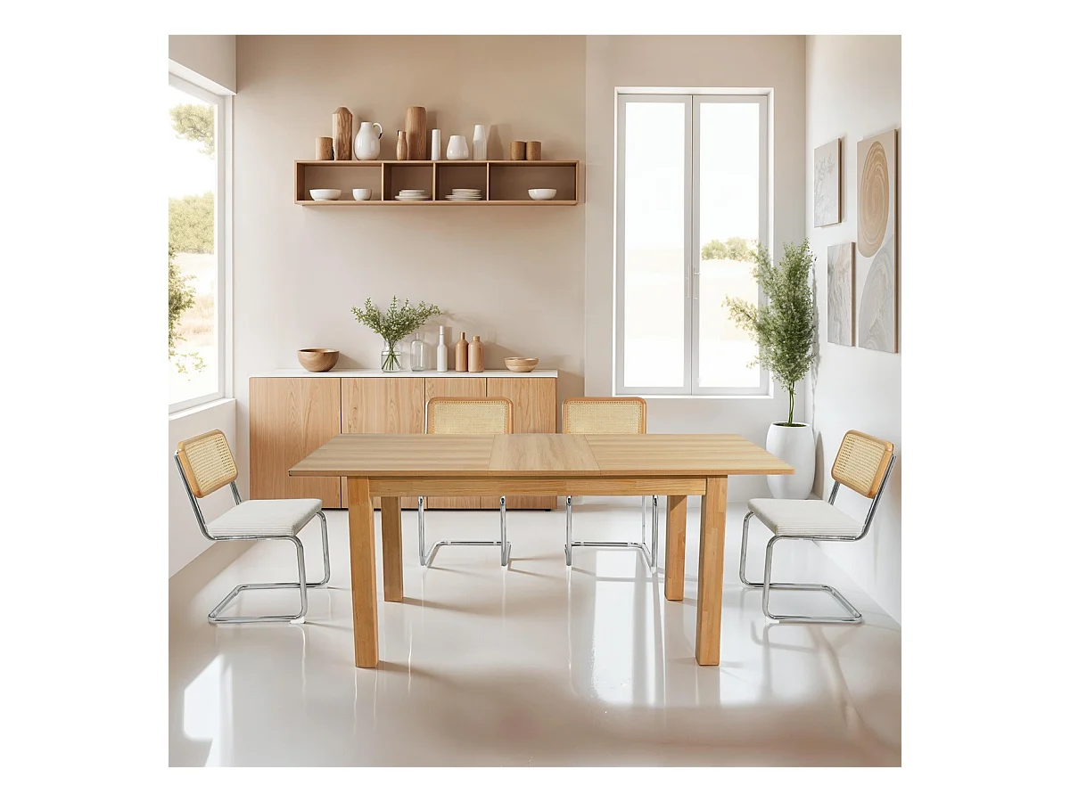Table à manger extensible effet bois 6/8 personnes, piètement bois 140/180 cm - Lexi