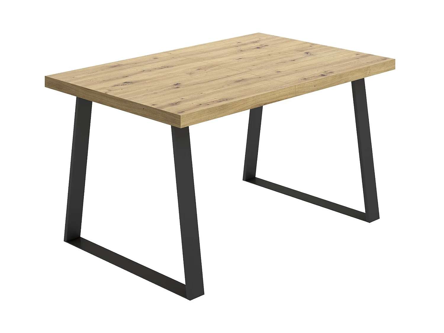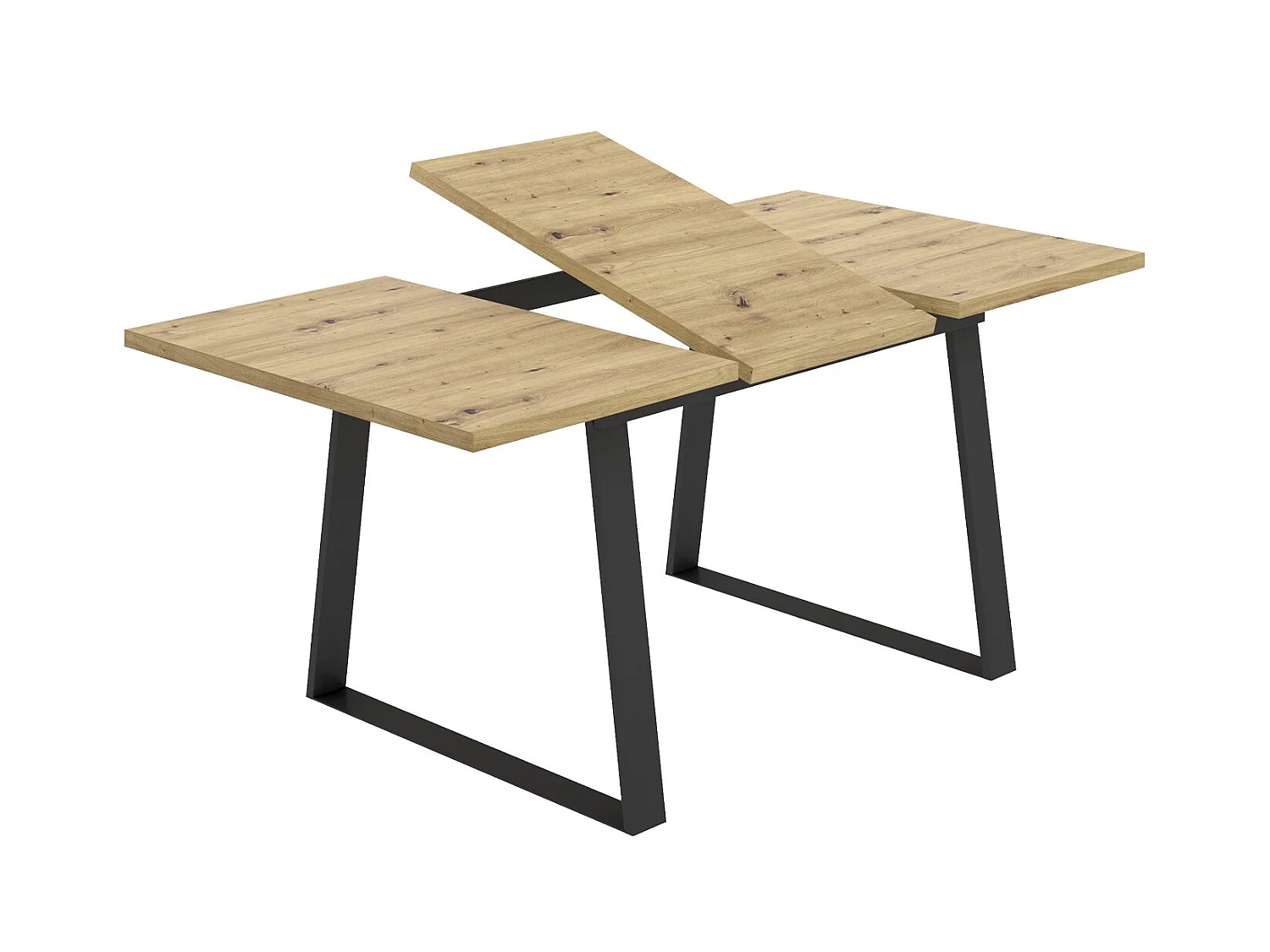 Table à manger extensible en bois coloris chêne avec pieds en métal noir - Longueur 120-160 x Profondeur 90 x Hauteur 75 cm