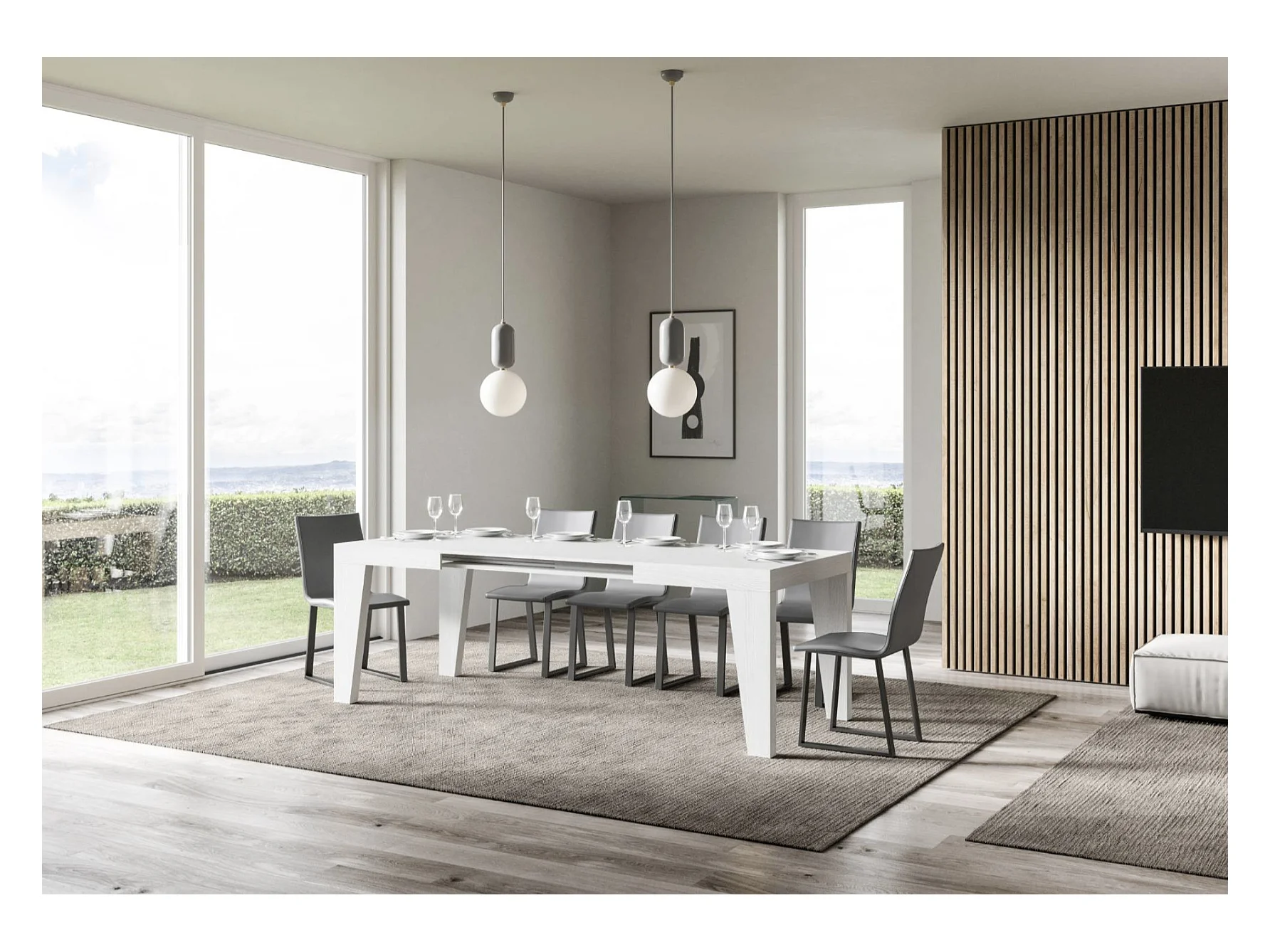 Table à manger extensible bois Naxo-Couleur Blanc-Sur roulettes-2 rallonges fines-140 à 244cm