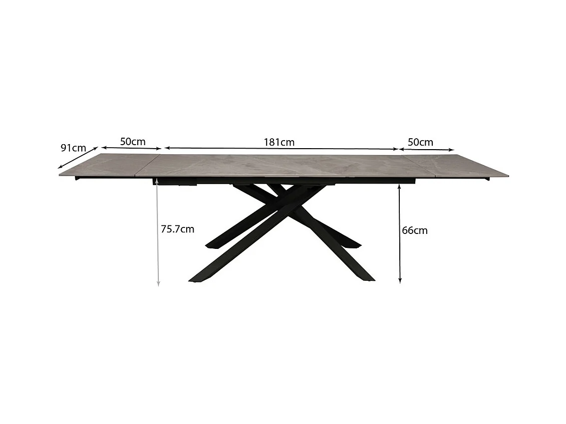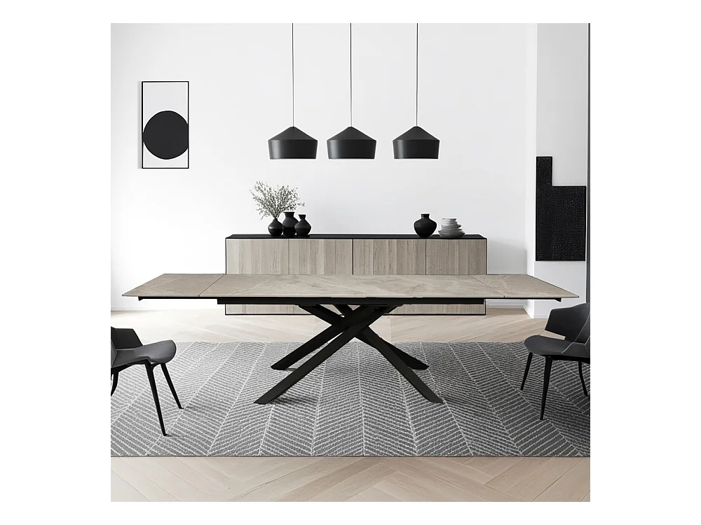 TABLE À MANGER EXTENSIBLE EN PIERRE OSIRIS / TABLE 180X90CM + 2 ALLONGES DE 50CM - 12 PERSONNES - GRIS EFFET MARBRE