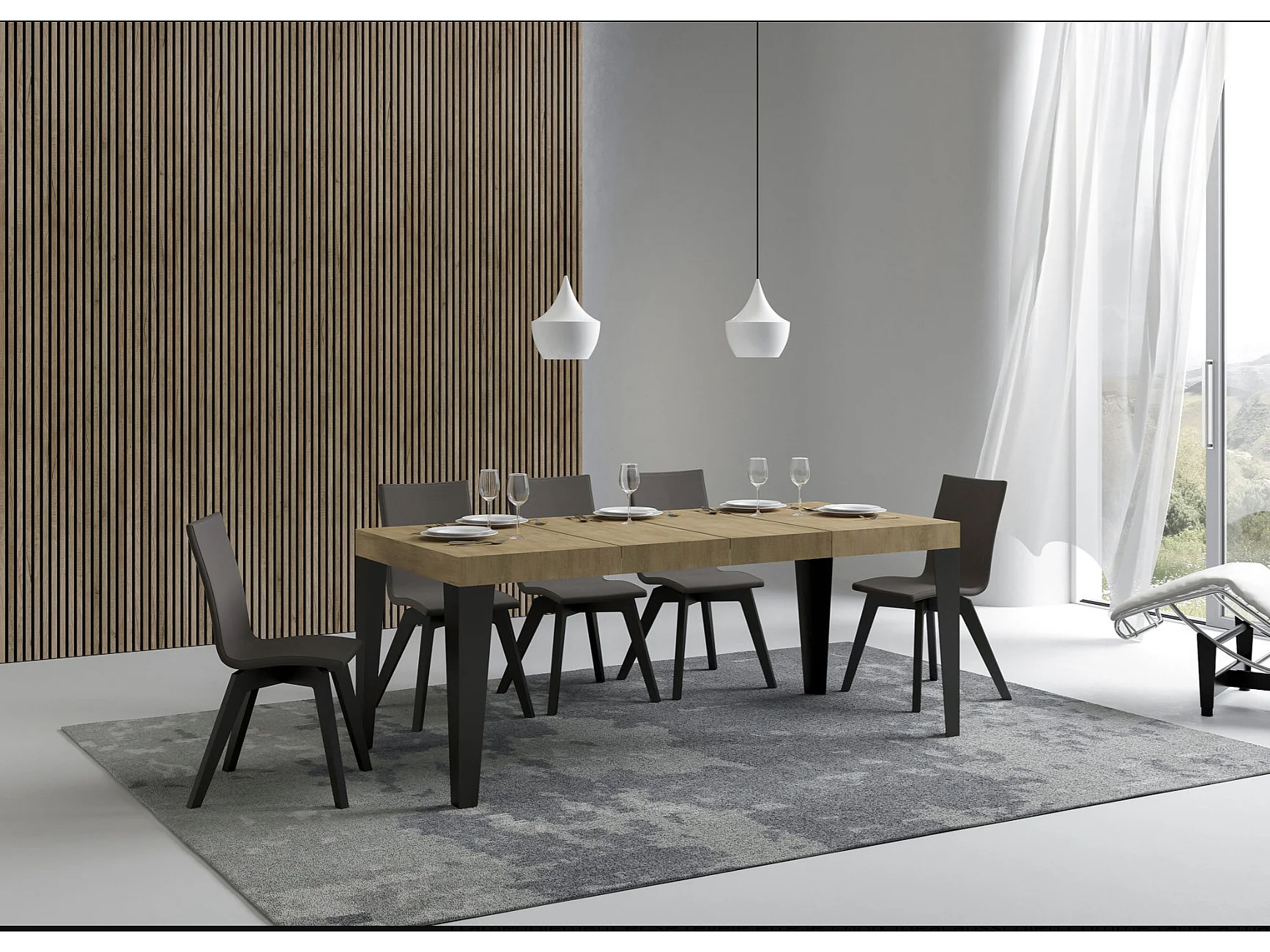Table à manger extensible Flavio-Couleur Marron-4 pieds-2 rallonges épaisses-160 à 264cm