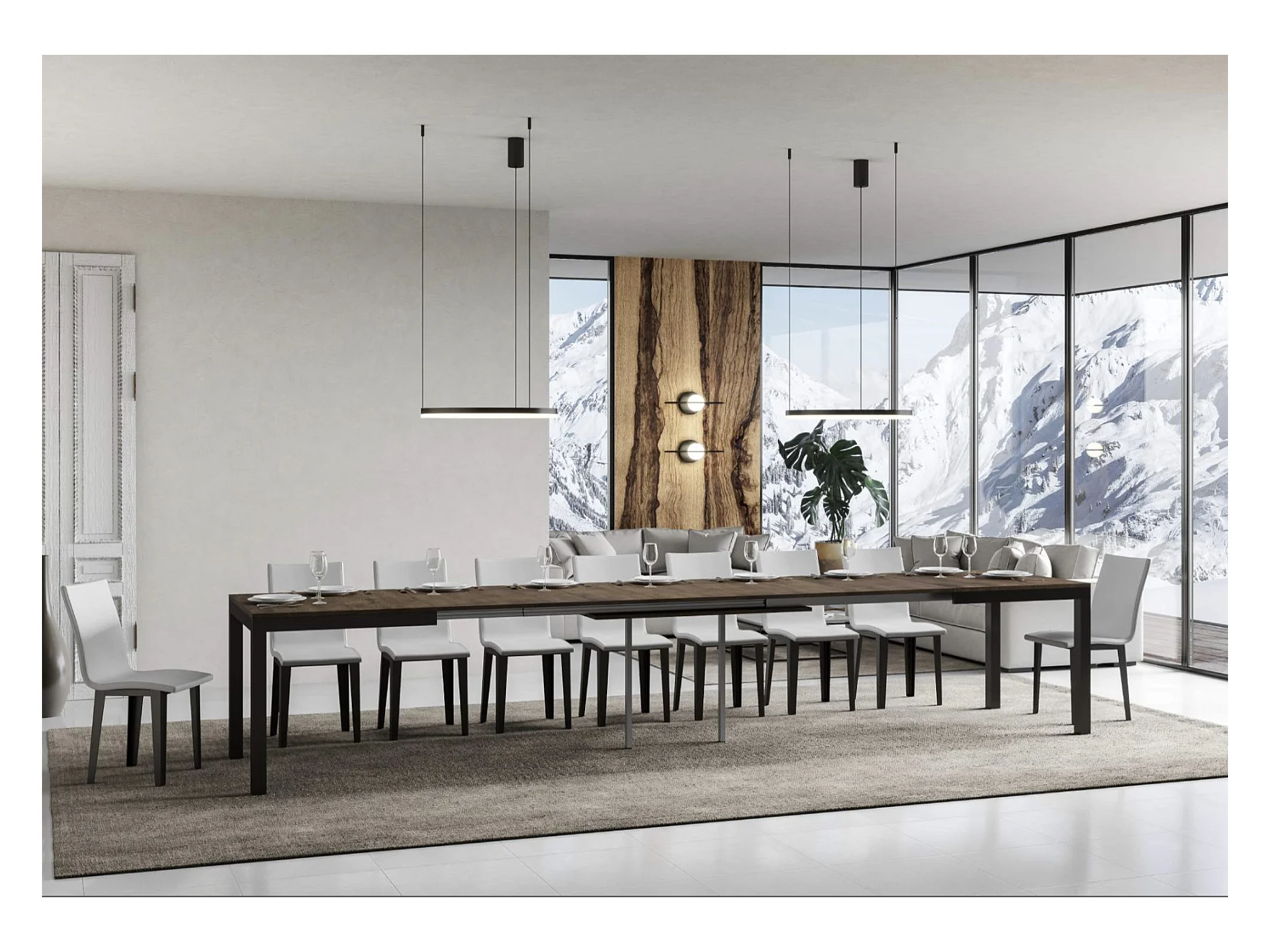 Table à manger extensible Karry evolution-Couleur Marron-Sur roulettes-160 à 420cm