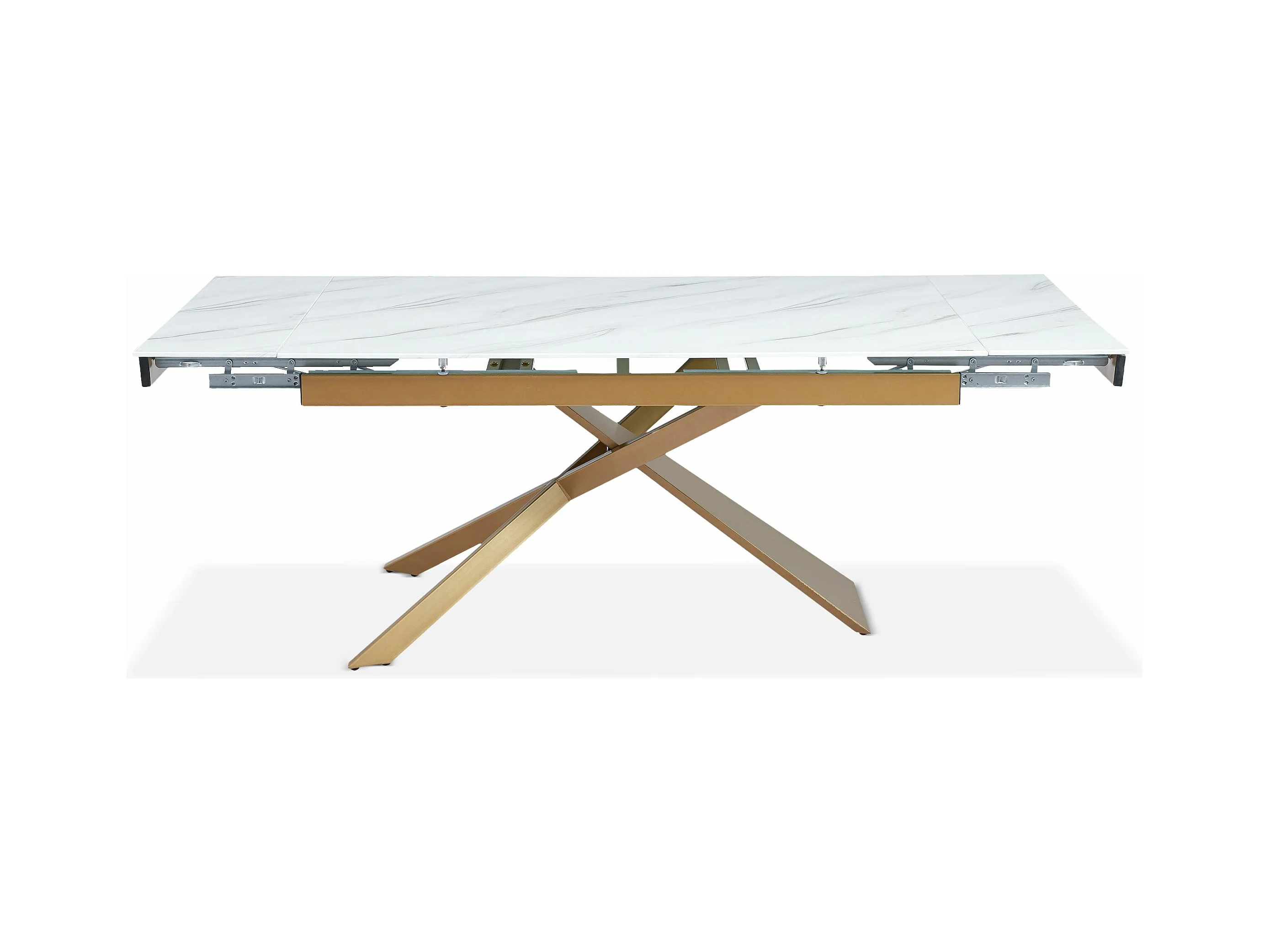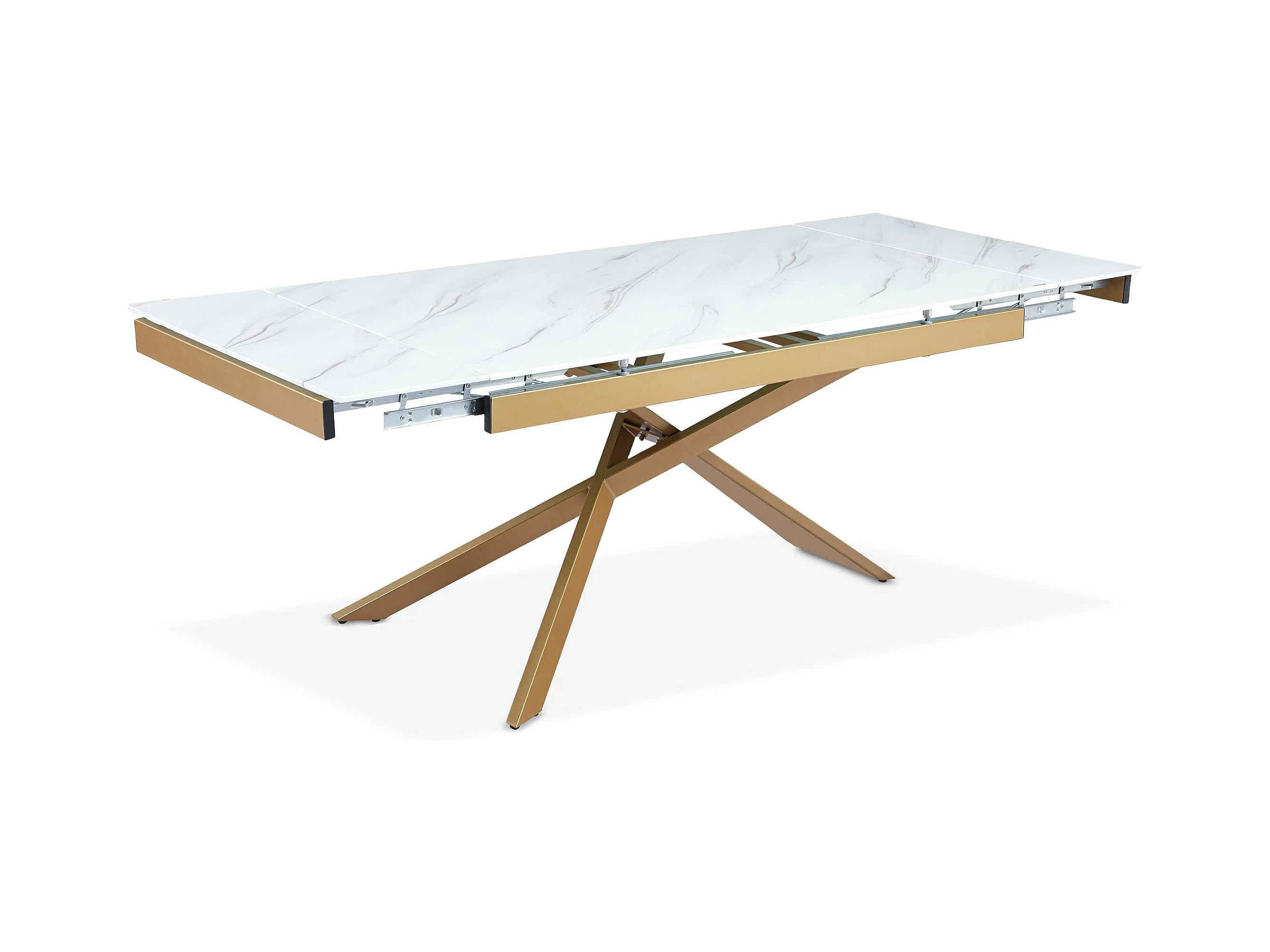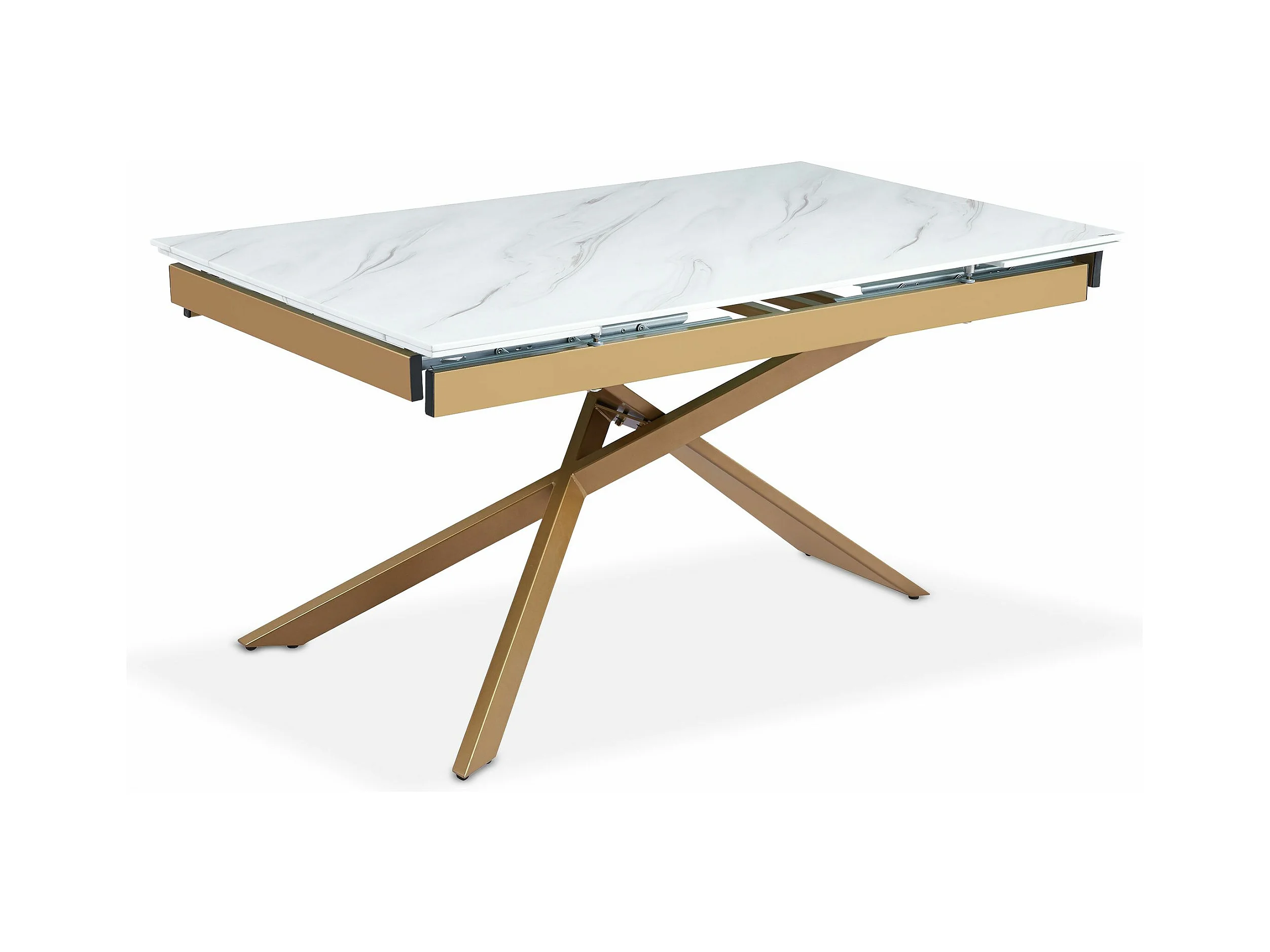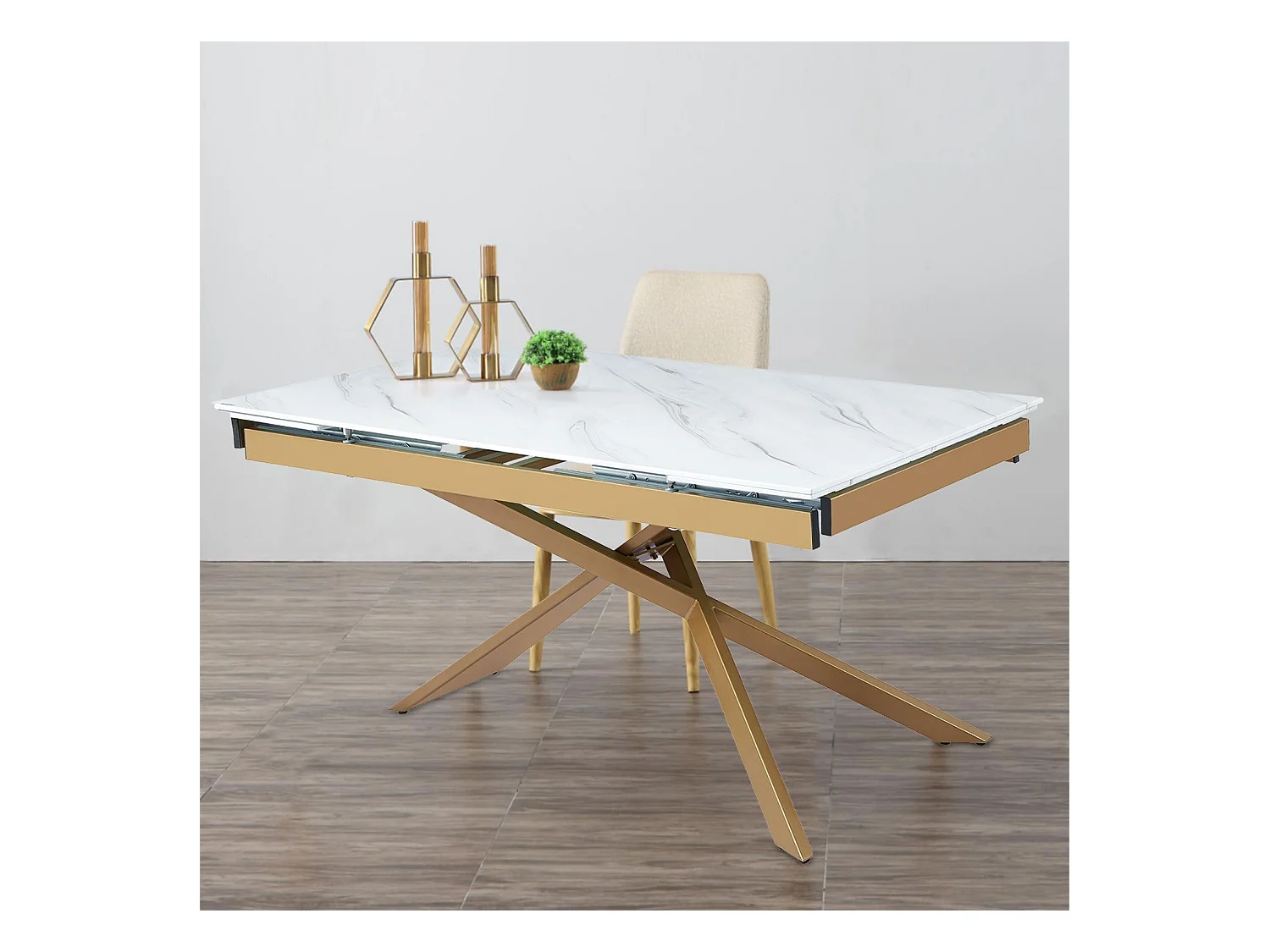 Table à manger extensible Ismael en Verre effet Marbre Blanc et pieds Métal Or