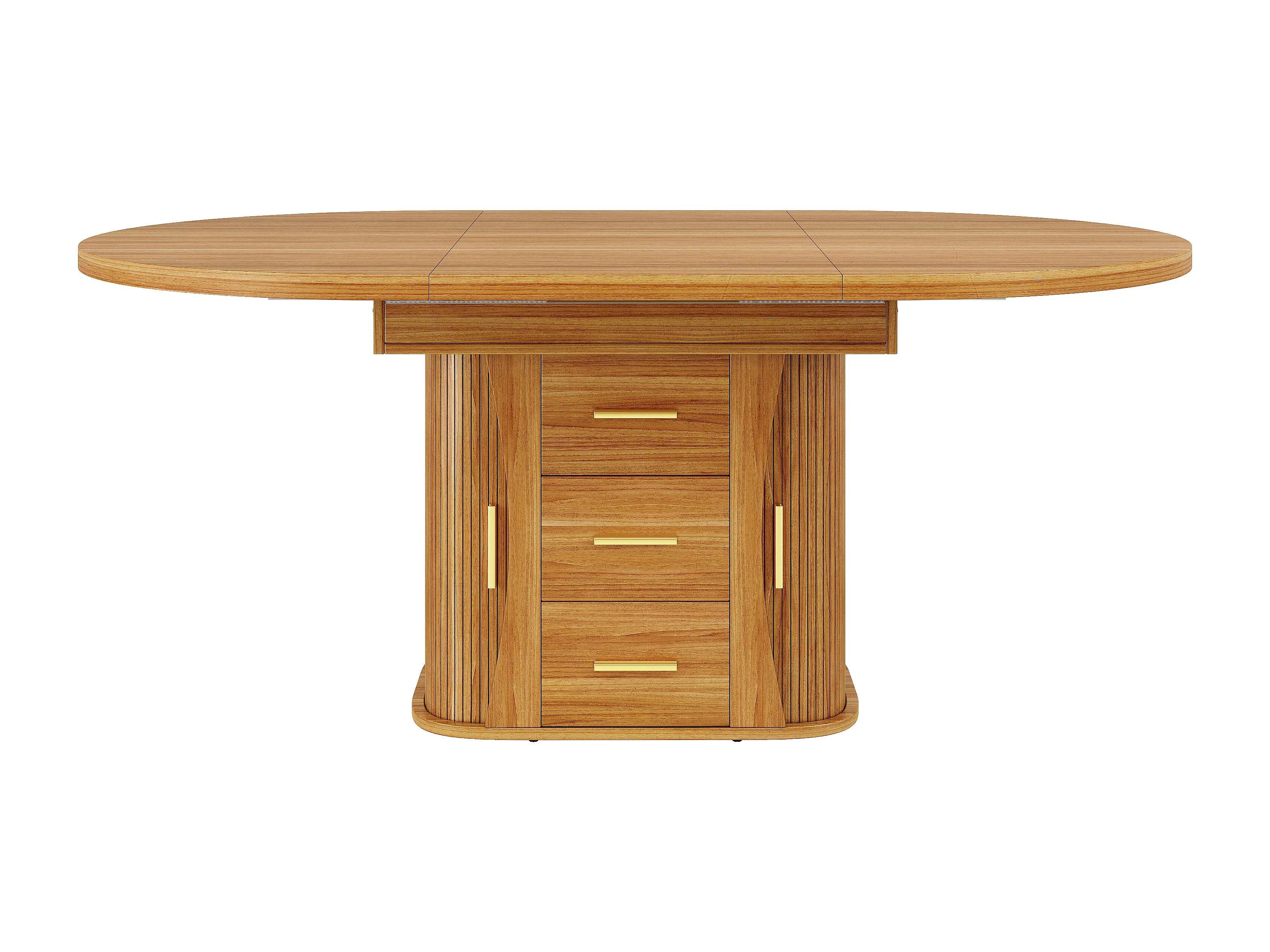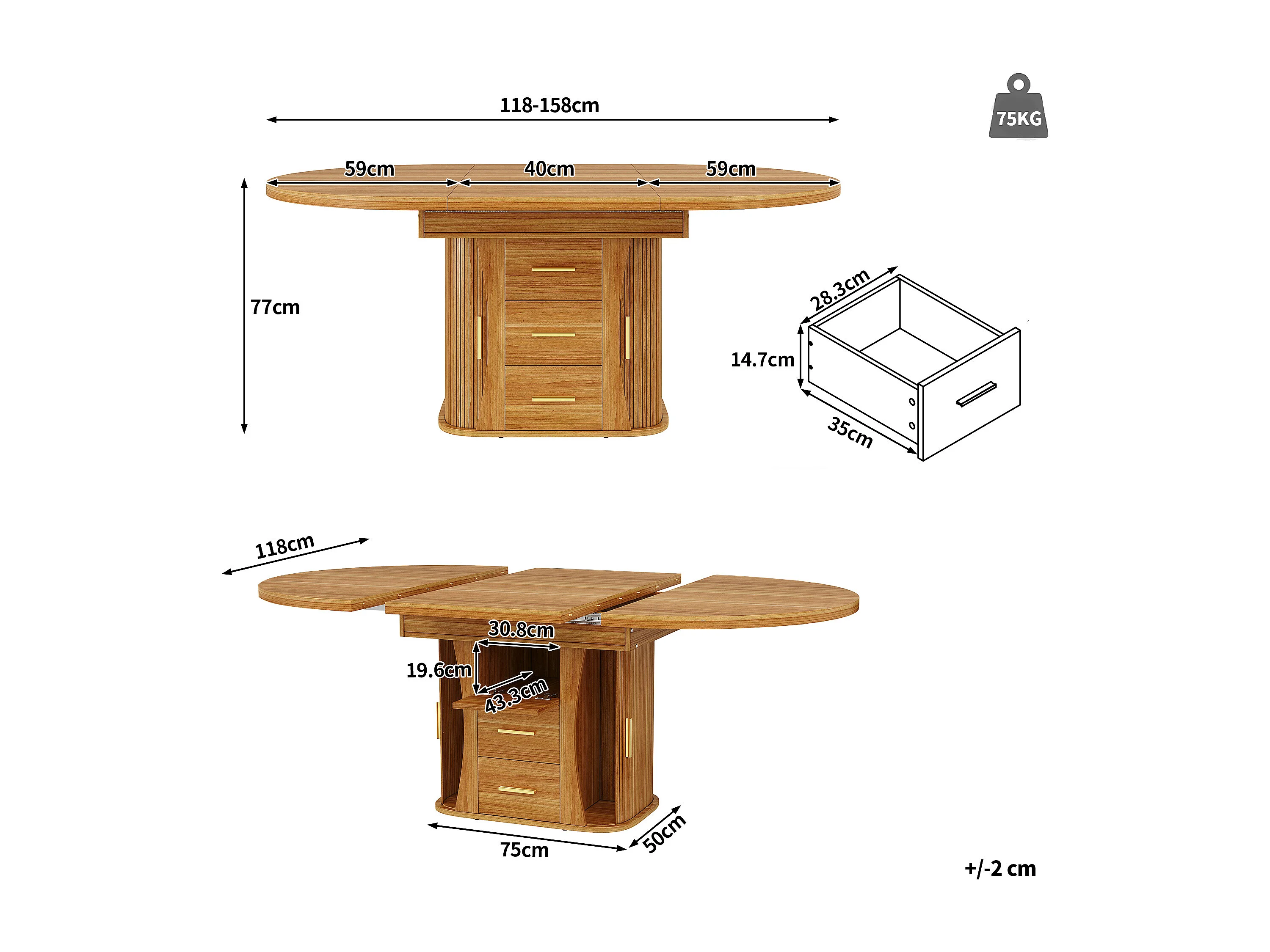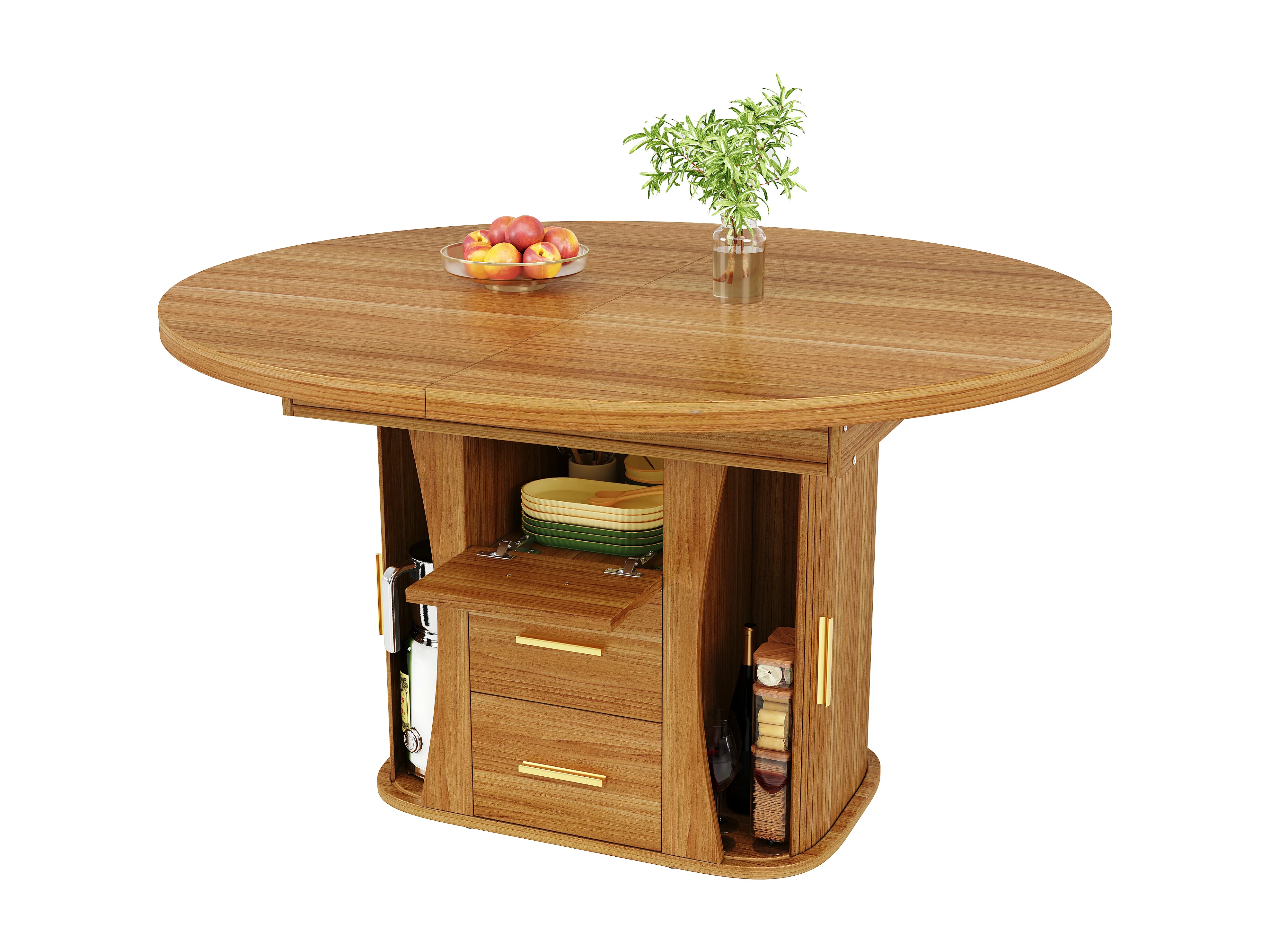 Table à manger extensible - MDF - Table ronde - 118-158 cm - 6 personnes - espace de stockage à 3 niveaux - Naturel