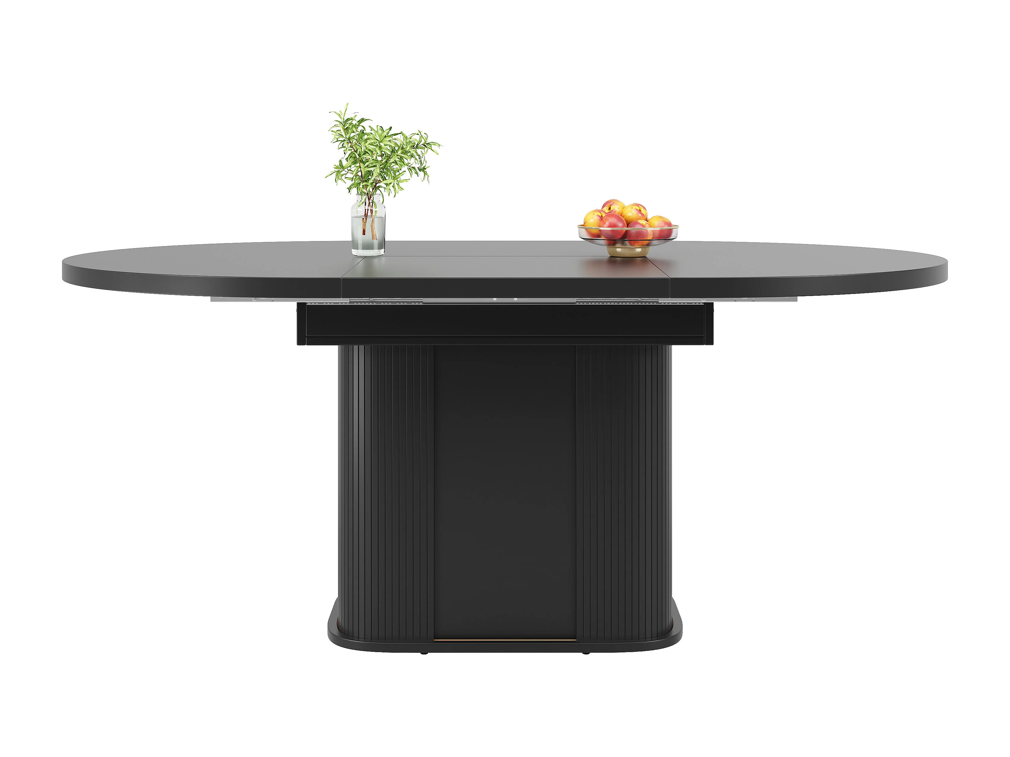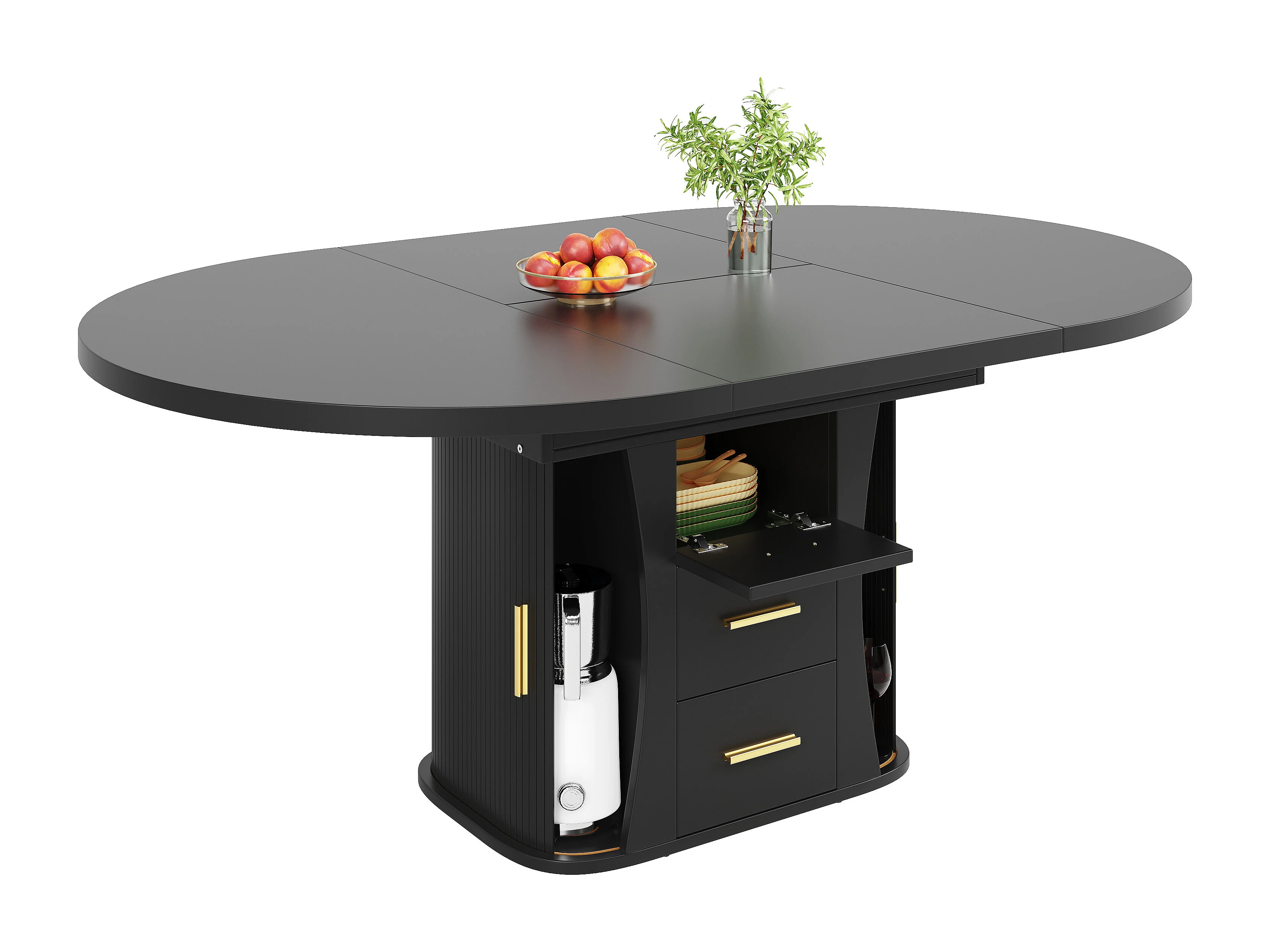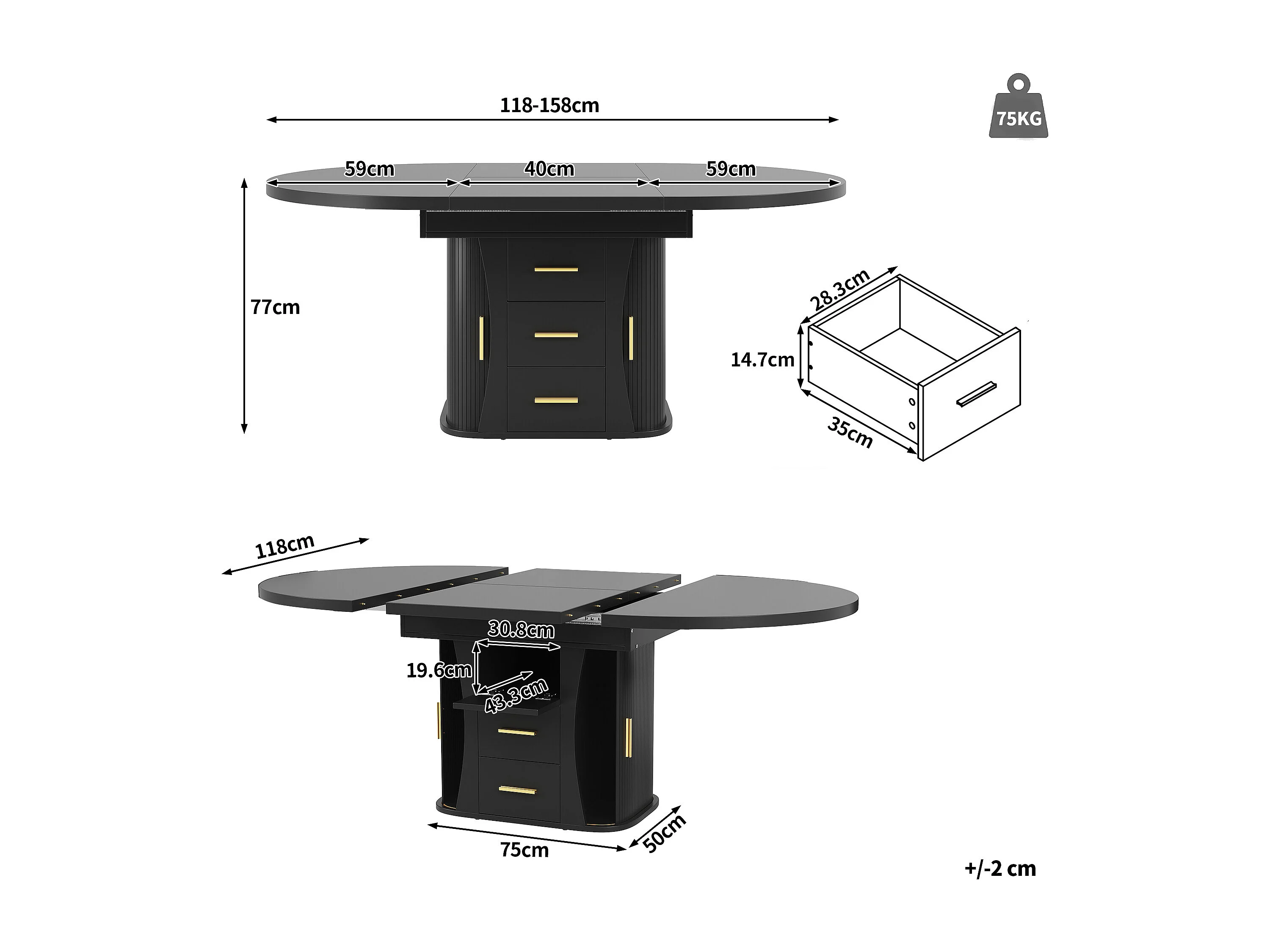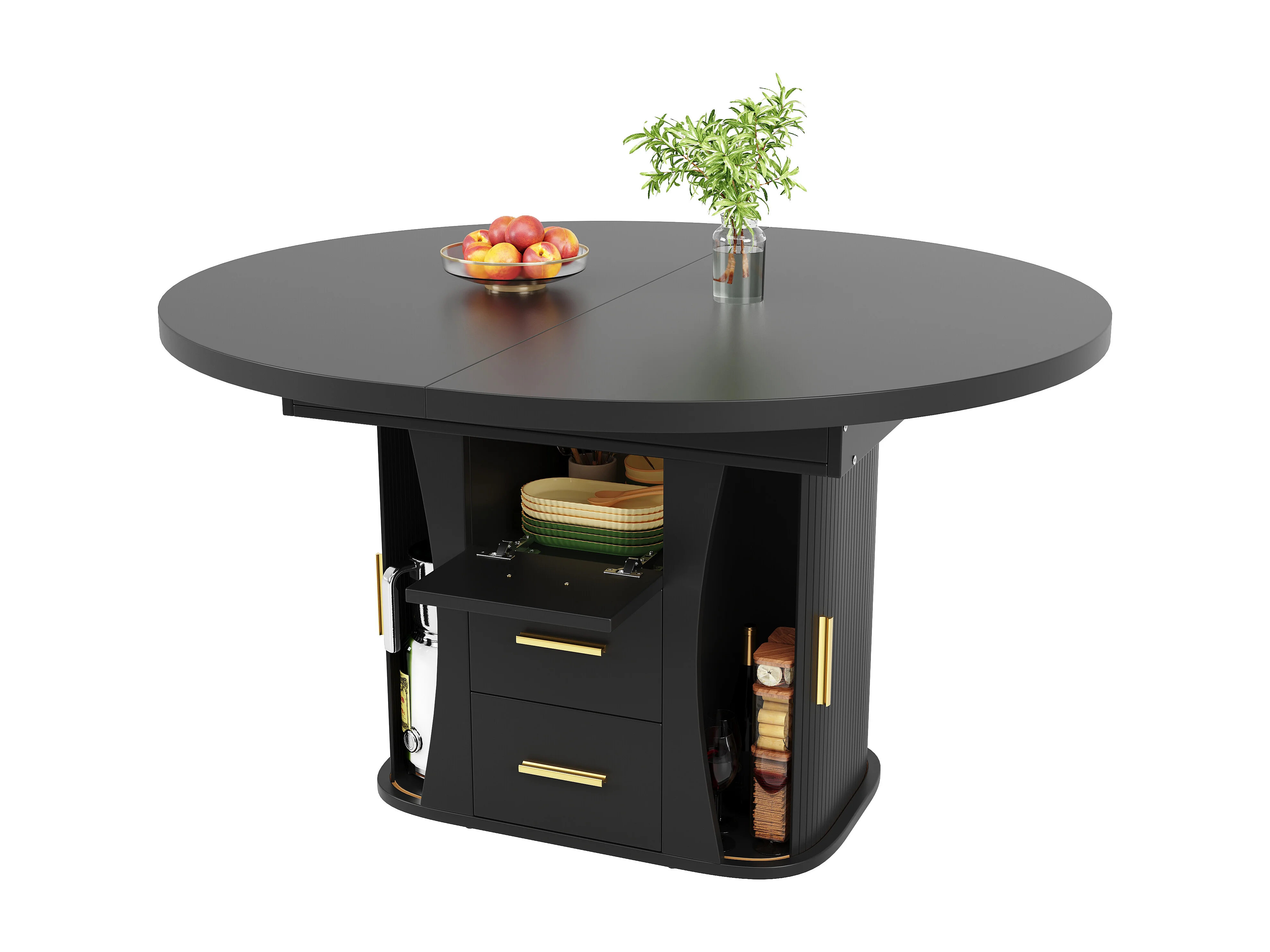 Table à manger extensible - MDF - Table ronde - 118-158 cm - 6 personnes - espace de stockage à 3 niveaux - Noir