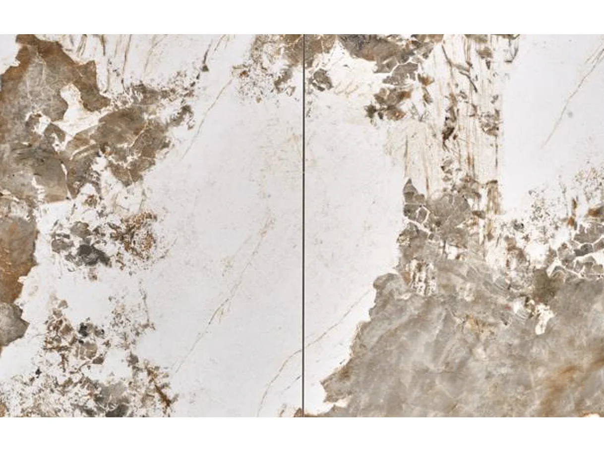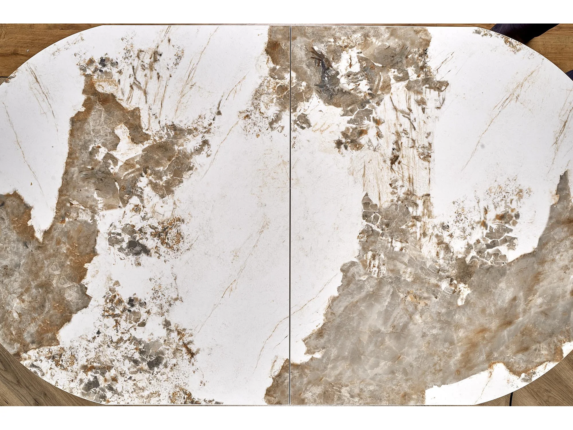 Table à manger extensible métal & marbre cappuccino 160cm Calexo