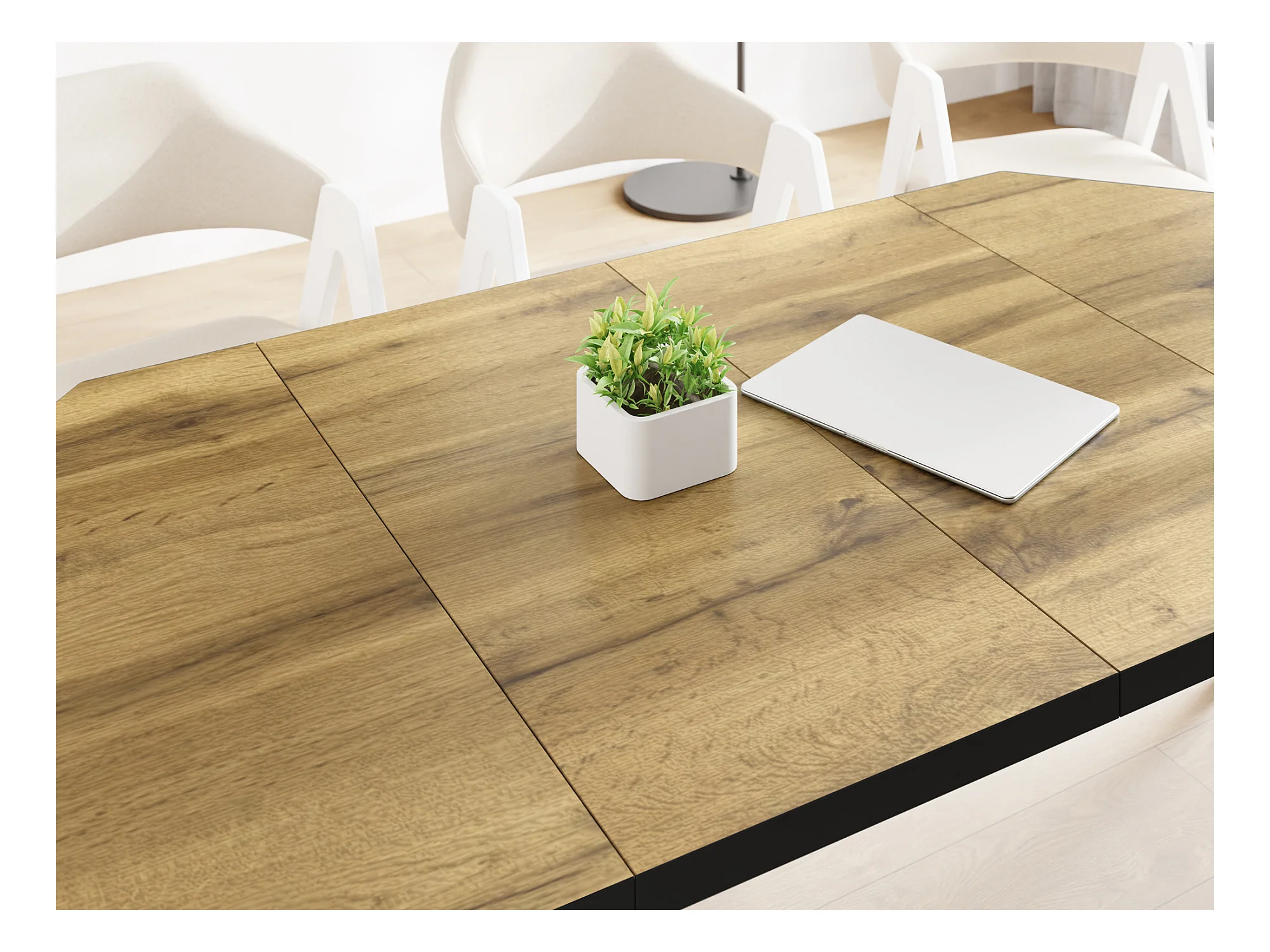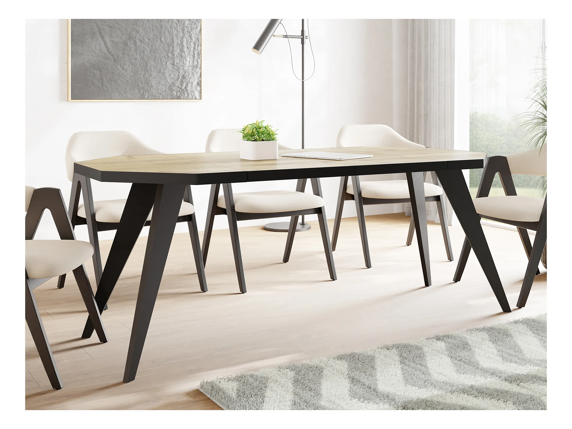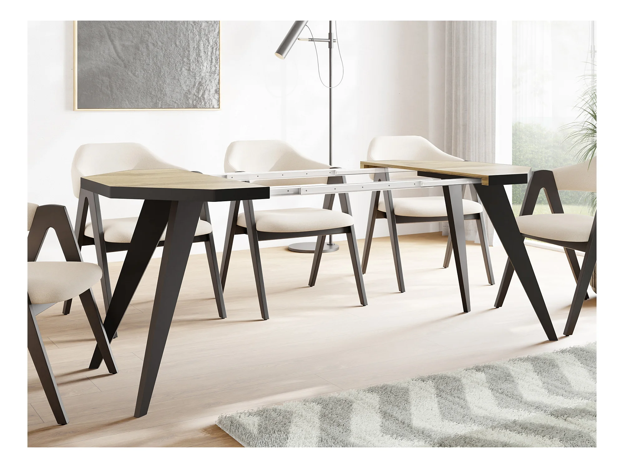 Table à Manger Extensible Moderne avec Pieds Noirs - Plateau en Panneau Stratifié, Style Loft - Chêne Wotan - 100/200