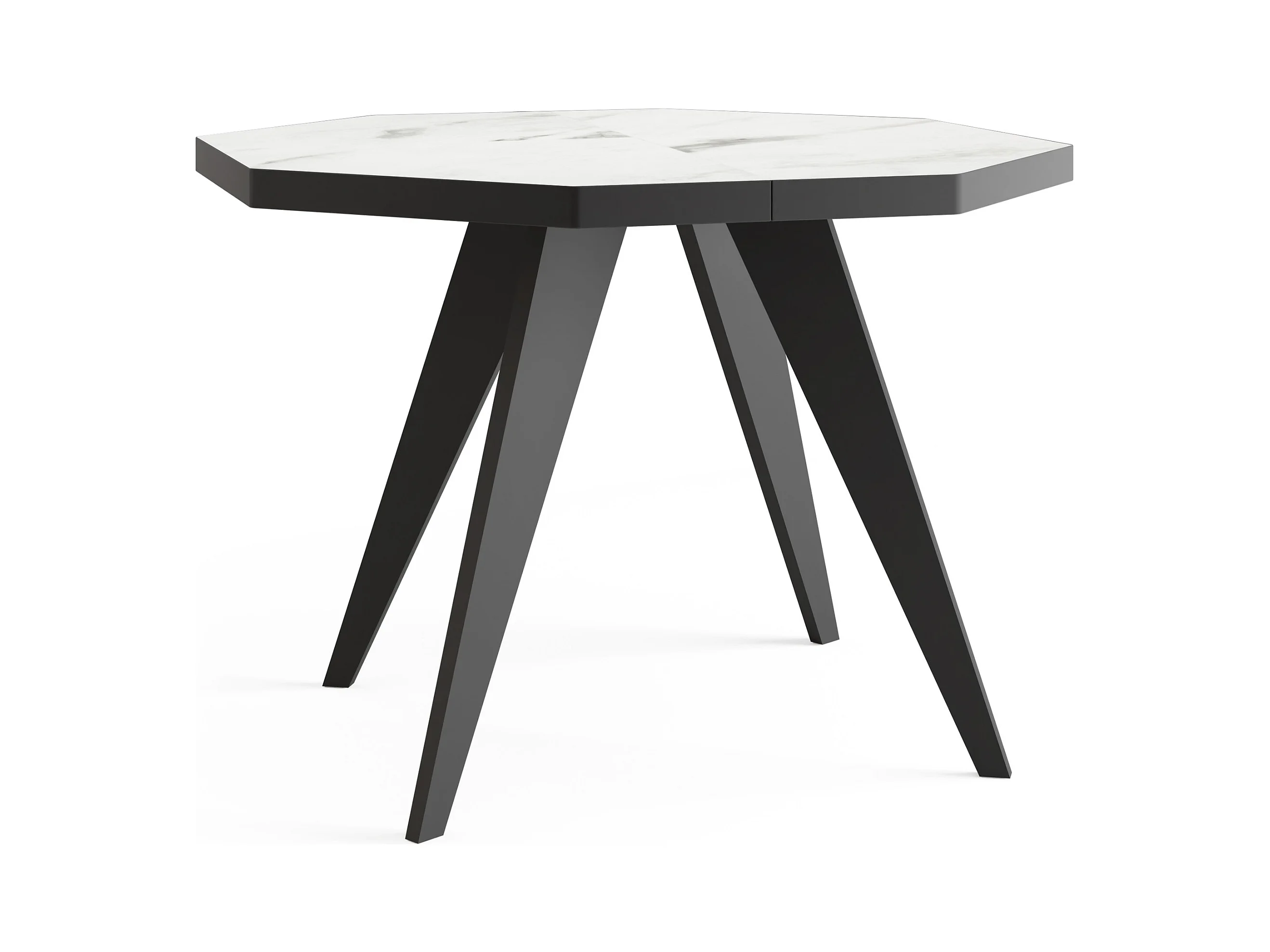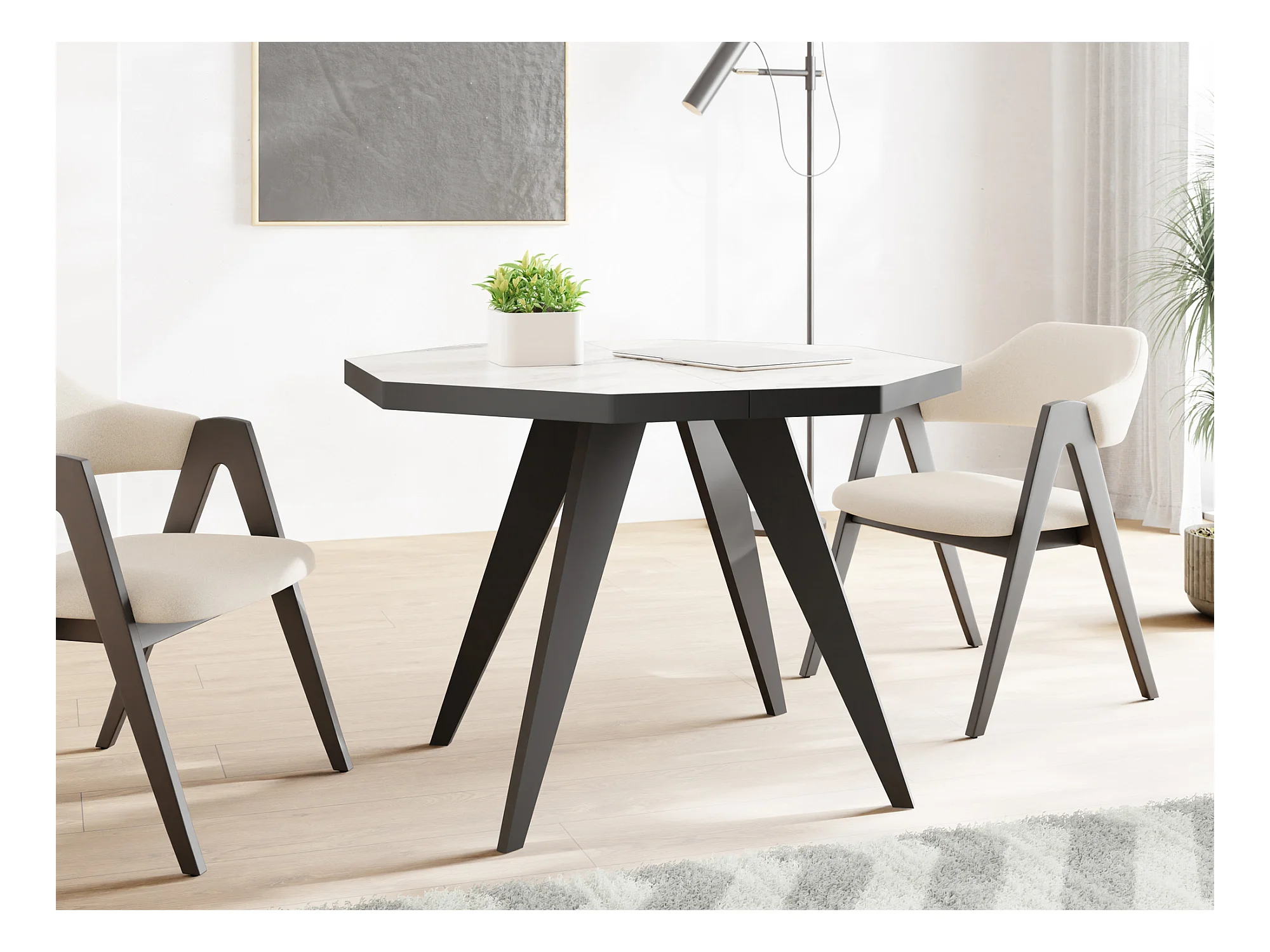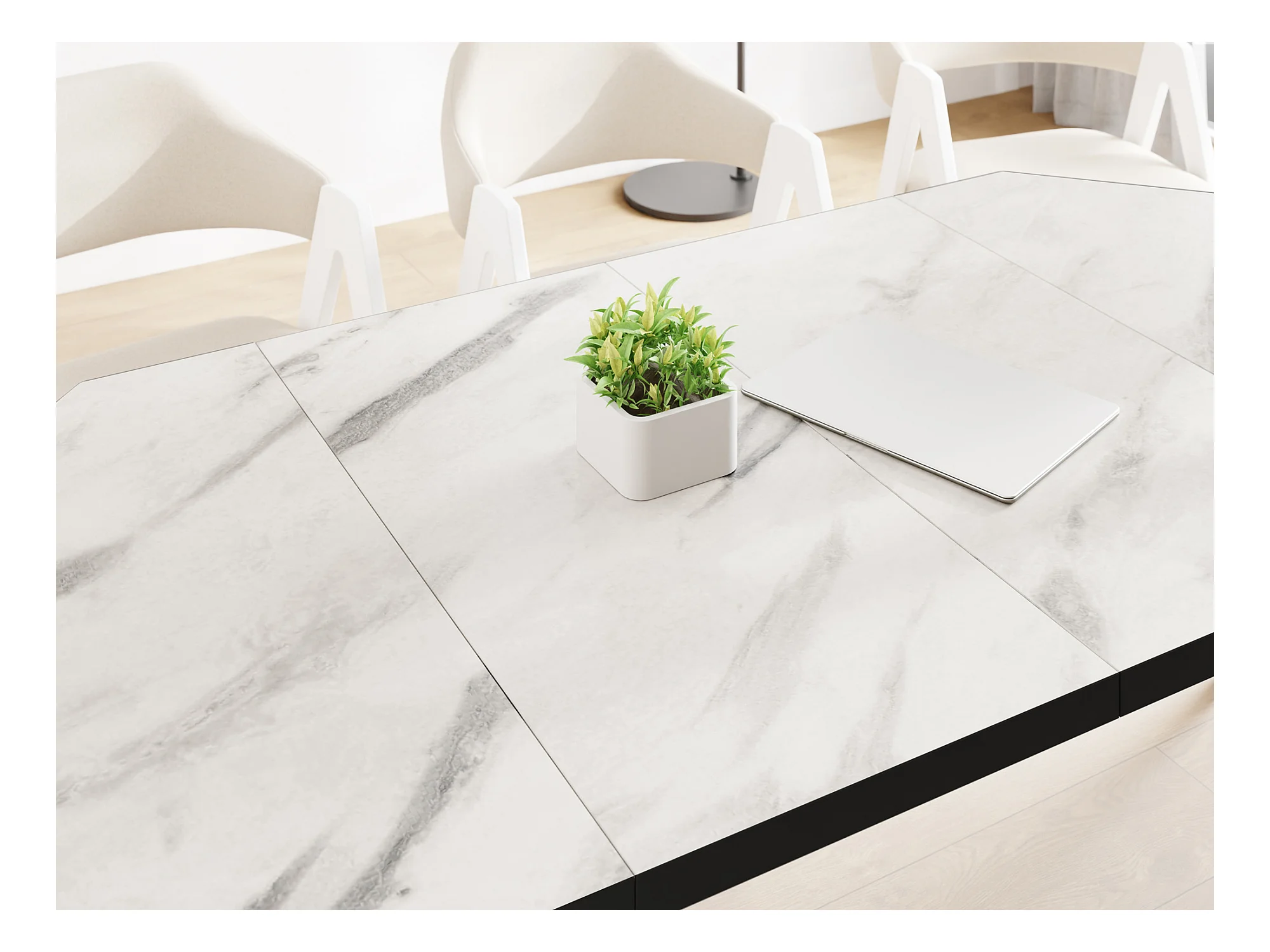Table à Manger Extensible Moderne avec Pieds Noirs - Plateau en Panneau Stratifié, Style Loft - Marbre Blanc - 100/200