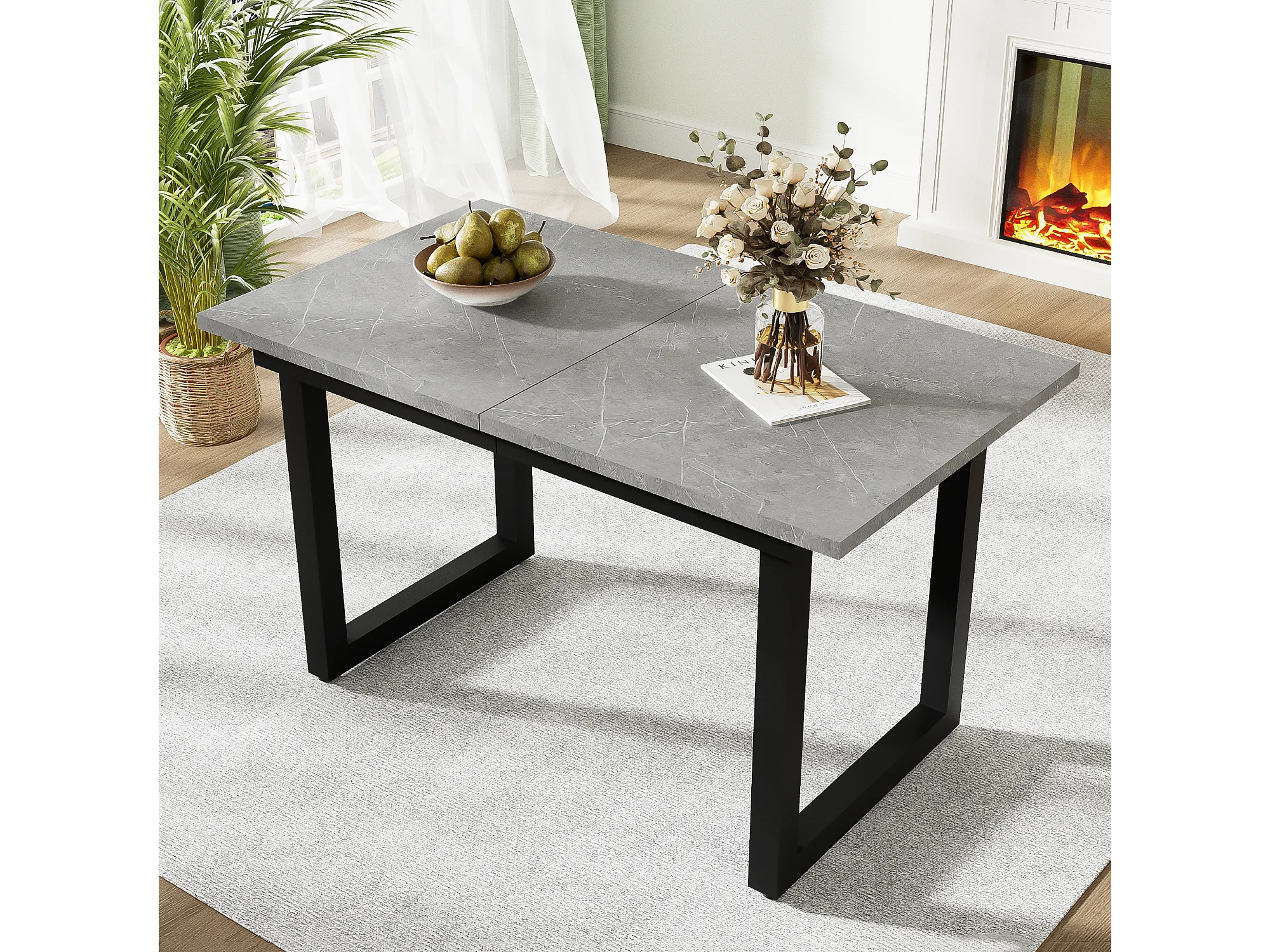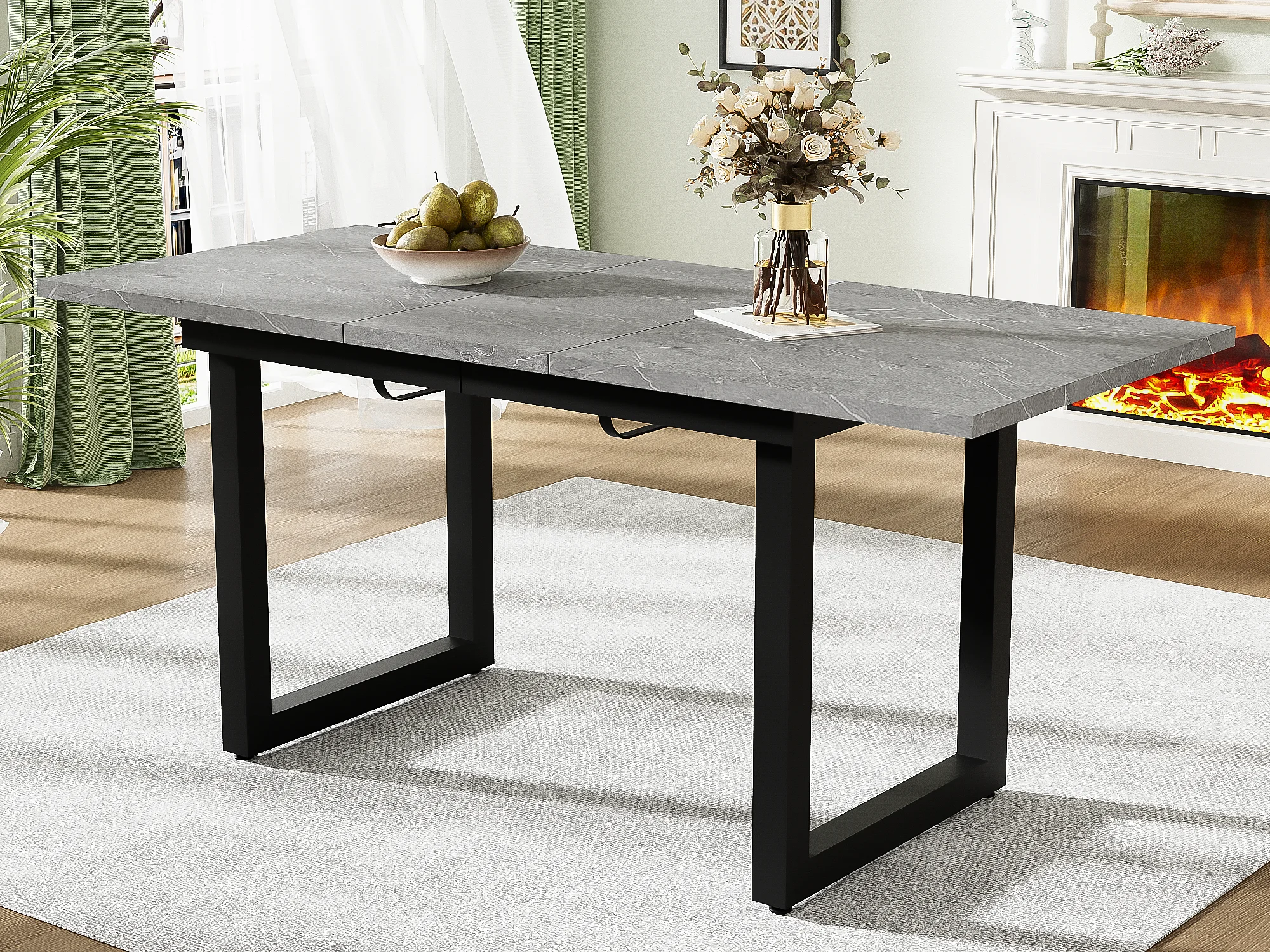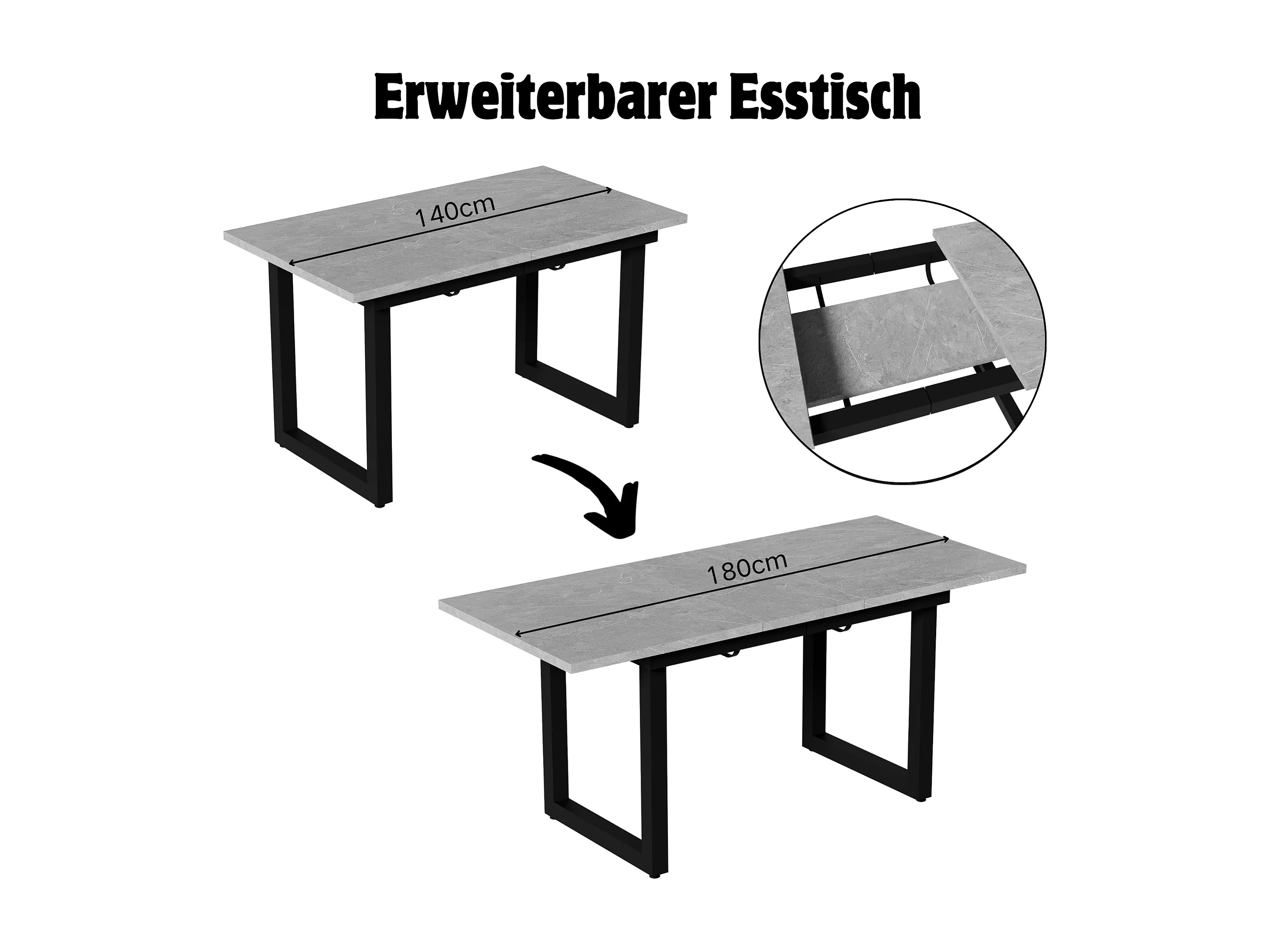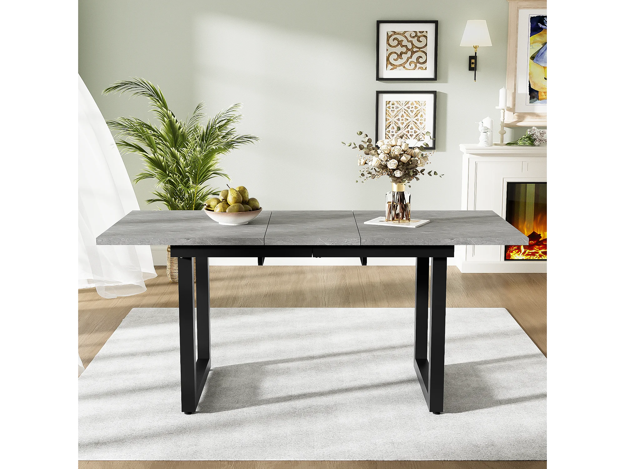 Table à manger extensible multifonctionnelle en acier - style industriel - Gris