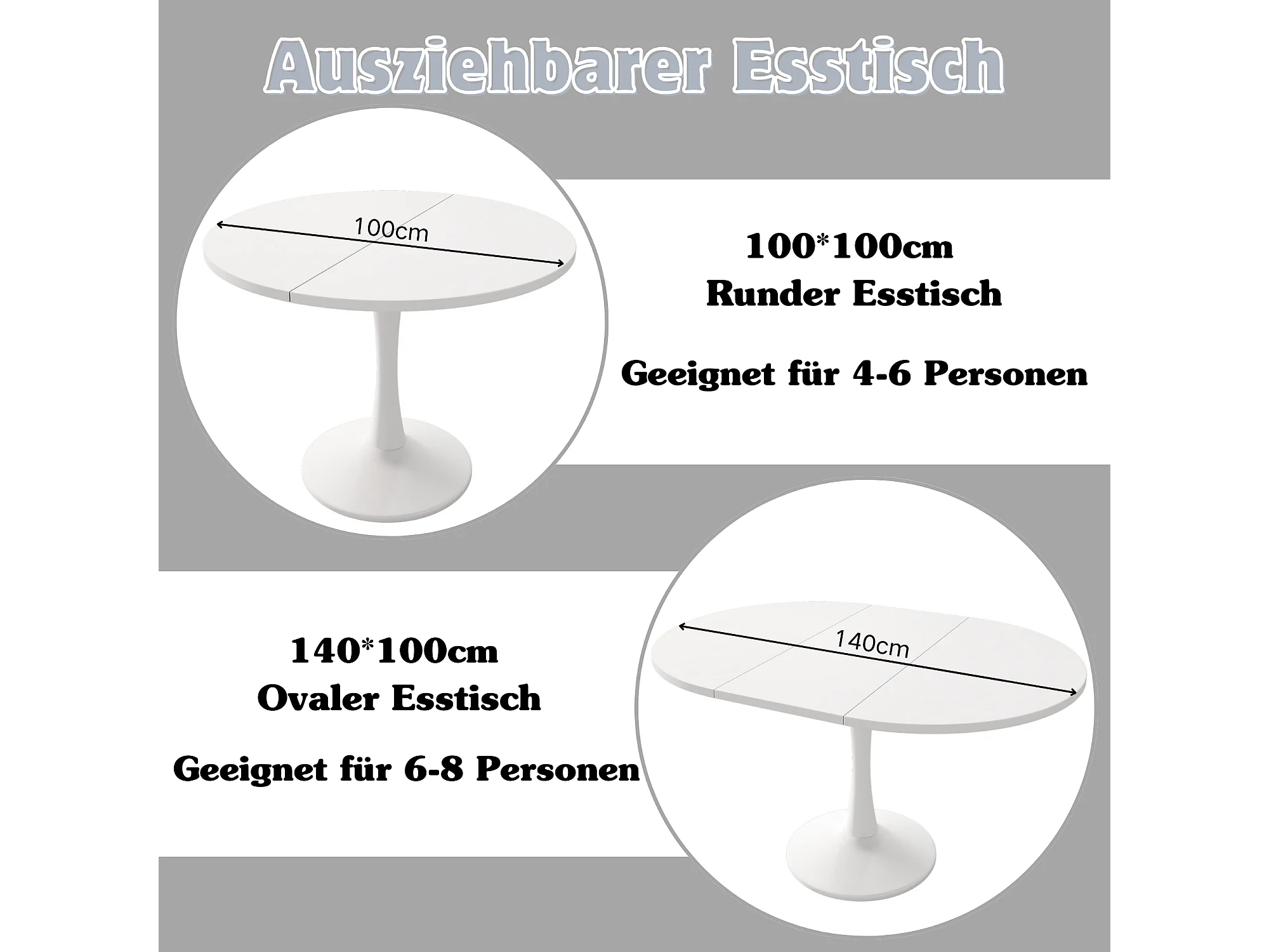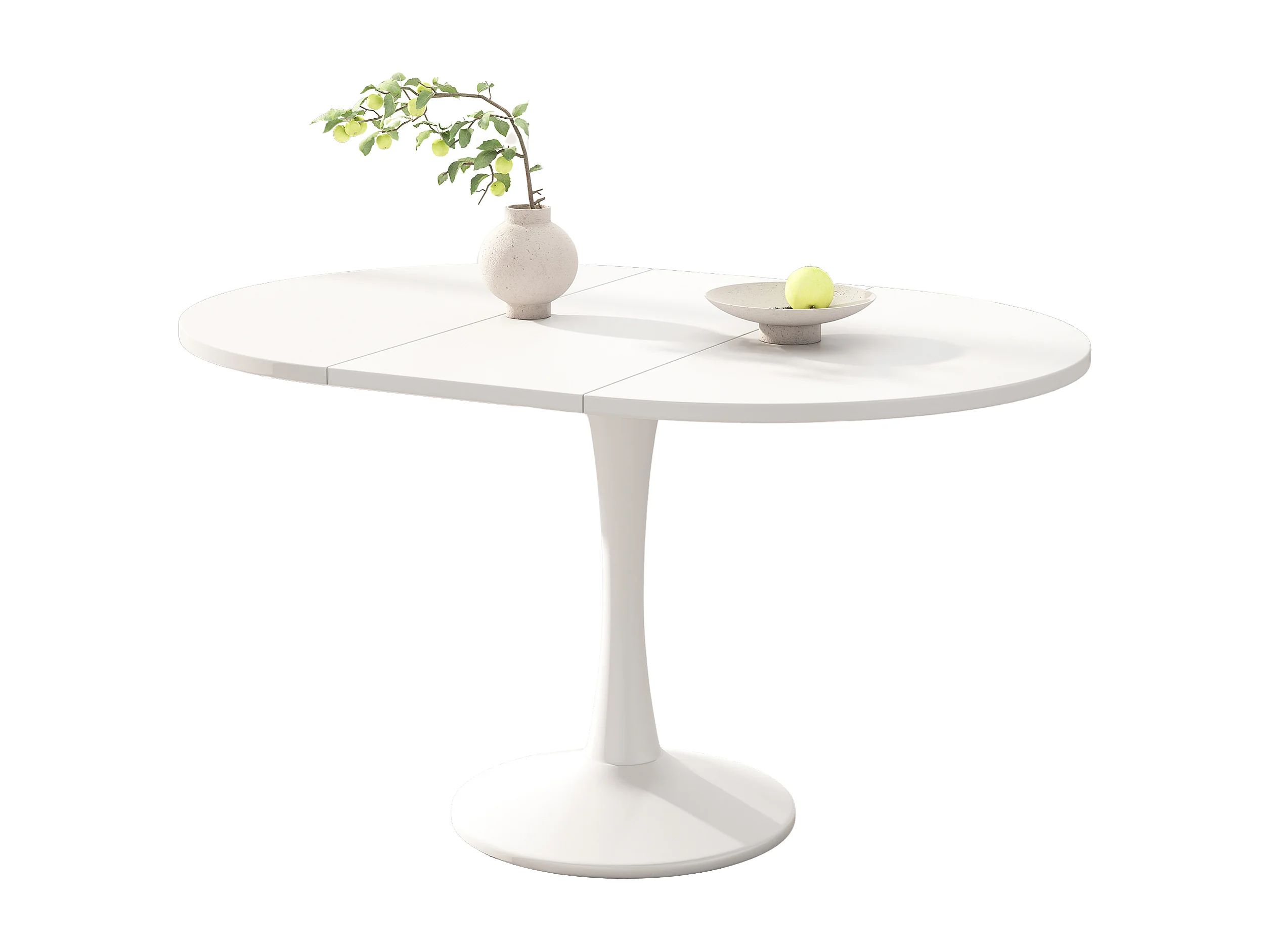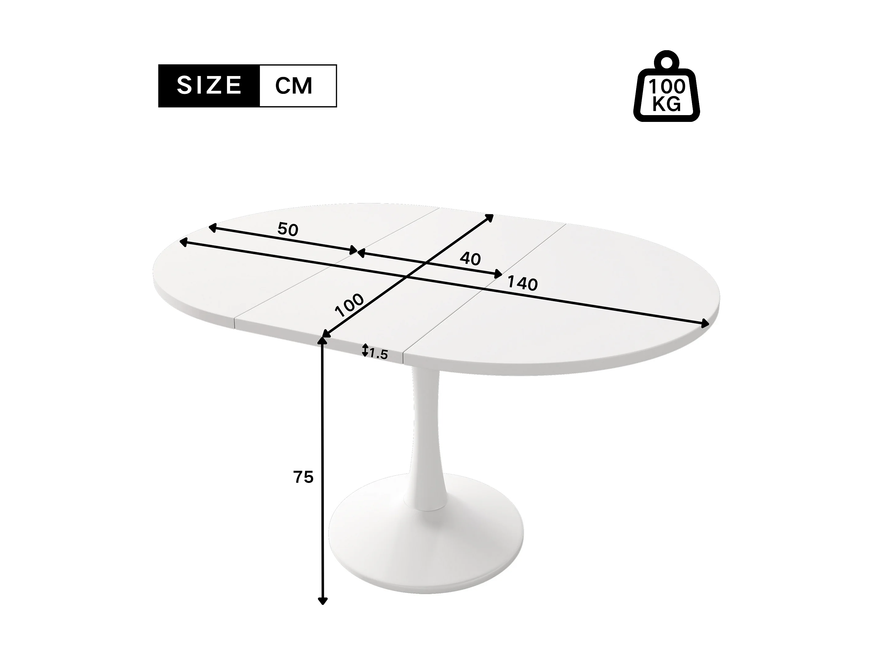 Table à manger extensible ovale 4 à 6 couverts - 100/140 x 100 x 75 cm - Bois MDF - Blanc