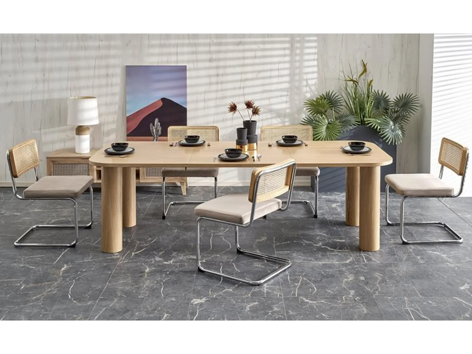 Table à manger extensible plaquée chêne 160-240cm Marthe