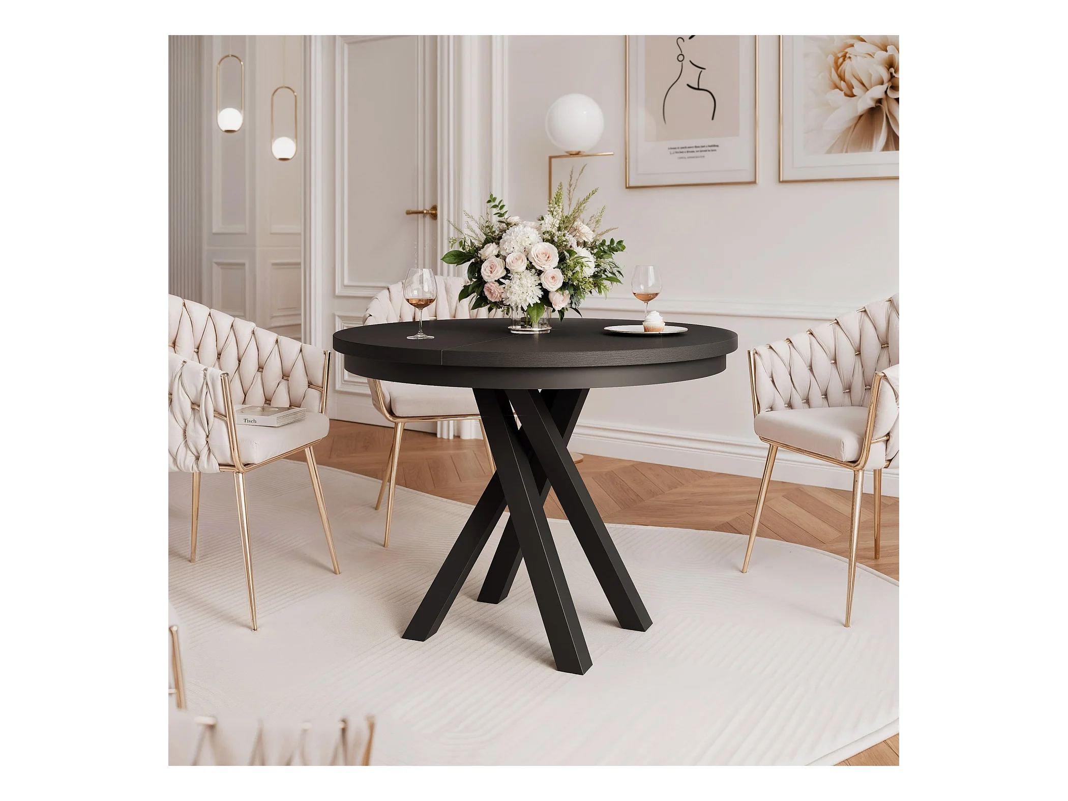Table à manger extensible pour 4 personnes couleur noire avec pieds en métal - 100/140 cm - LORIEN