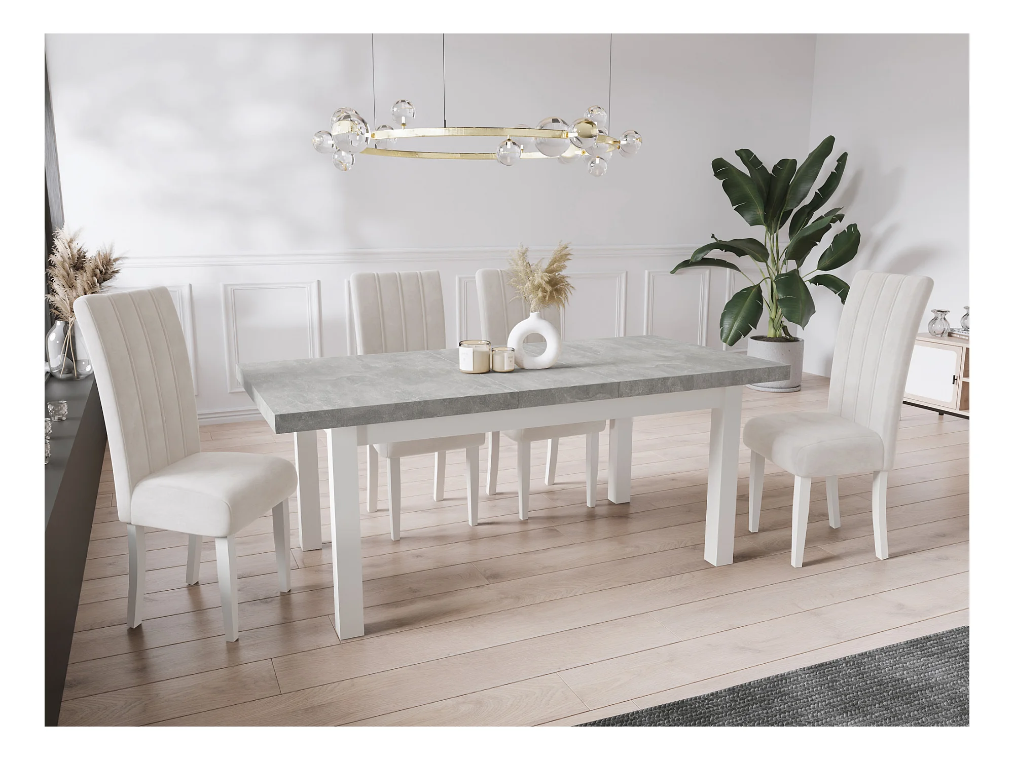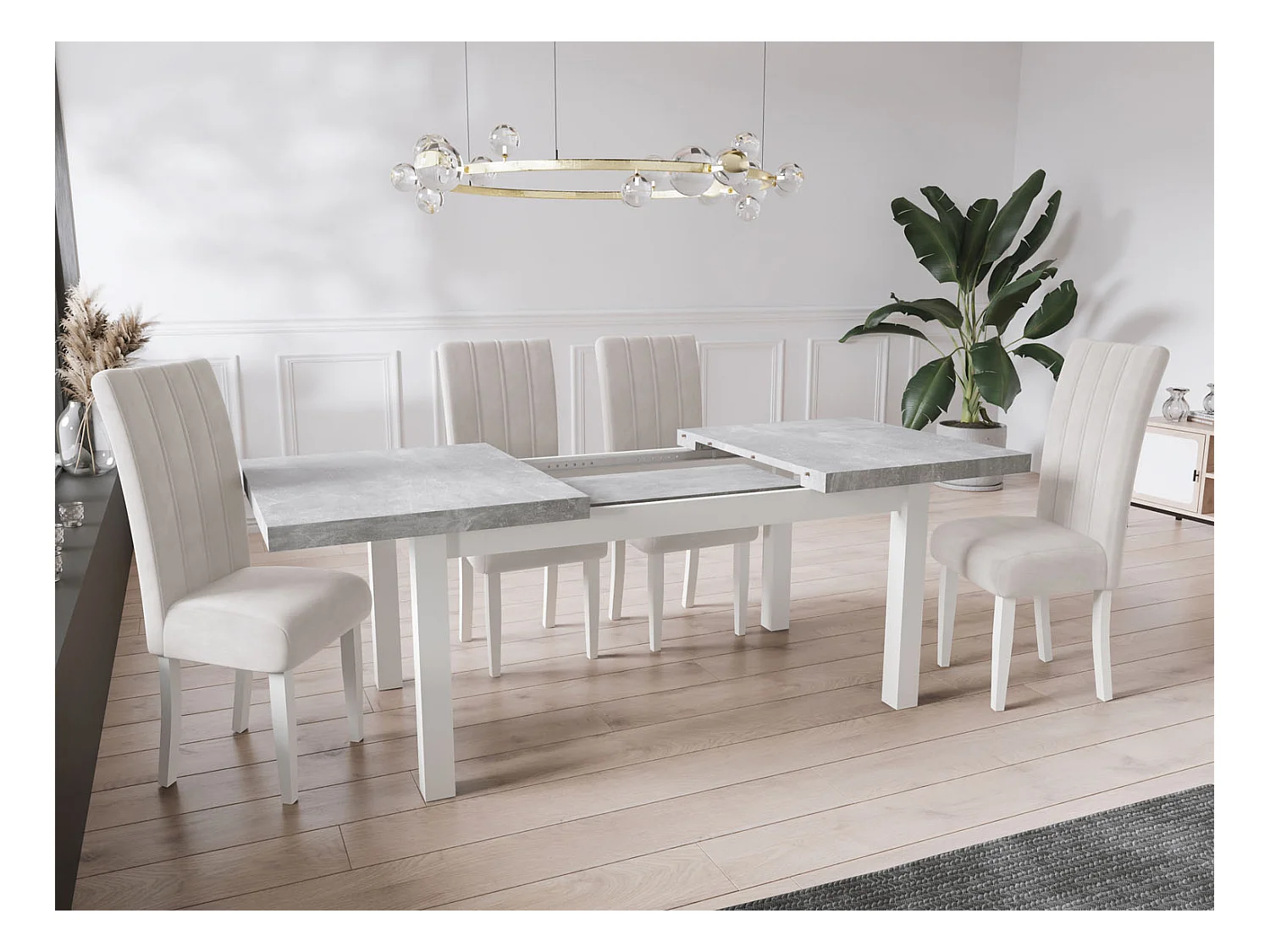 Table à Manger Extensible Rectangulaire Moderne - Gain de Place - Pieds en Bois Blanc - Fabriqué en UE - 120 x 80 cm - Béton Gris