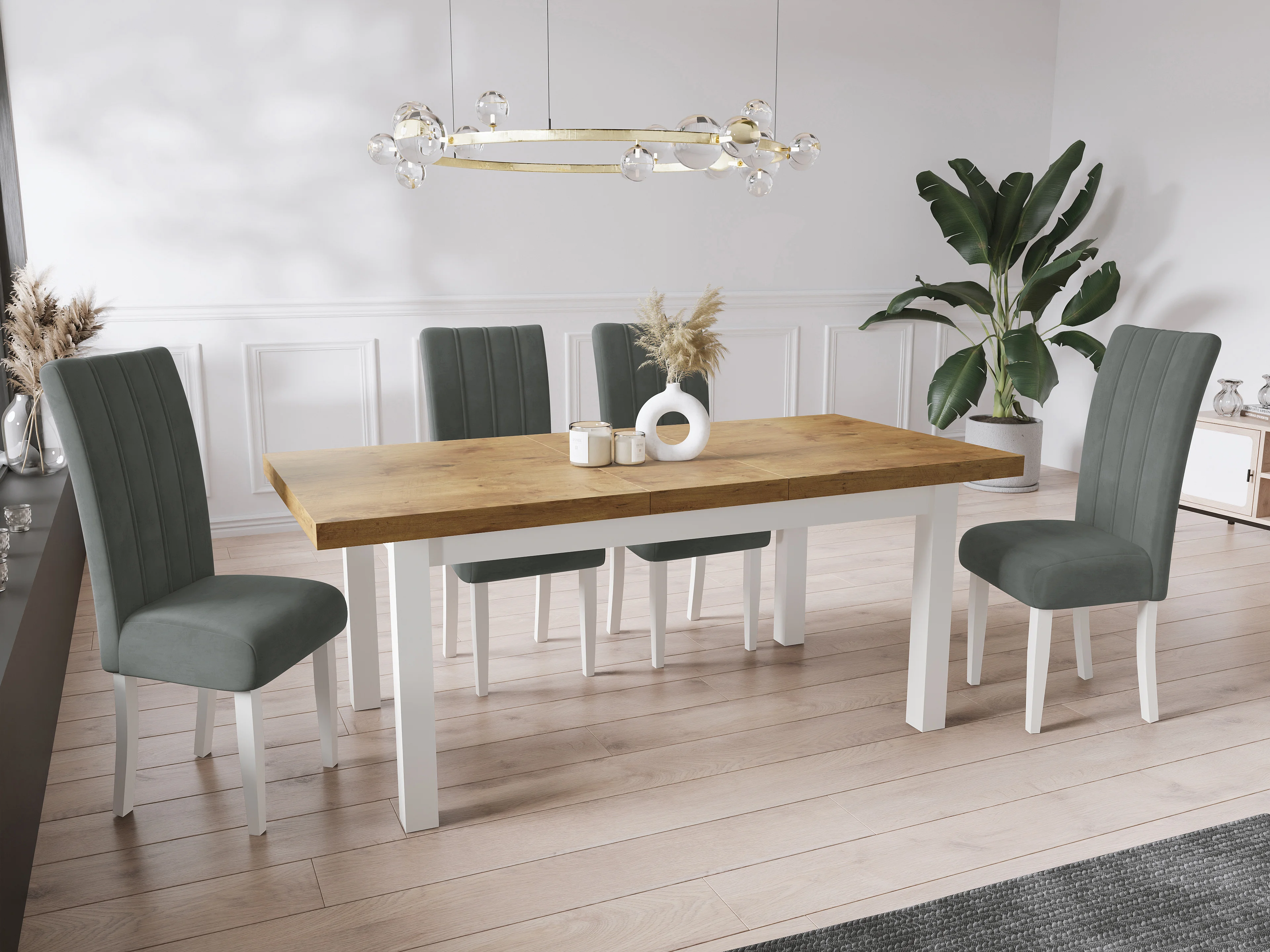 Table à Manger Extensible Rectangulaire Moderne - Gain de Place - Pieds en Bois Blanc - Fabriqué en UE - 160 x 90 cm - Chêne Lancelot