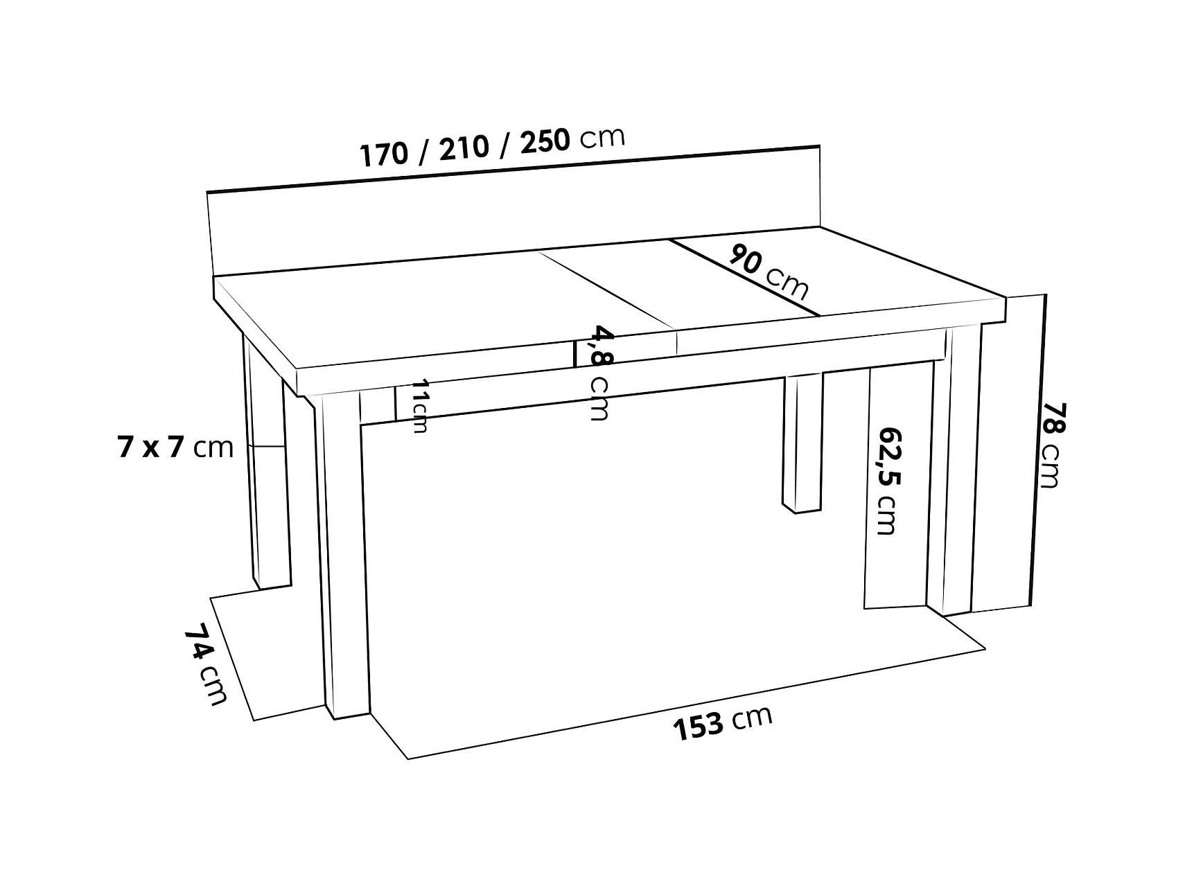 Table à Manger Extensible Rectangulaire Moderne - Gain de Place - Pieds en Bois Blanc - Fabriqué en UE - 170 x 90 cm - Béton Gris