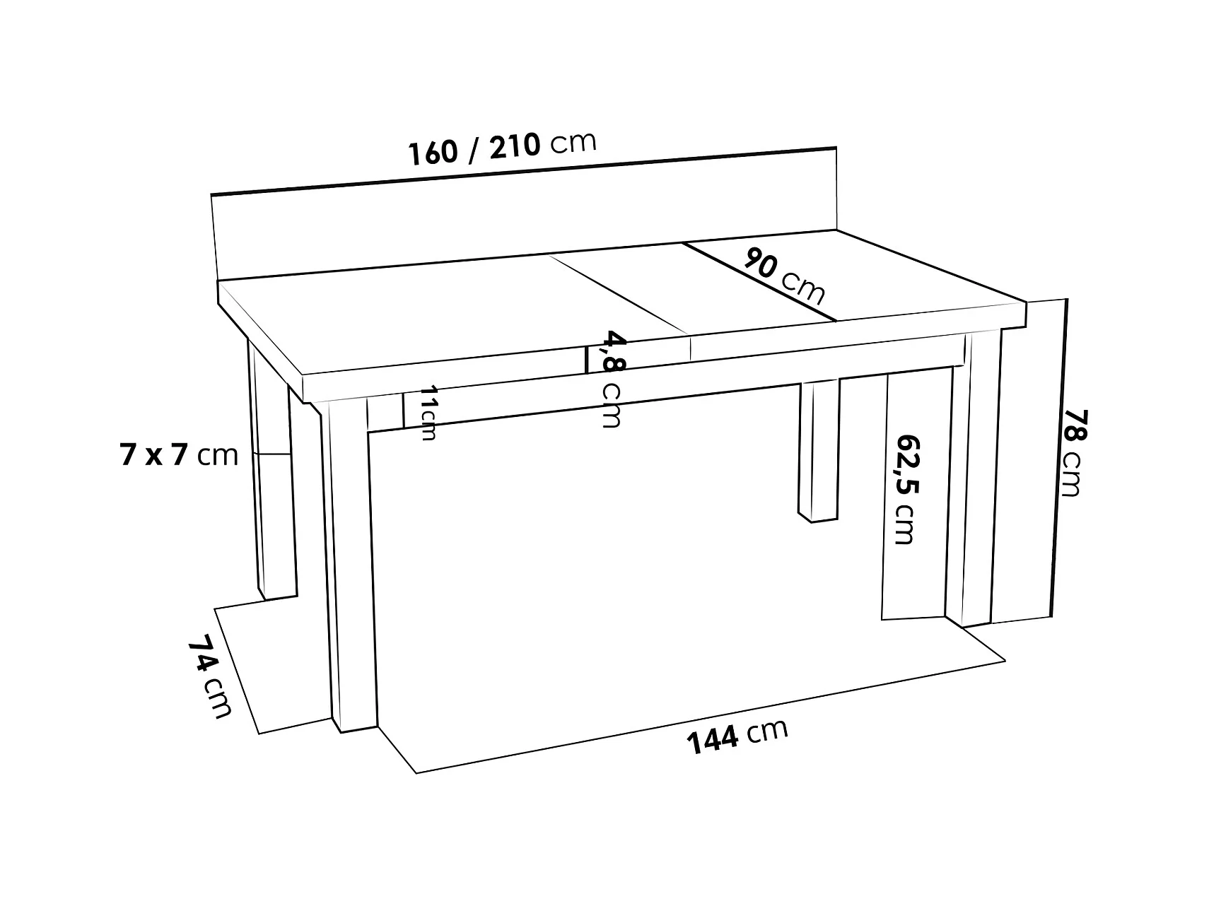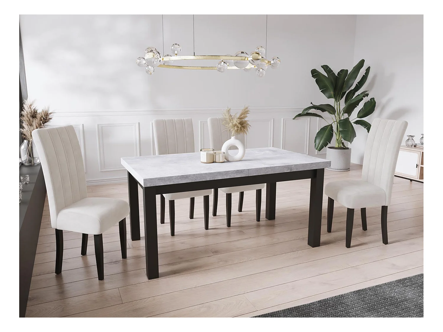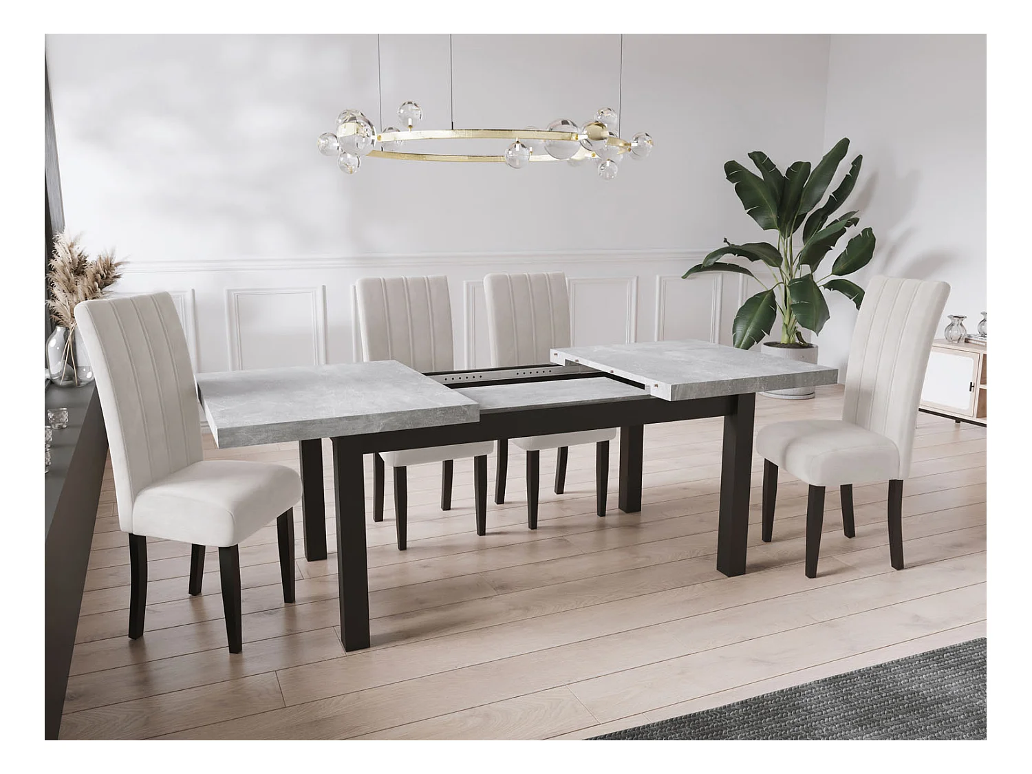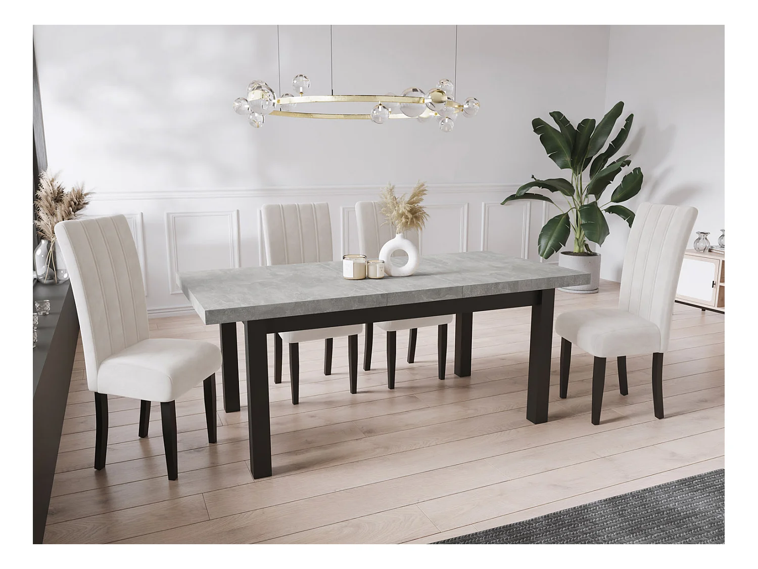 Table à Manger Extensible Rectangulaire Moderne - Gain de Place - Pieds en Bois Noir - Fabriqué en UE - 160 x 90 cm - Béton Gris