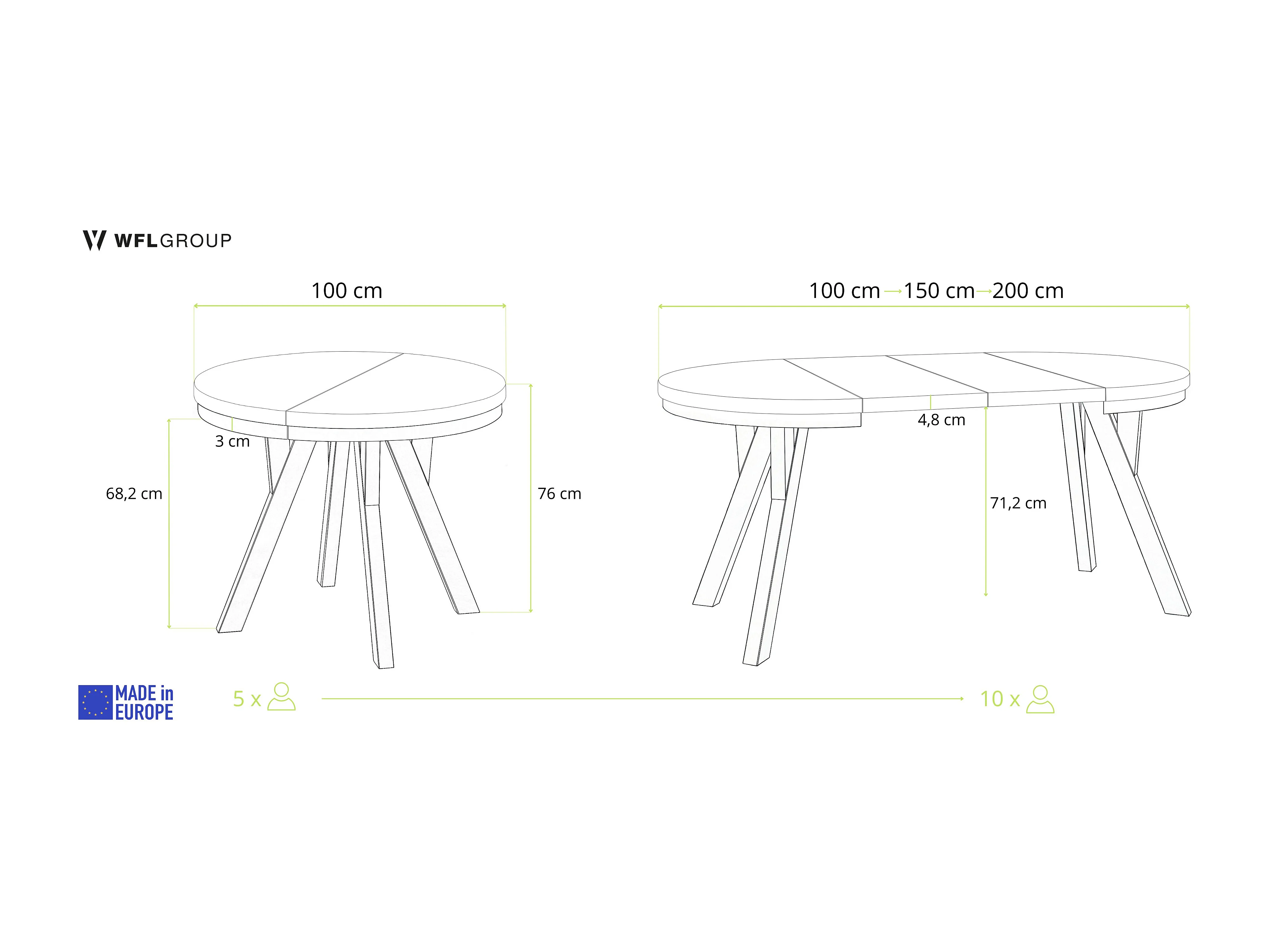 Table à Manger Extensible Ronde Designer - Style Loft, Peu Encombrant - Pieds Blanc - 100 à 200 cm - pour 5-10 personnes - Fabriqué en UE - Chêne Lancelot - 200 cm