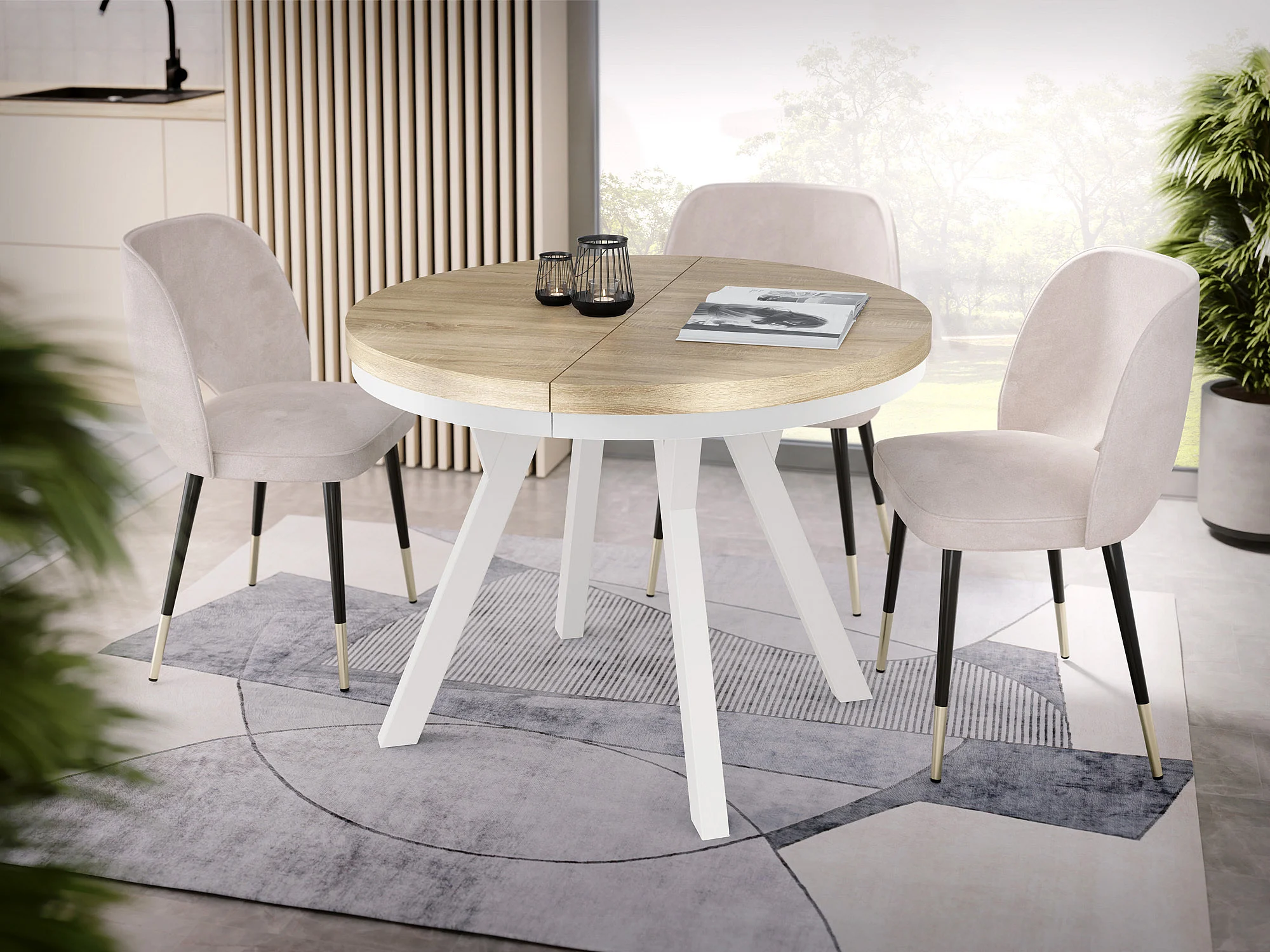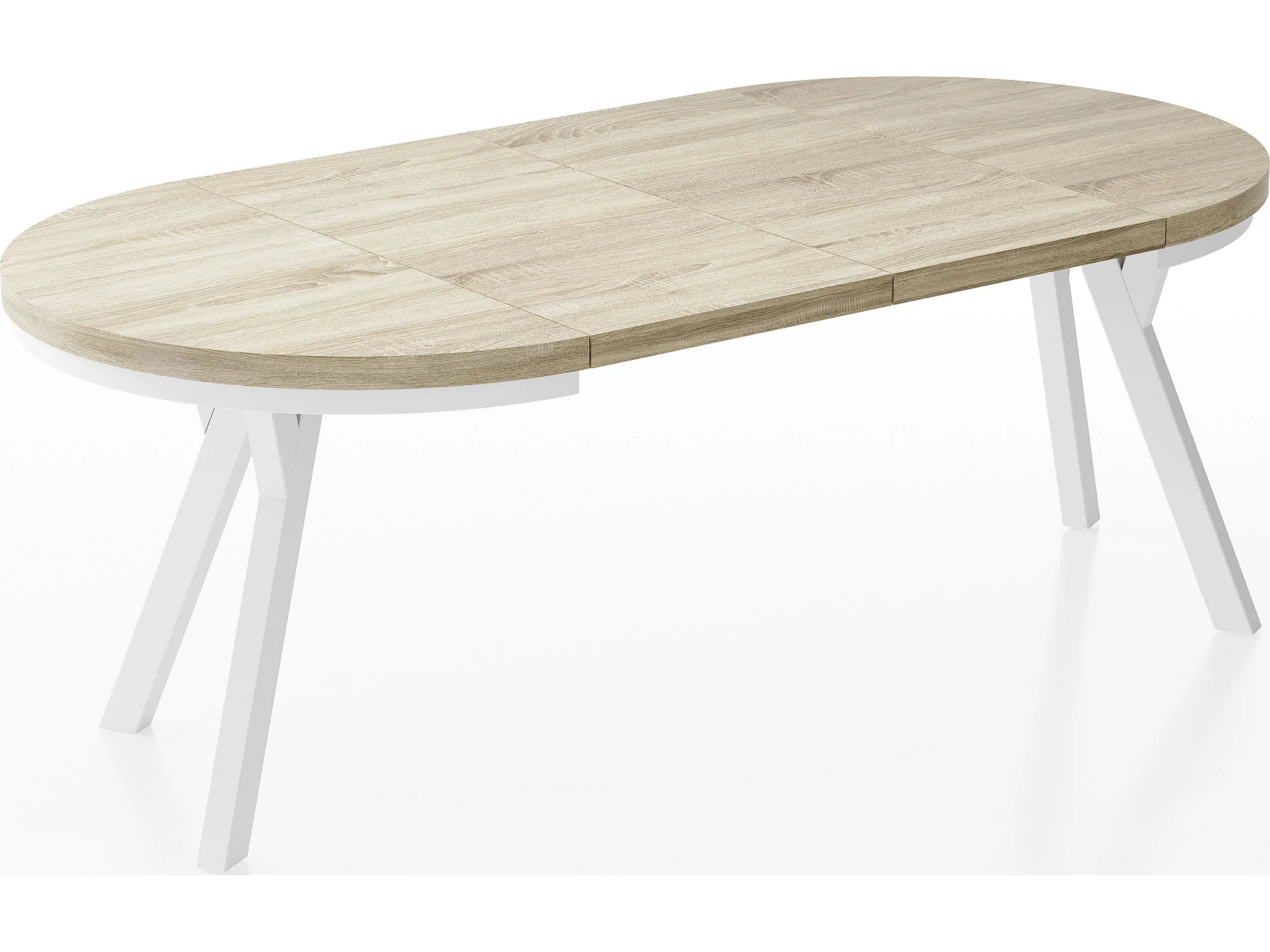 Table à Manger Extensible Ronde Designer - Style Loft, Peu Encombrant- Pieds Blanc - 100 à 200 cm - Pour 5-10 personnes - Fabriqué en UE - Chêne Sonoma - 200 cm