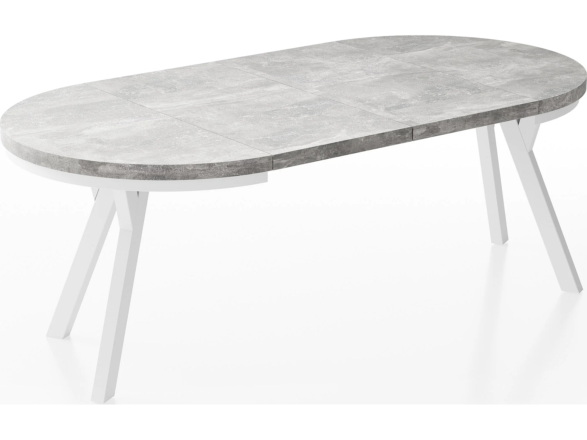 Table à Manger Extensible Ronde Designer - Style Loft, Peu Encombrant - Pieds Blanc - 100 à 200 cm - pour 5-10 personnes - Fabriqué en UE - Gris Béton - 200 cm