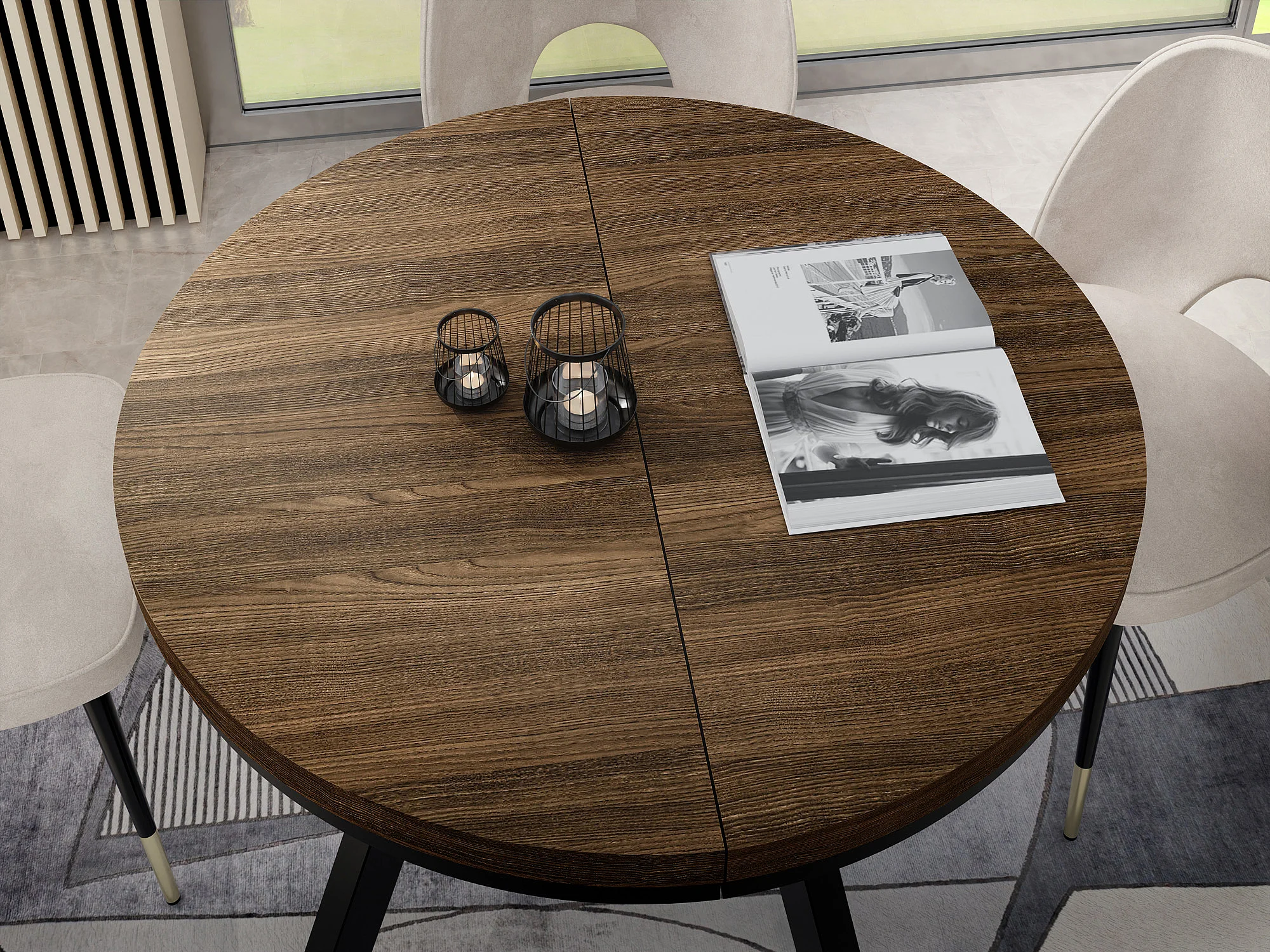 Table à Manger Extensible Ronde Designer - Style Loft, Peu Encombrant - Pieds Noirs - 100 à 200 cm - Pour 5-10 personnes - Fabriqué en UE - Arvadonna - 200 cm