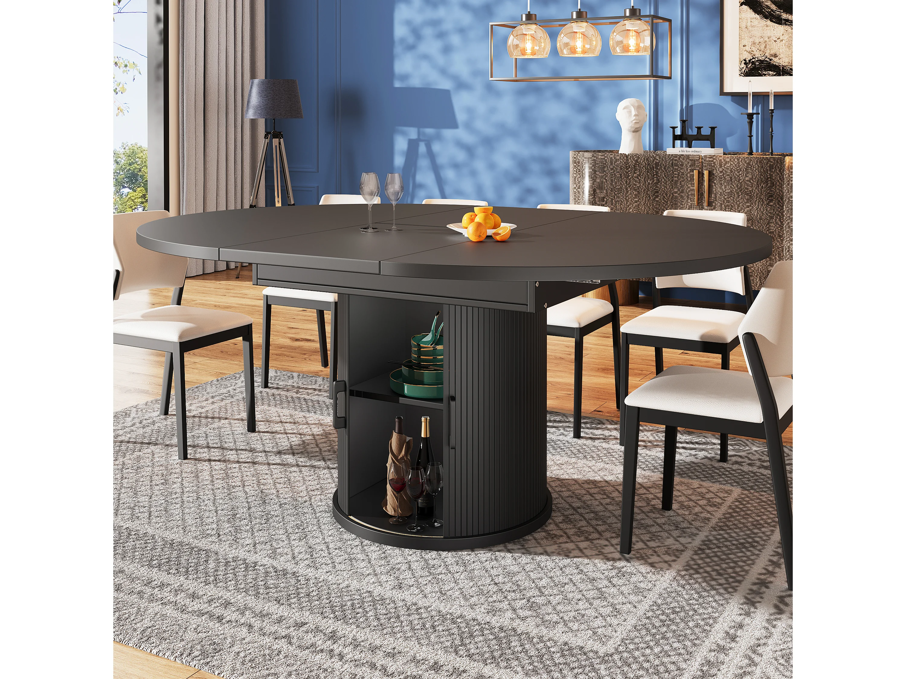 Table à manger extensible ronde/ovale, MDF, noyer/noir (118x118x76.8cm)