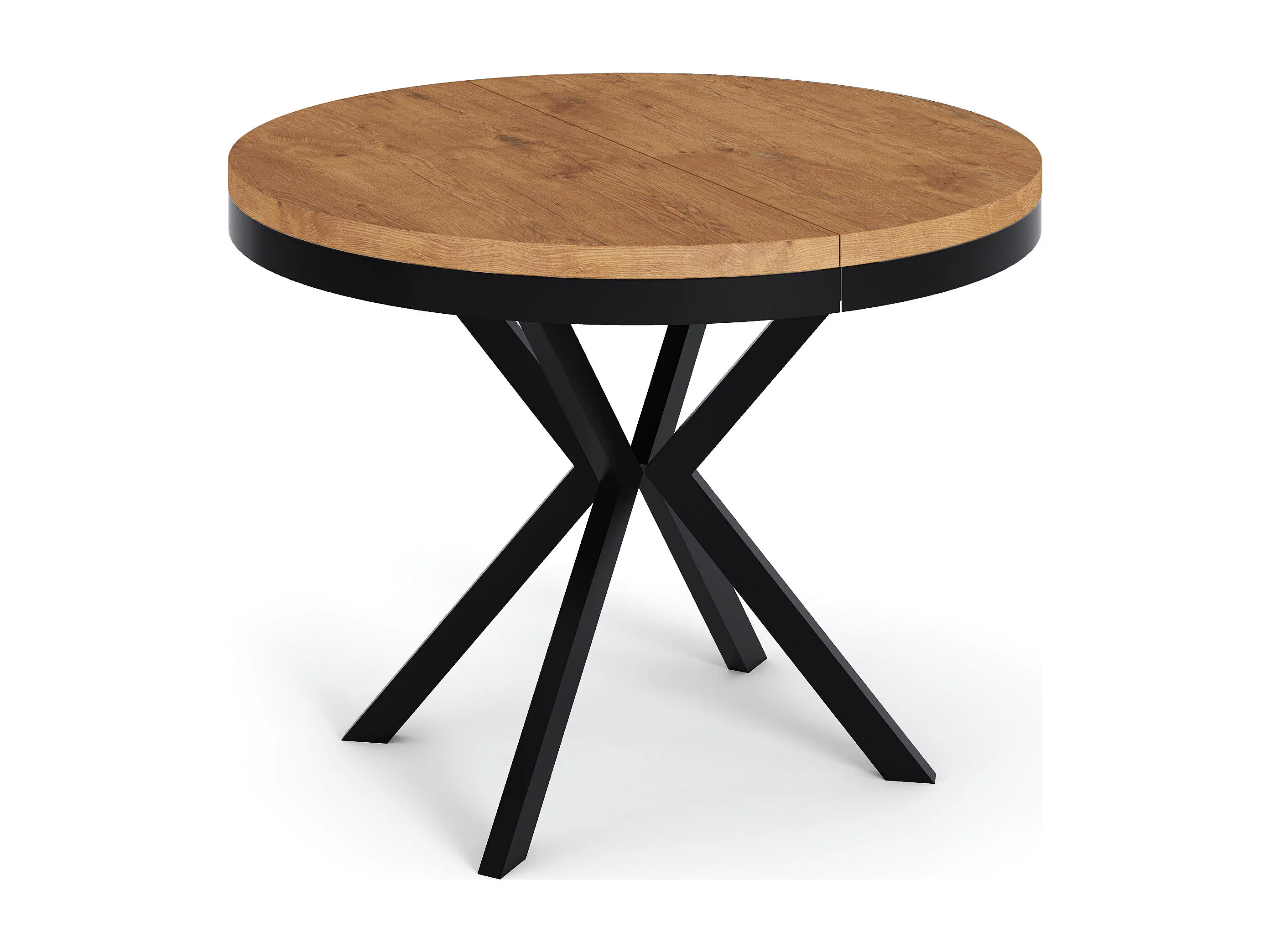 Table à Manger Extensible Ronde - Table Style Loft Avec Pieds en Métal - 100 à 180 cm - Table Ronde Style Industriel Pour le Salon - 100 cm - Chêne Lancelot
