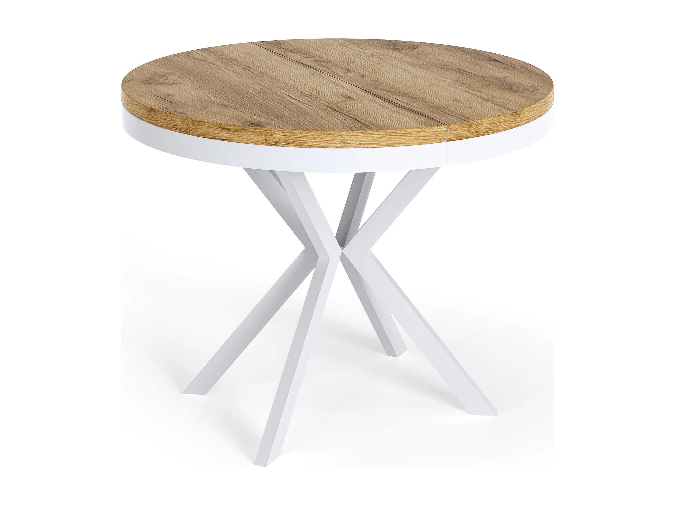 Table à Manger Extensible Ronde - Table Style Loft Avec Pieds en Métal Blancs - 90 à 170 cm - Table Ronde Style Industriel Pour le Salon - 90 cm - Chêne Craft