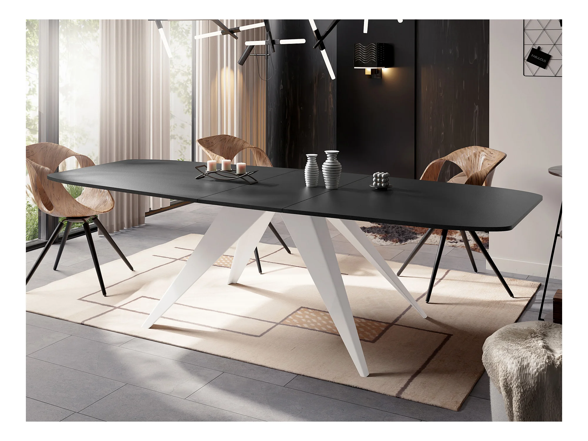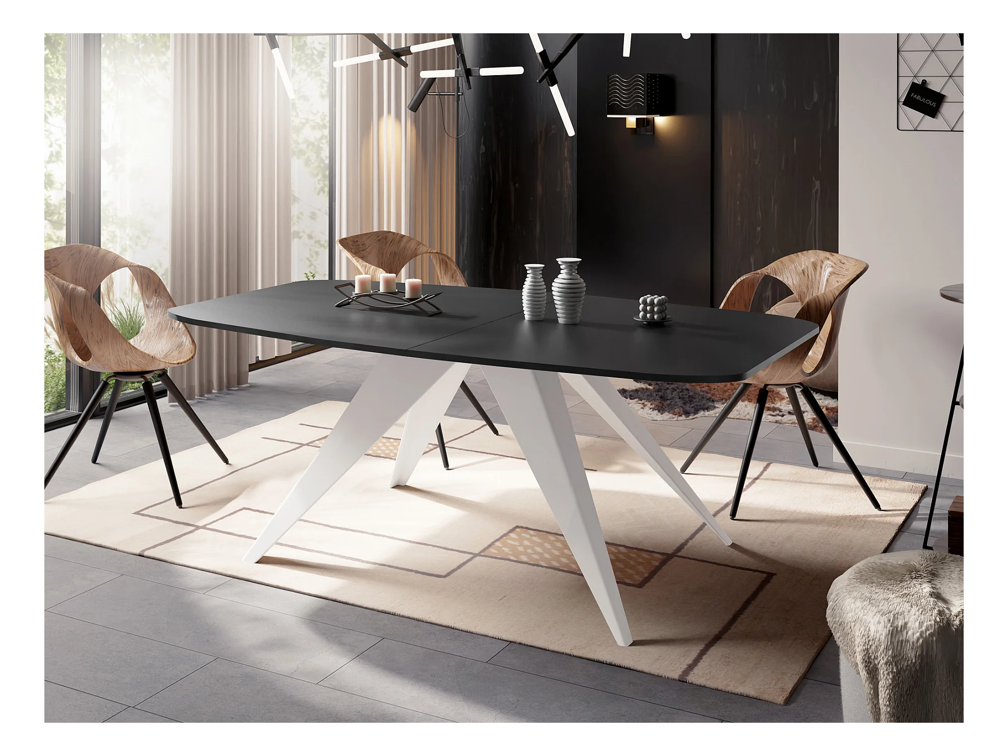 Table à Manger Extensible Style Loft - Table Industrielle avec Pieds Métalliques Blancs - Design Moderne pour Salon - 160 cm extensible à 200 cm - Noir