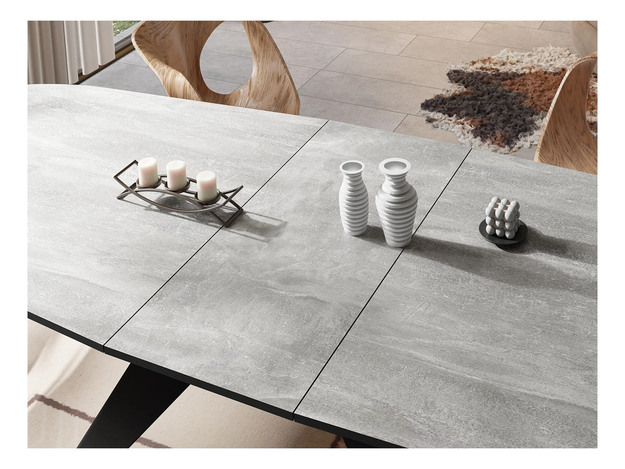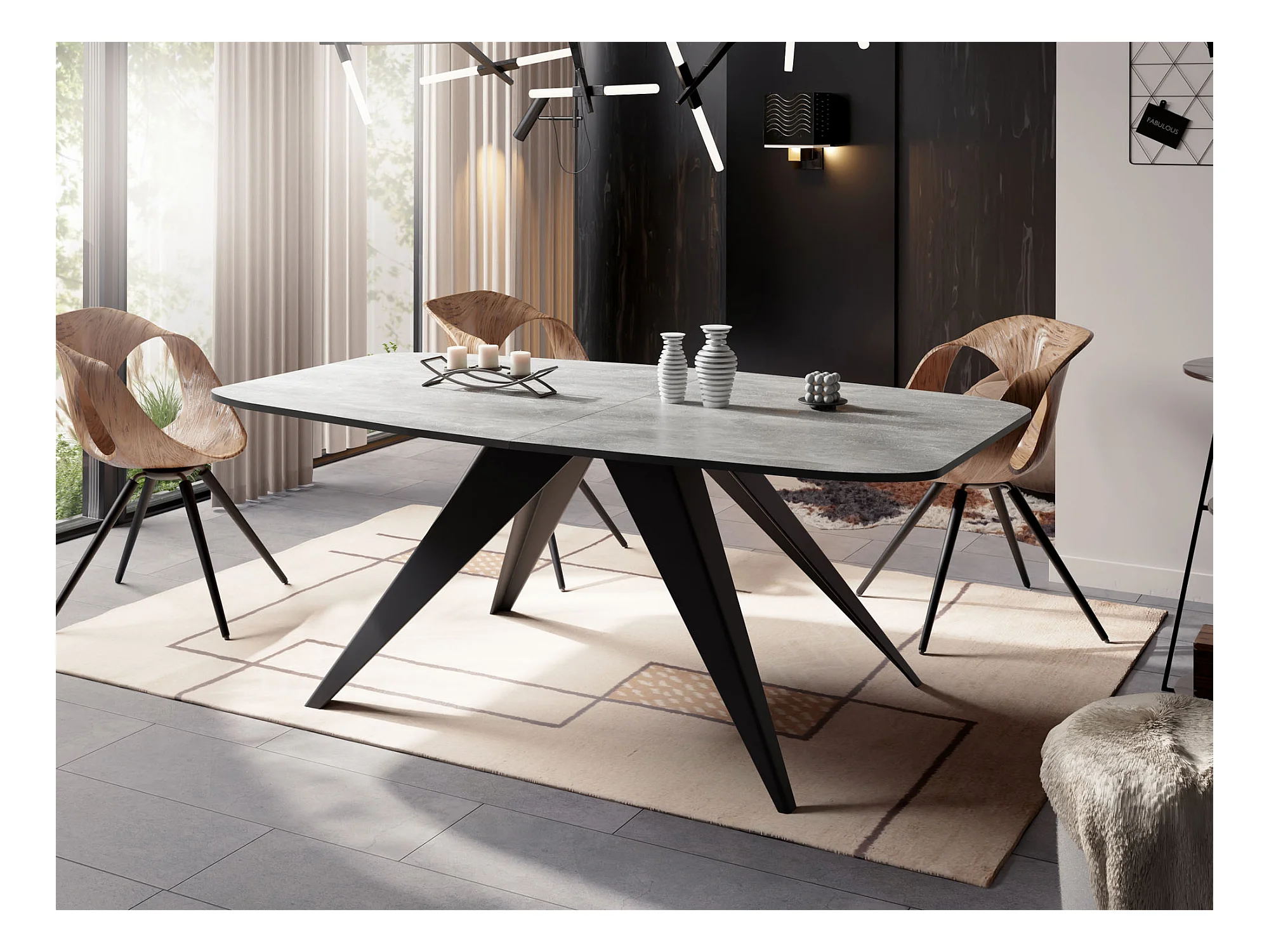 Table à Manger Extensible Style Loft - Table Industrielle avec Pieds Métalliques Noirs - Design Moderne pour Salon - 160 cm extensible à 200 cm - Béton Gris
