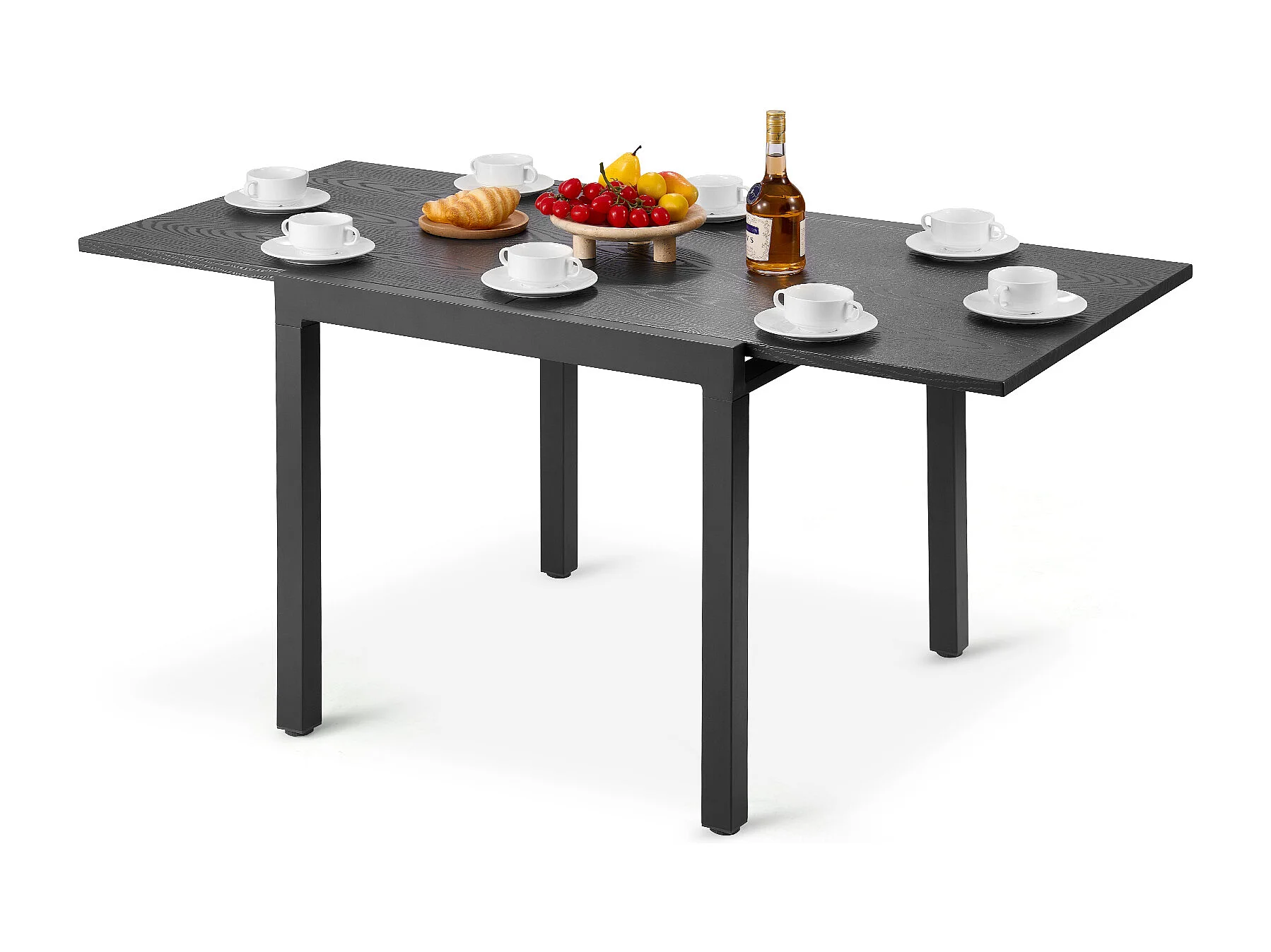 Table à Manger Extensible SucceBuy pour Patio Extérieur, Table de Bistro Rectangulaire 80-160 cm pour 4-6 Personnes, Cadre en Aluminium Et Lattes en Acier