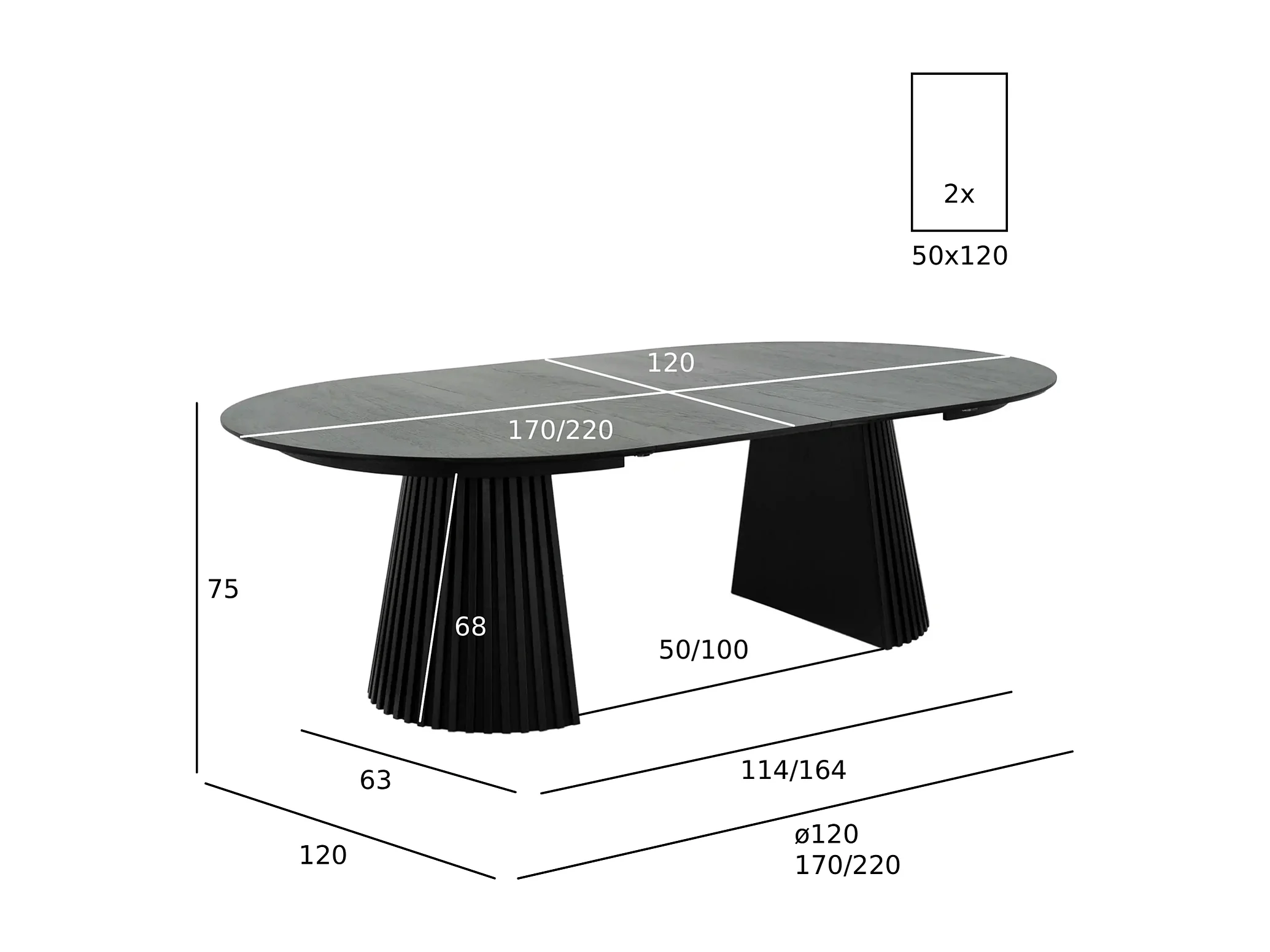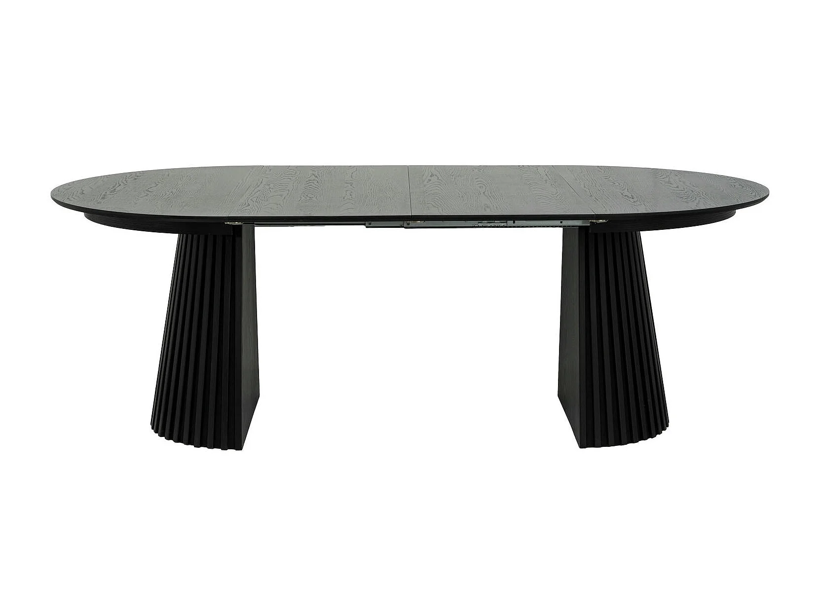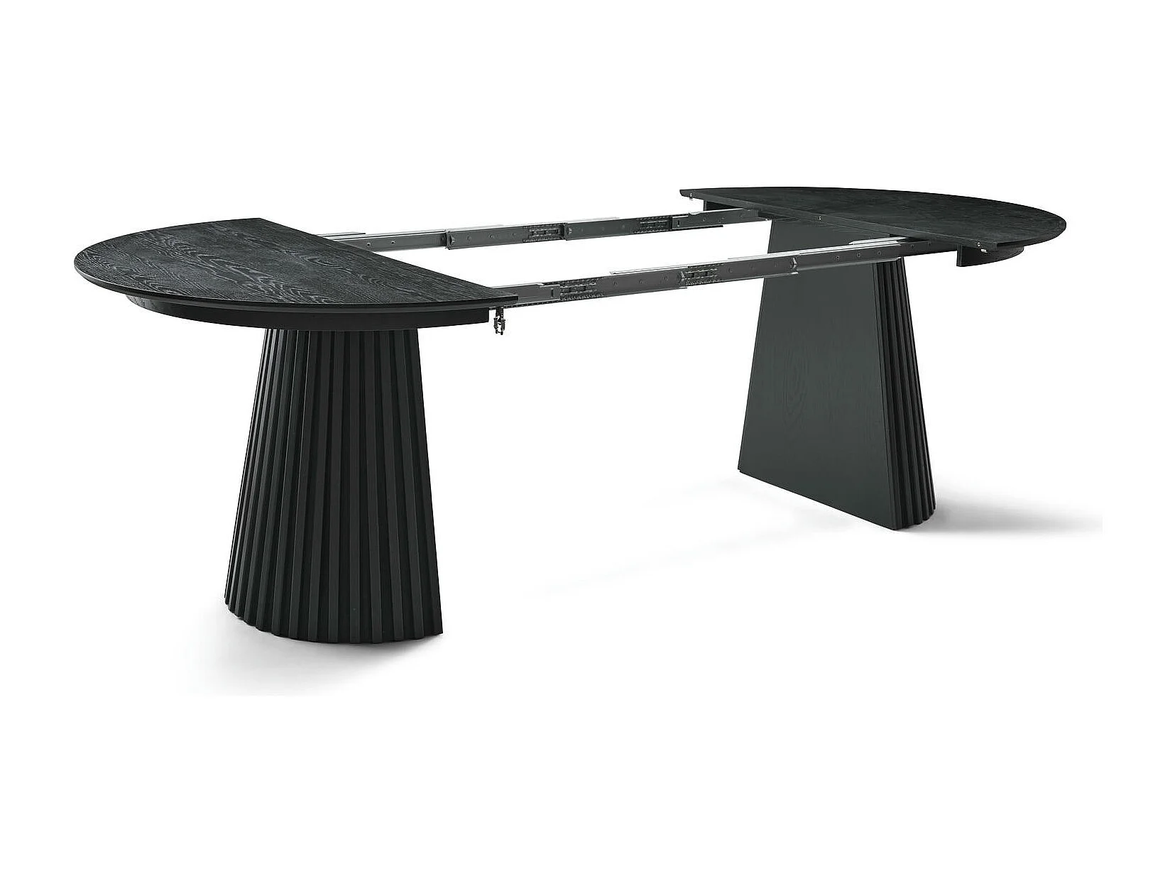 Table à manger extensible Svendborg - Ronde - MDF et placage de chêne - Noir
